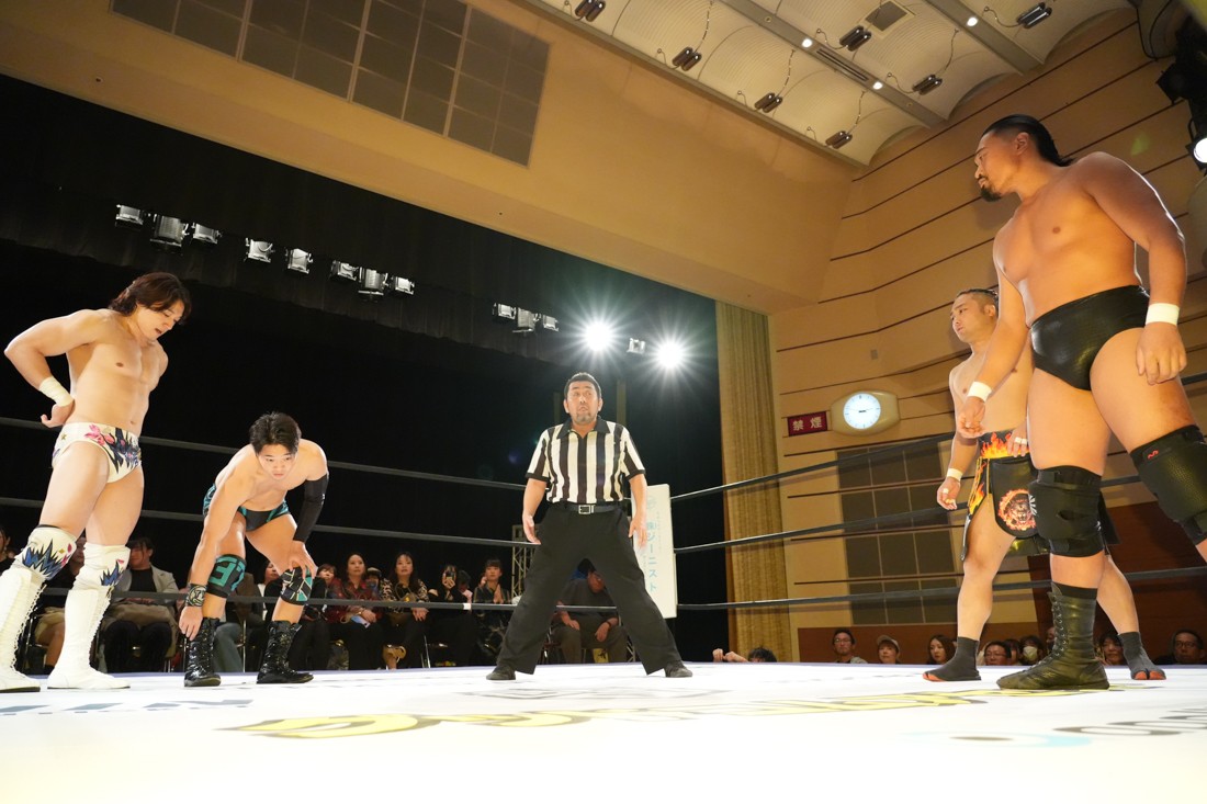 メインイベントでは前日の大阪大会でSCHADENFREUDE Internationalのクリス・ブルックス&正田壮史に勝利したThe37KAMIINAの上野勇希&To-yが、ハリマオの樋口和貞&石田有輝と対戦。