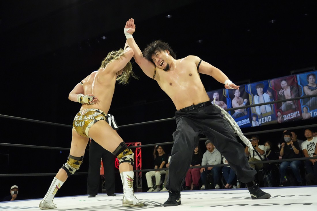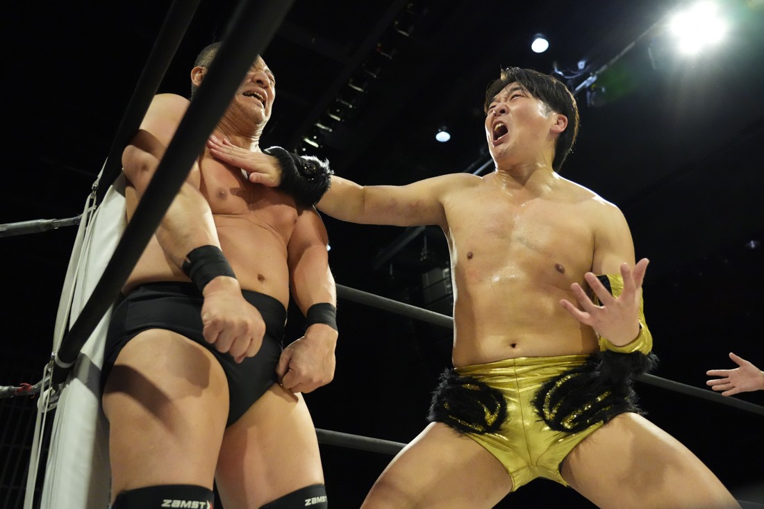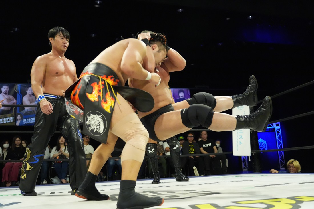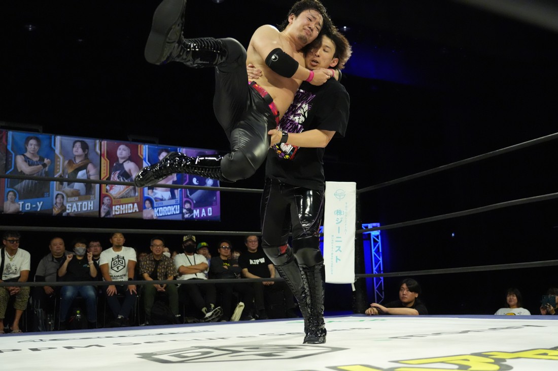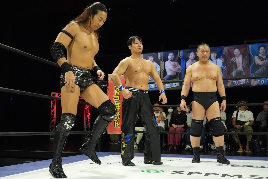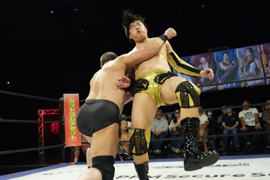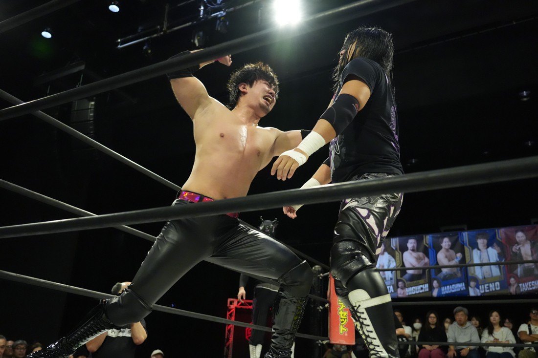 DGS世代にとってはTAKESHITAをはじめ、髙木、HARASHIMAとも対戦できる貴重な機会。とくにTo-yは11月30日後楽園ホール大会で髙木とEXTREME王座の防衛戦が決まってるため、激しくやり合う。TAKESHITAは石田を場外に連れ出し、床にDDTで叩き付けると、リングに戻る前にTo-yと大地を睨み付ける。