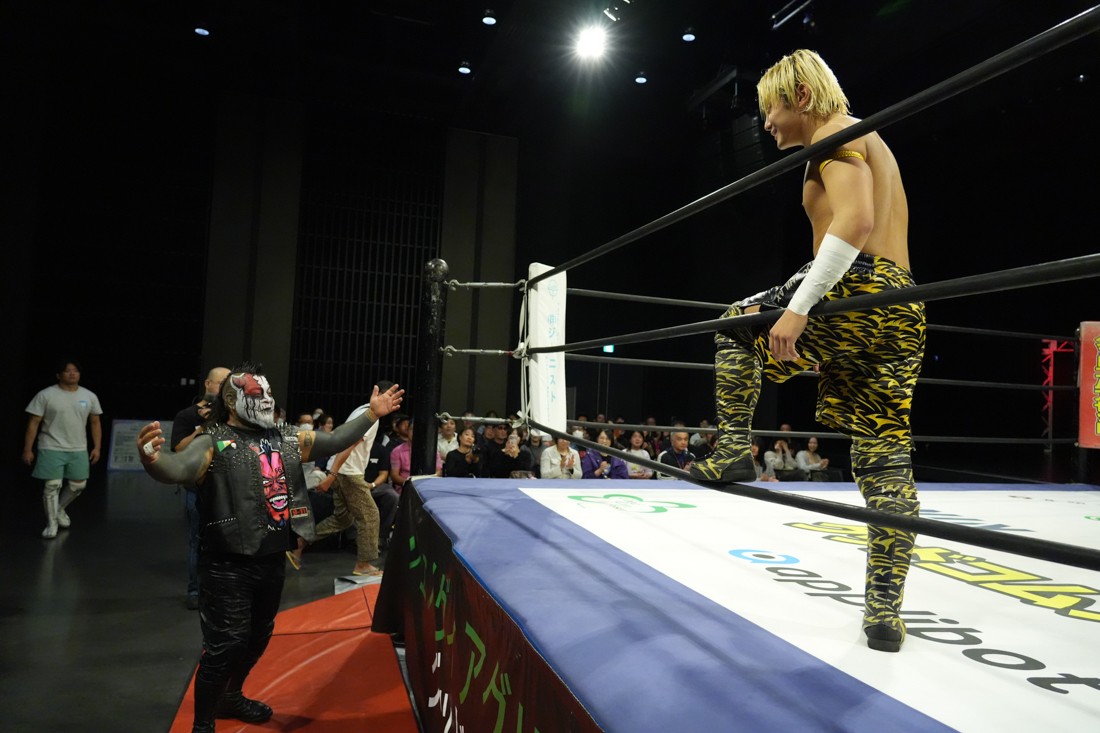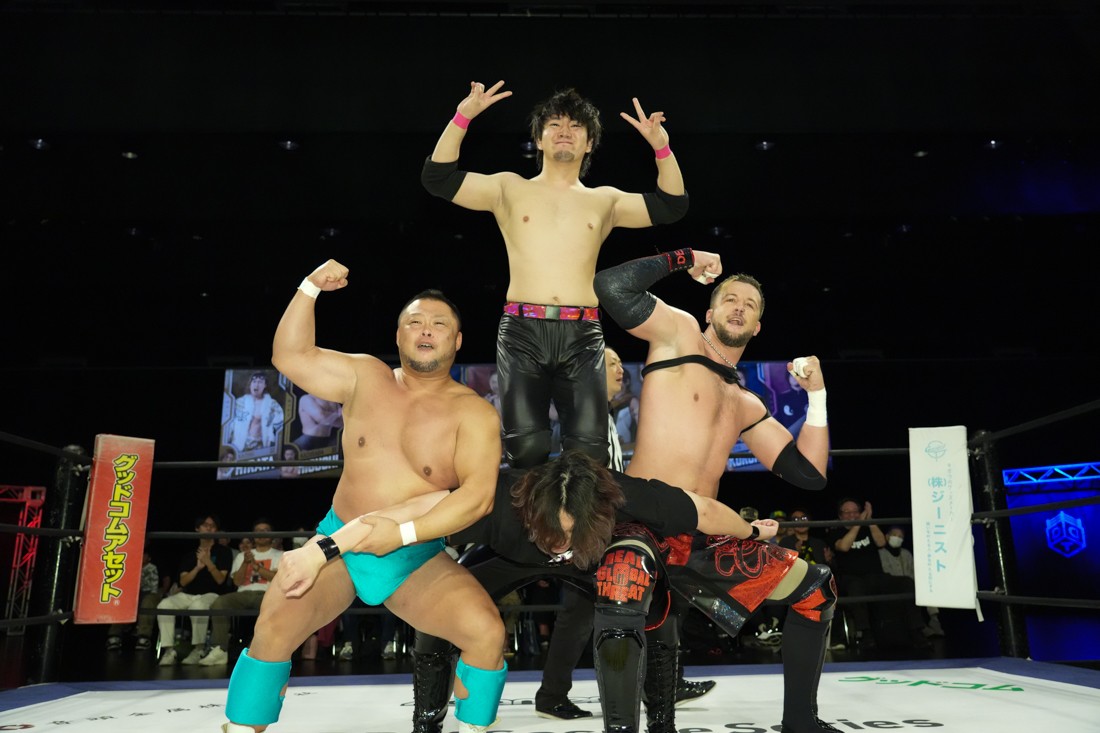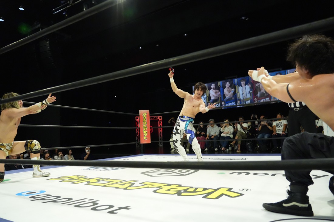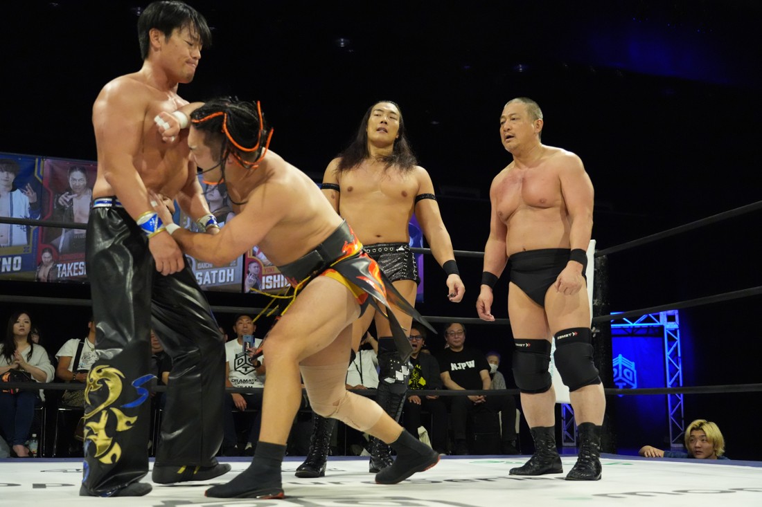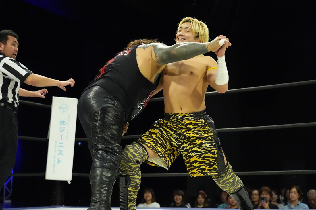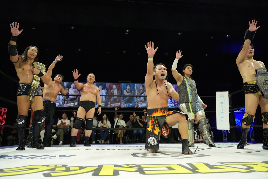 DGS世代にとってはTAKESHITAをはじめ、髙木、HARASHIMAとも対戦できる貴重な機会。とくにTo-yは11月30日後楽園ホール大会で髙木とEXTREME王座の防衛戦が決まってるため、激しくやり合う。TAKESHITAは石田を場外に連れ出し、床にDDTで叩き付けると、リングに戻る前にTo-yと大地を睨み付ける。