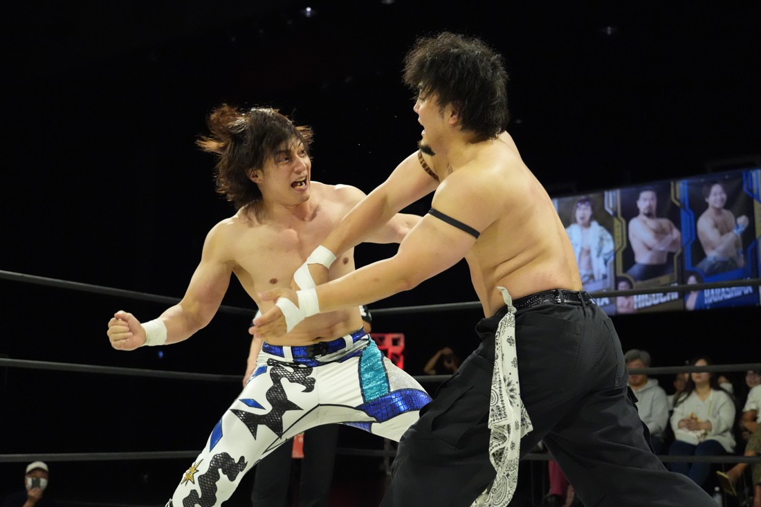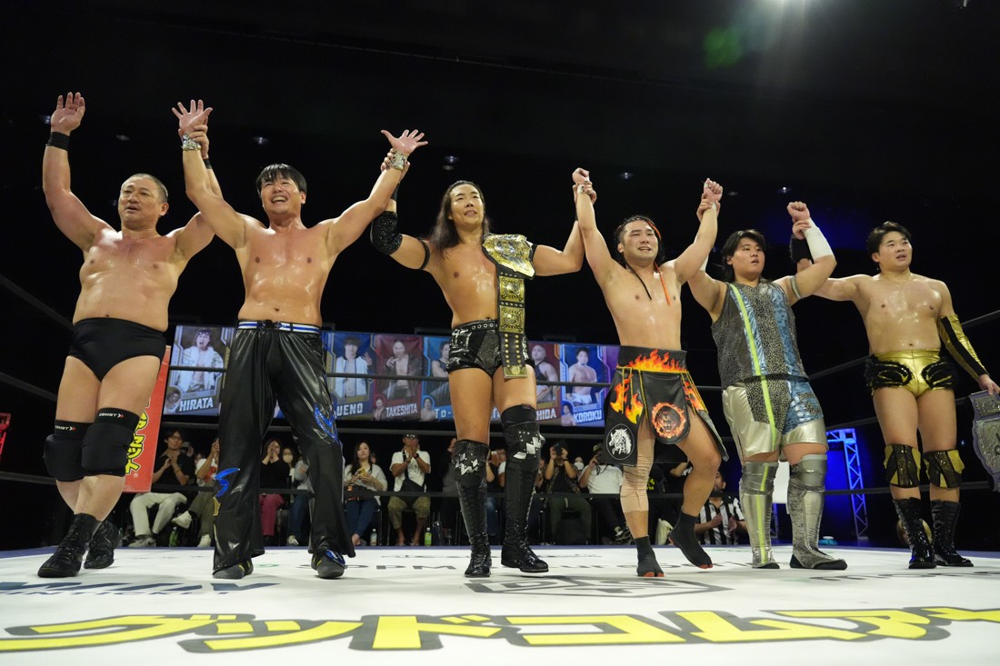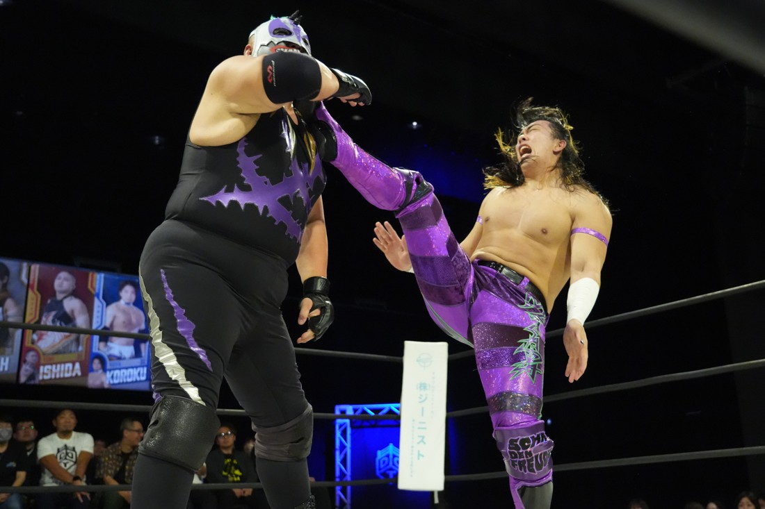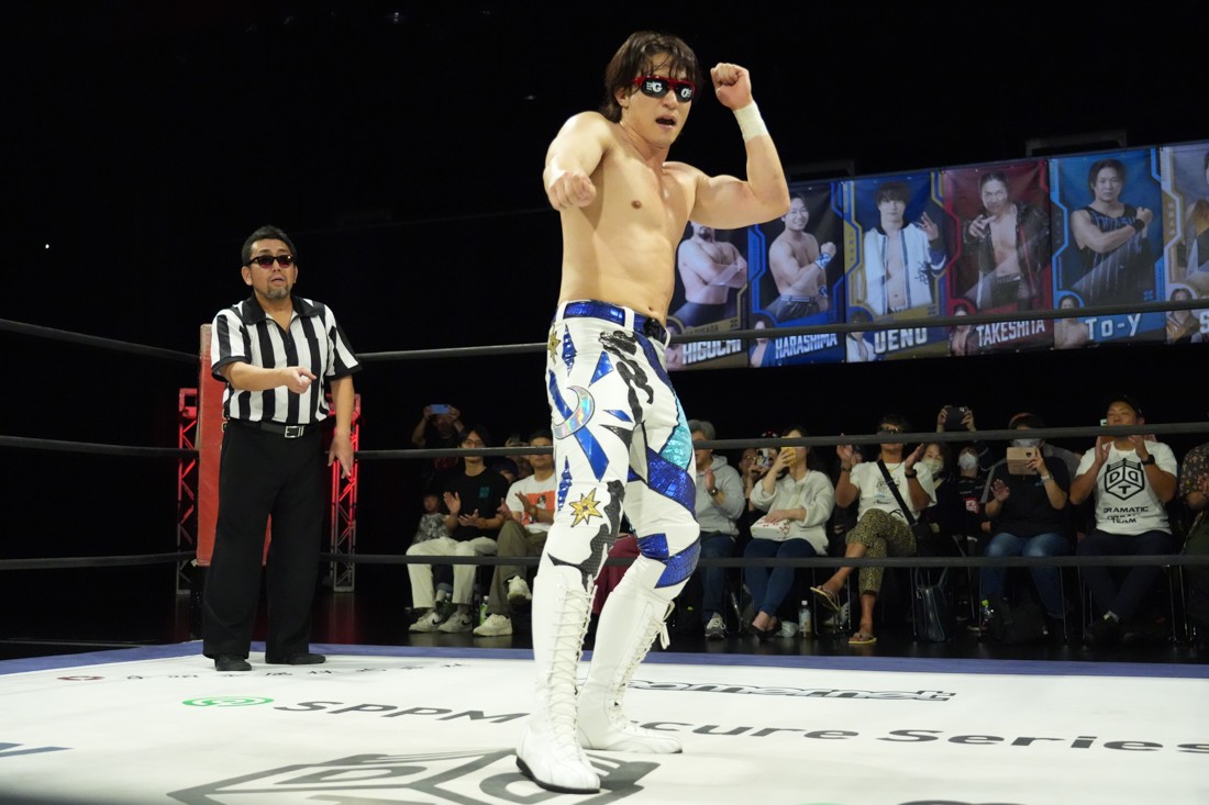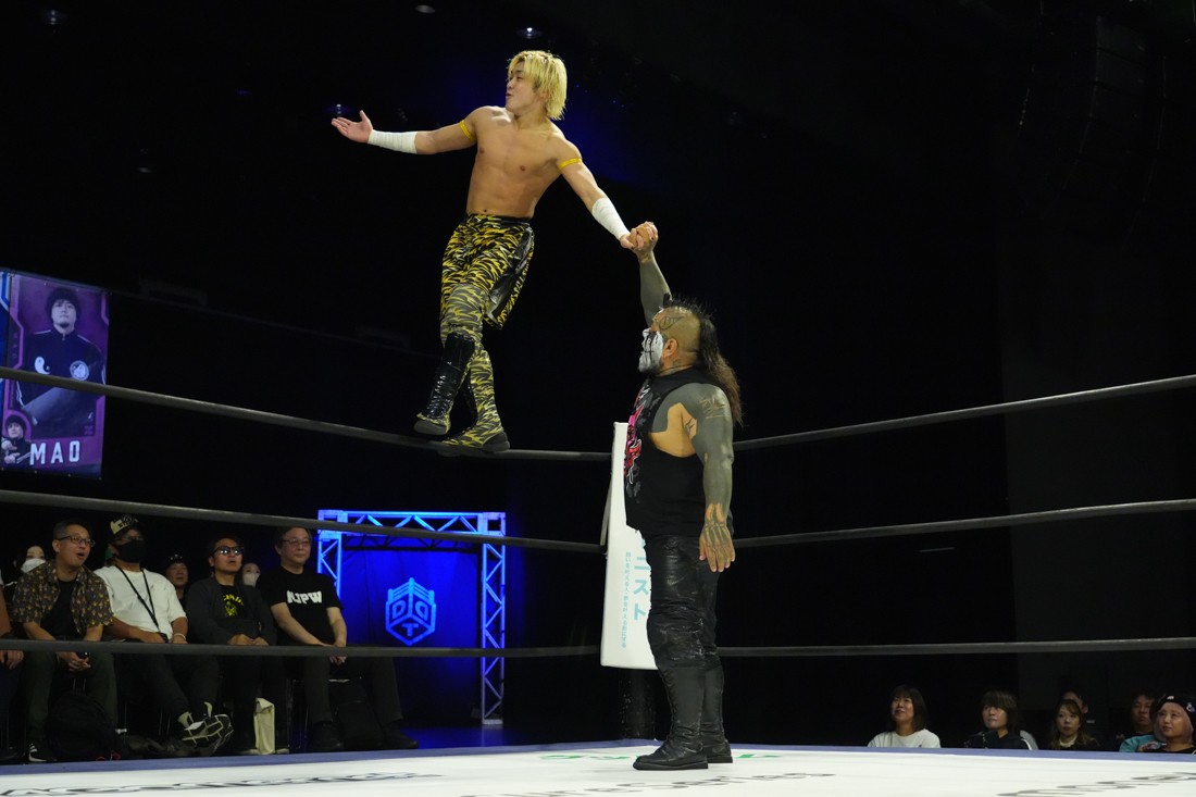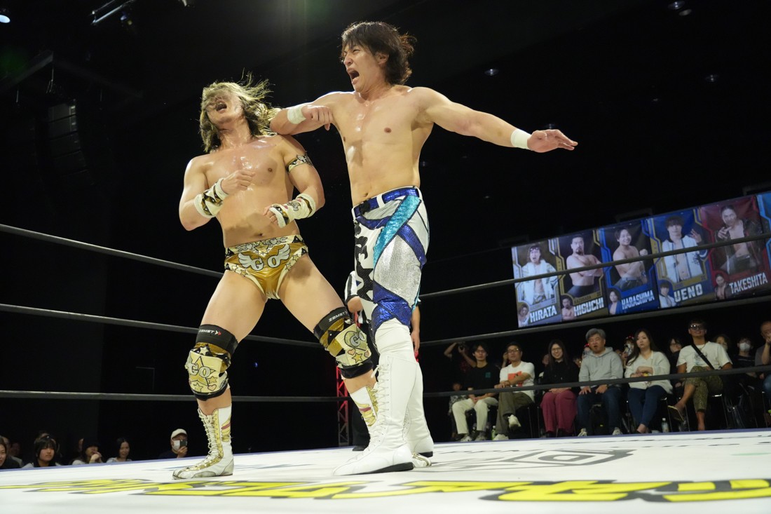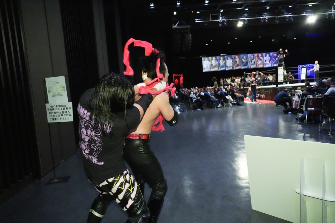 DGS世代にとってはTAKESHITAをはじめ、髙木、HARASHIMAとも対戦できる貴重な機会。とくにTo-yは11月30日後楽園ホール大会で髙木とEXTREME王座の防衛戦が決まってるため、激しくやり合う。TAKESHITAは石田を場外に連れ出し、床にDDTで叩き付けると、リングに戻る前にTo-yと大地を睨み付ける。