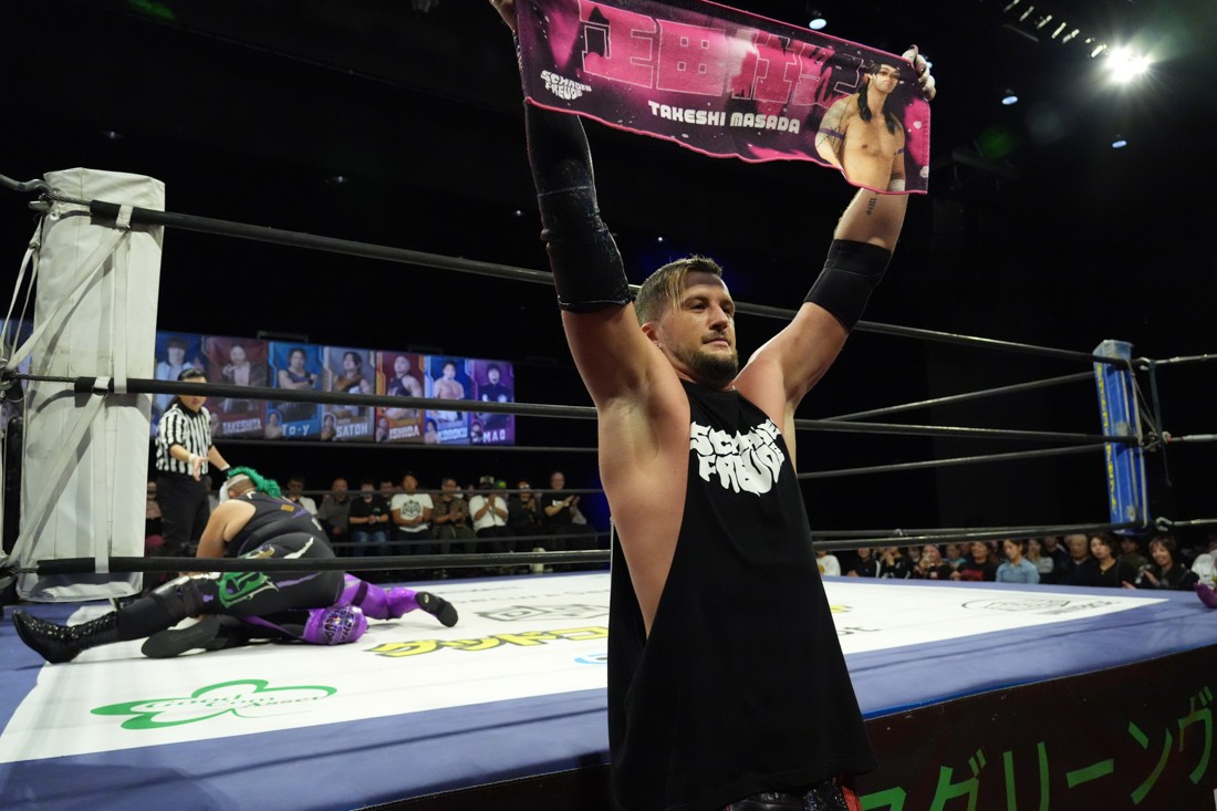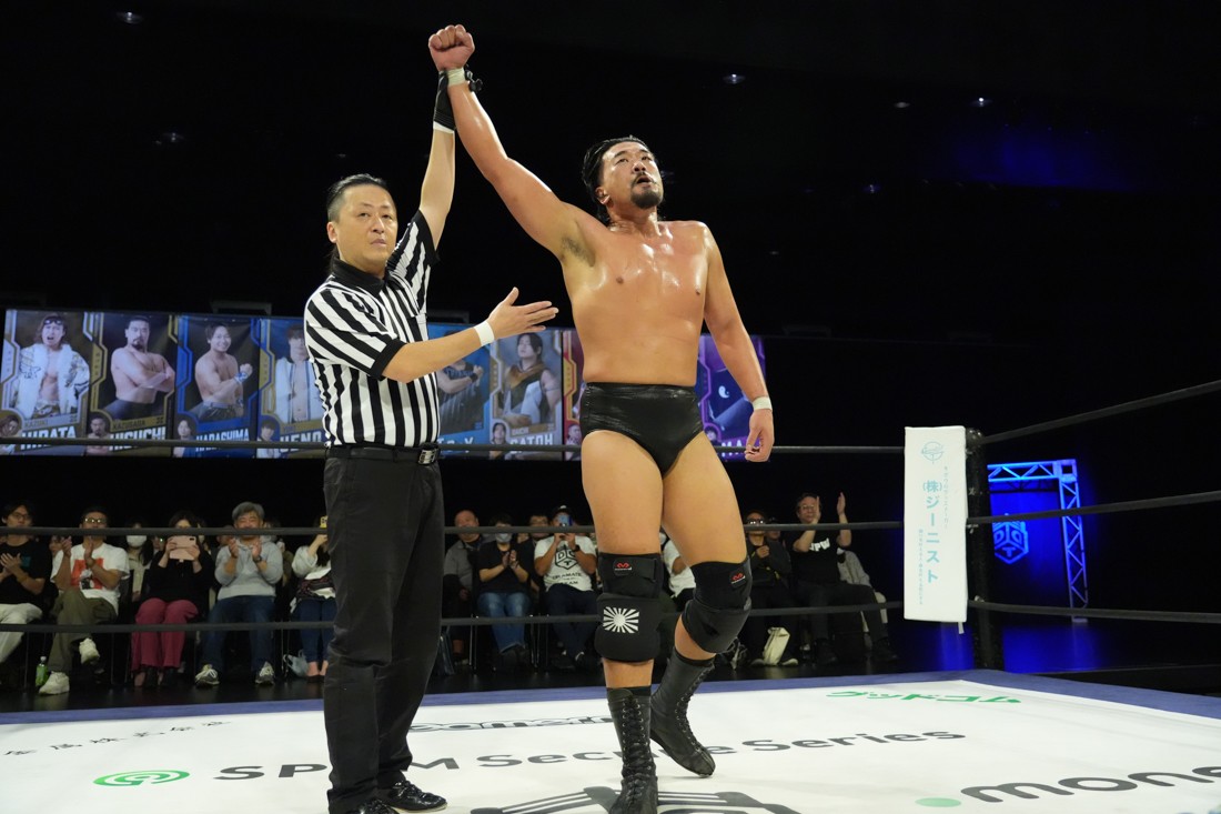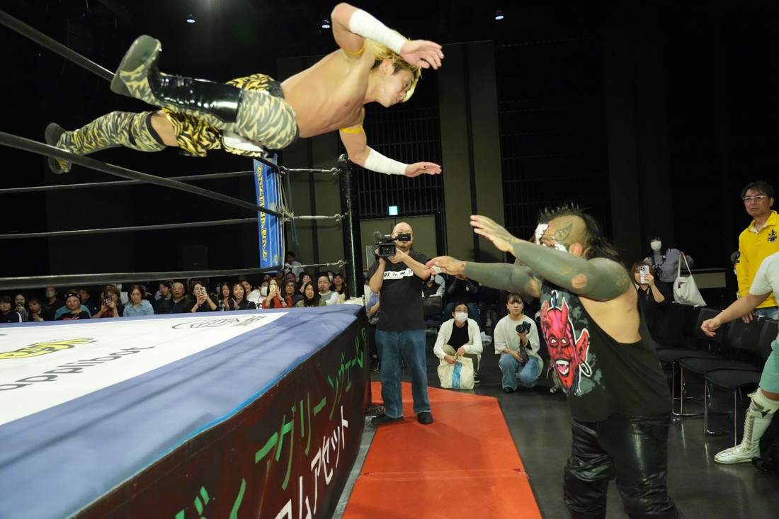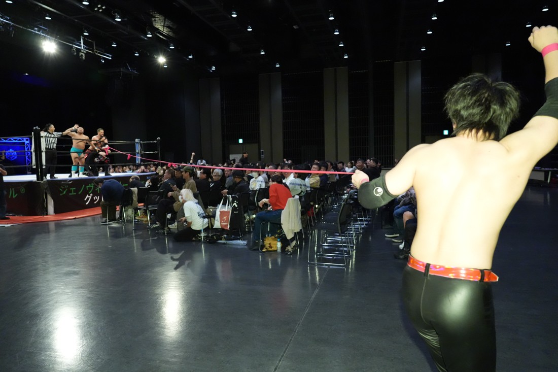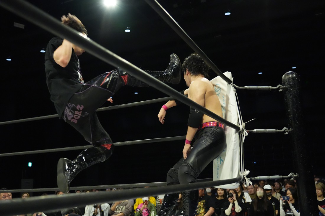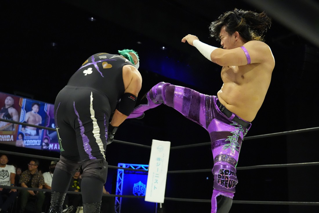 DGS世代にとってはTAKESHITAをはじめ、髙木、HARASHIMAとも対戦できる貴重な機会。とくにTo-yは11月30日後楽園ホール大会で髙木とEXTREME王座の防衛戦が決まってるため、激しくやり合う。TAKESHITAは石田を場外に連れ出し、床にDDTで叩き付けると、リングに戻る前にTo-yと大地を睨み付ける。