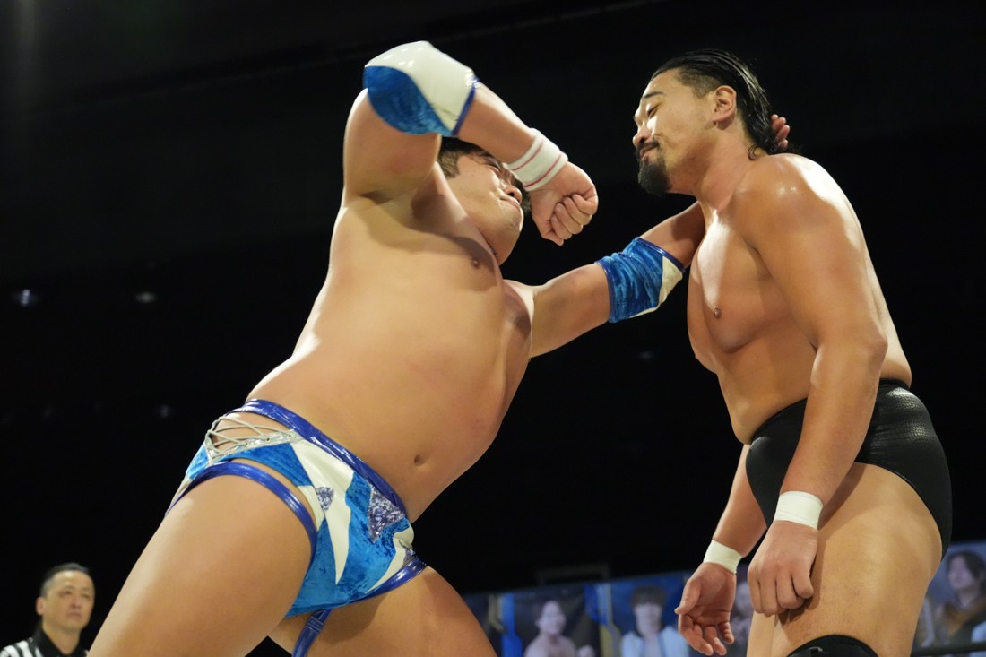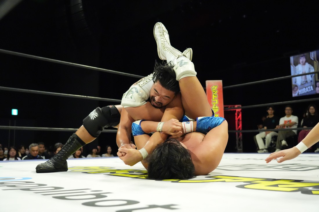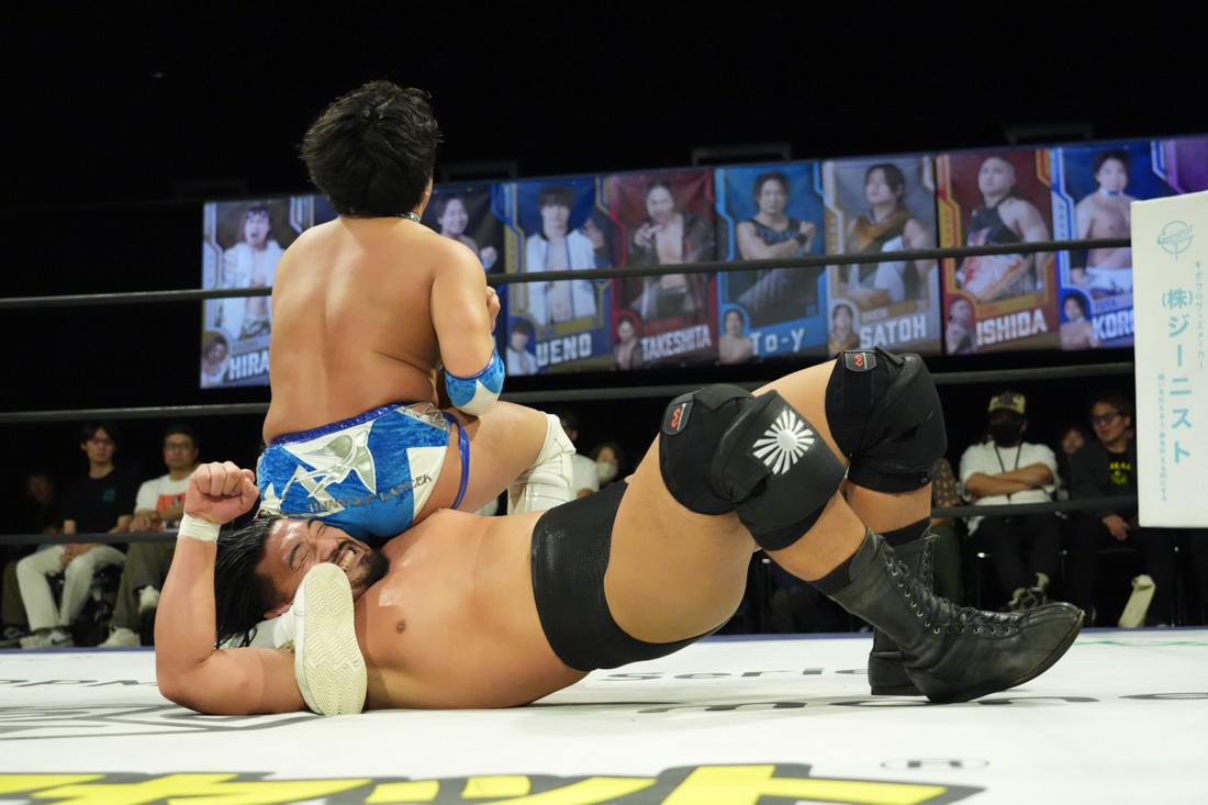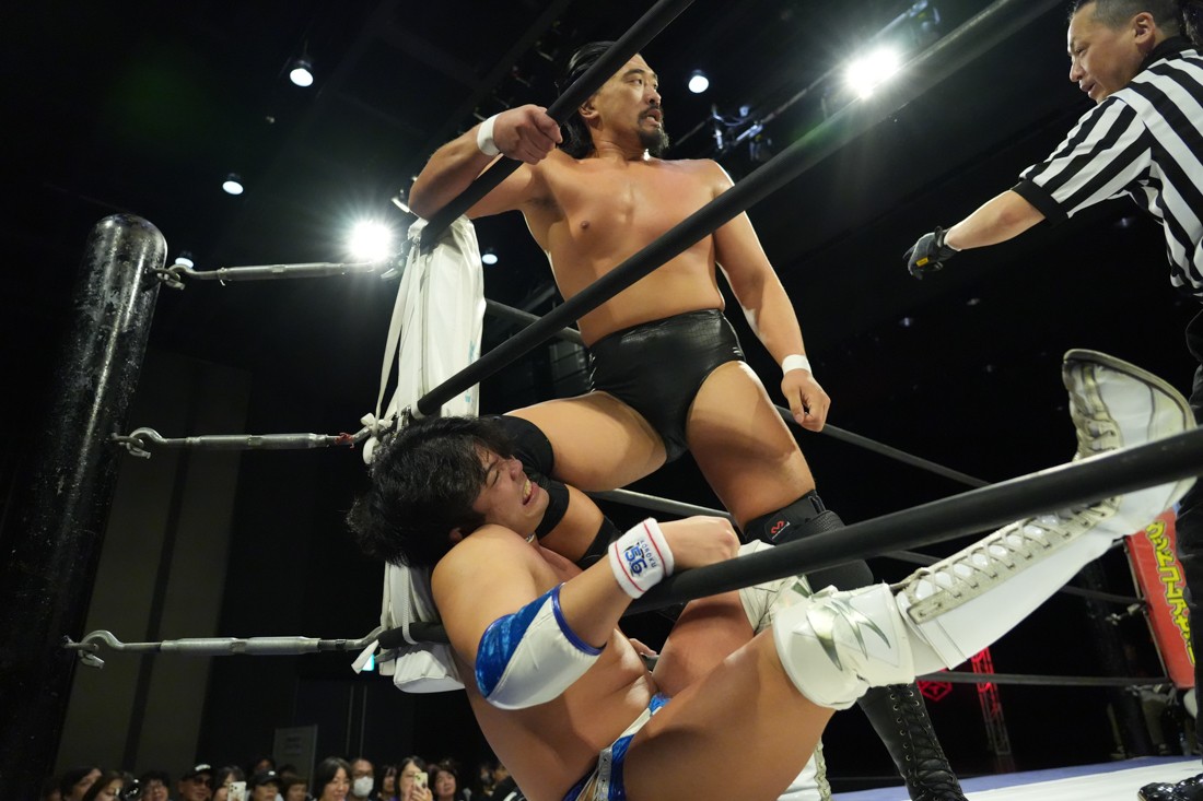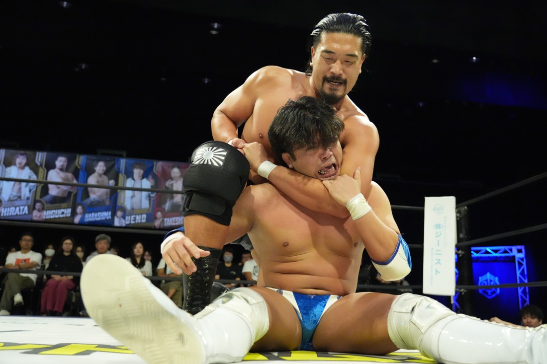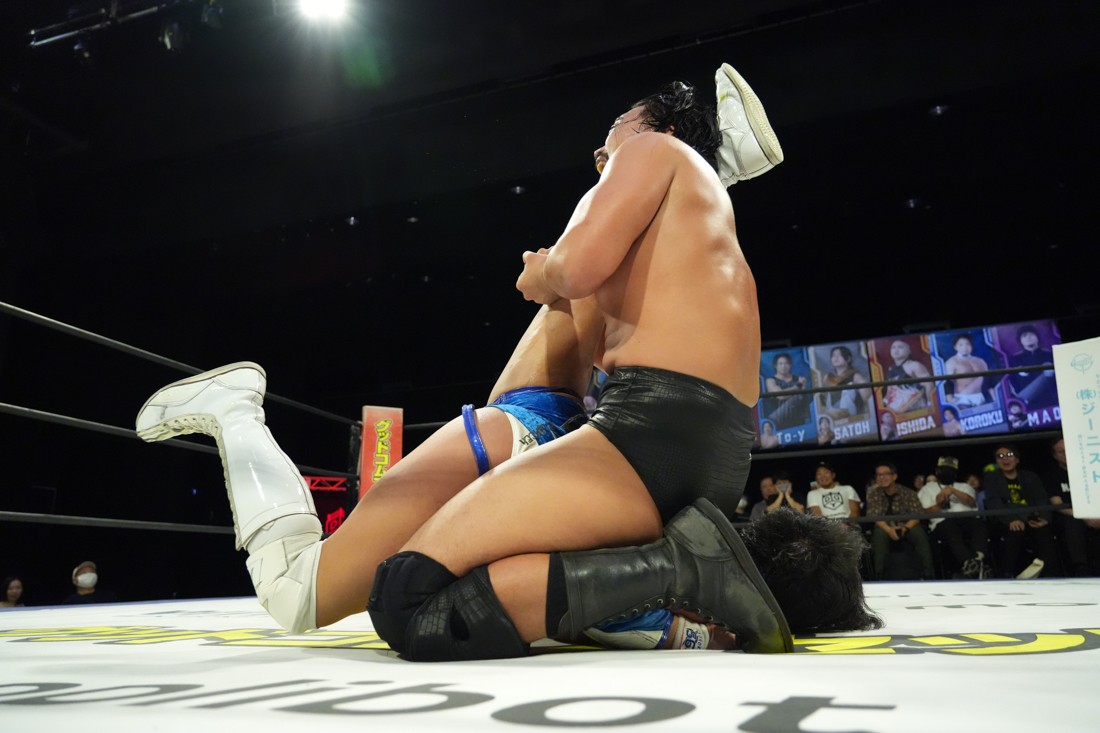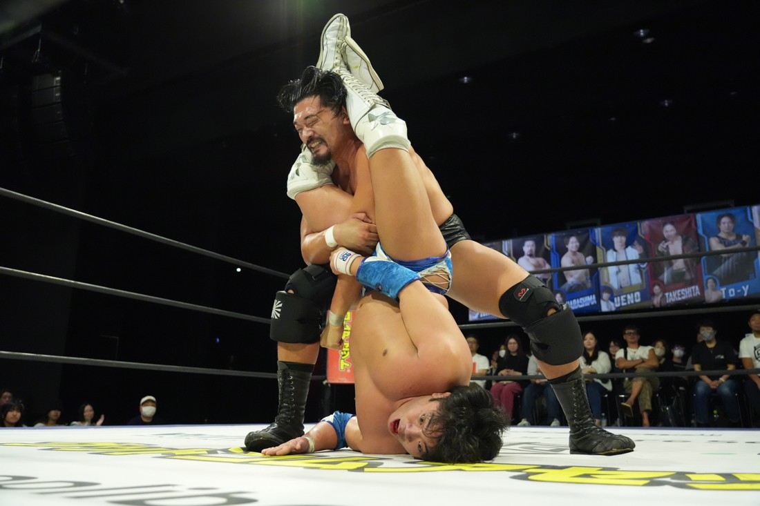 セミファイナルでは高鹿佑也が樋口和貞とシングルマッチで対戦。得意の腕攻めで果敢に食らいつき、飛び付き式の三角絞めに捉えると、樋口はそのまま持ち上げようとするが、腕のダメージもあって断念。そのまま絞め続けた高鹿だったが、樋口は三角絞めを決められた状態でステップオーバーし、逆に高鹿の左足を抱え込むような逆片エビ固めを決めてギブアップを奪った。