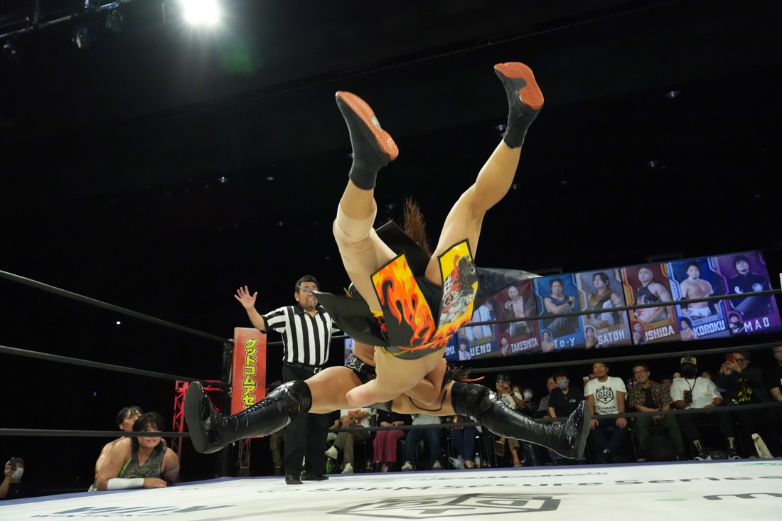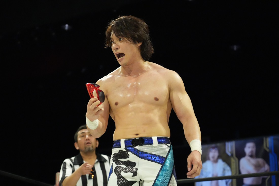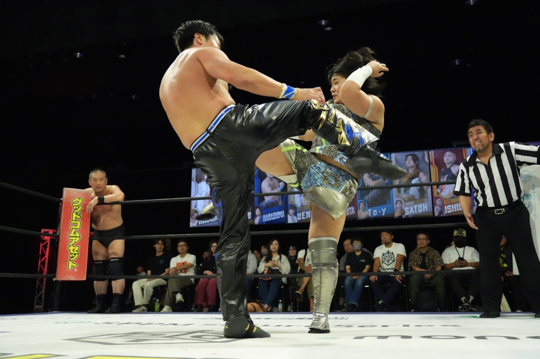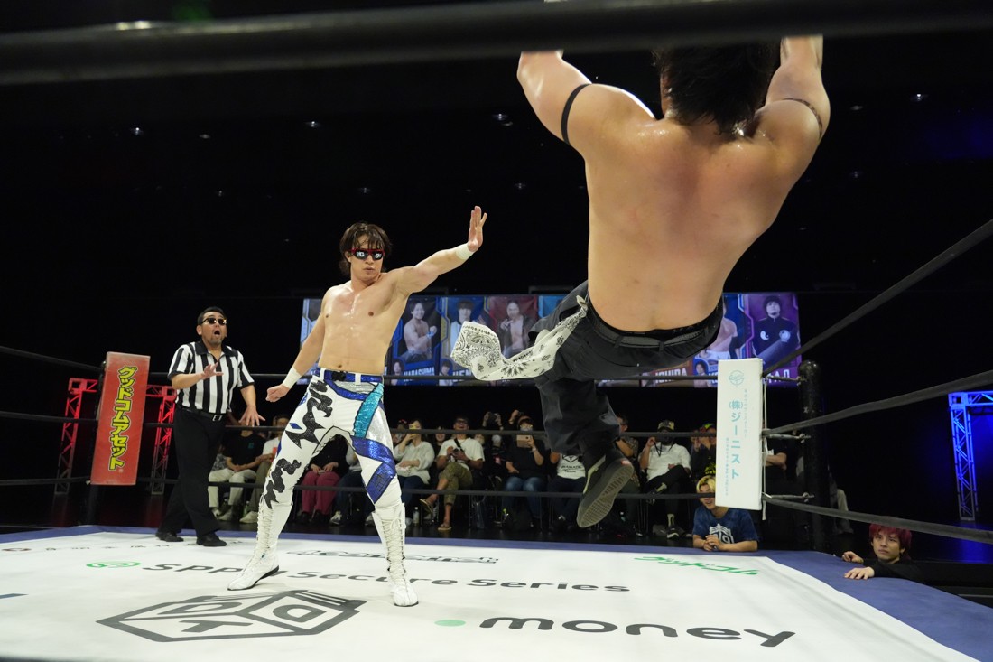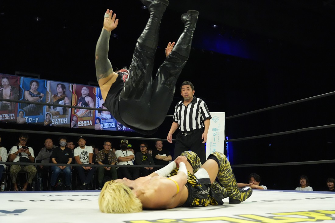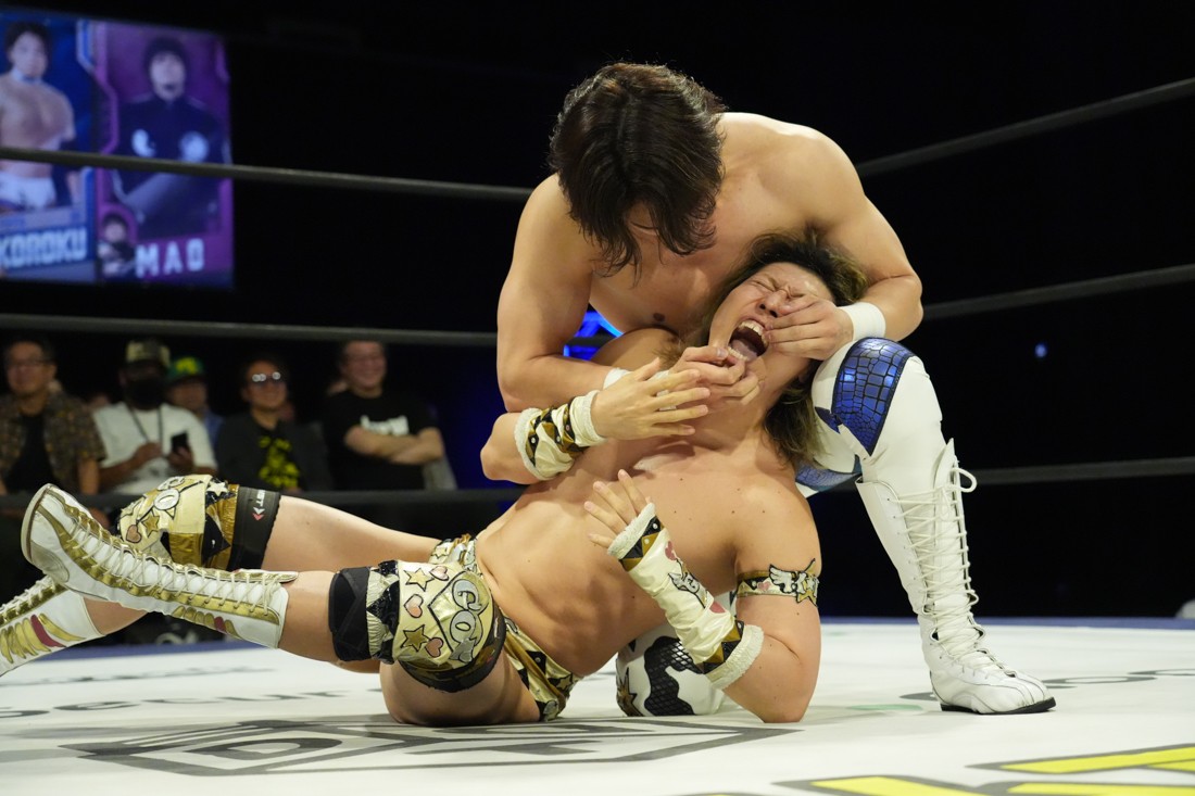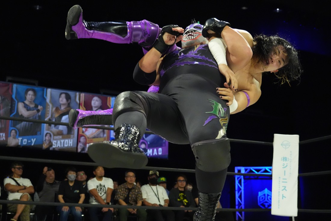 セミファイナルでは高鹿佑也が樋口和貞とシングルマッチで対戦。得意の腕攻めで果敢に食らいつき、飛び付き式の三角絞めに捉えると、樋口はそのまま持ち上げようとするが、腕のダメージもあって断念。そのまま絞め続けた高鹿だったが、樋口は三角絞めを決められた状態でステップオーバーし、逆に高鹿の左足を抱え込むような逆片エビ固めを決めてギブアップを奪った。
