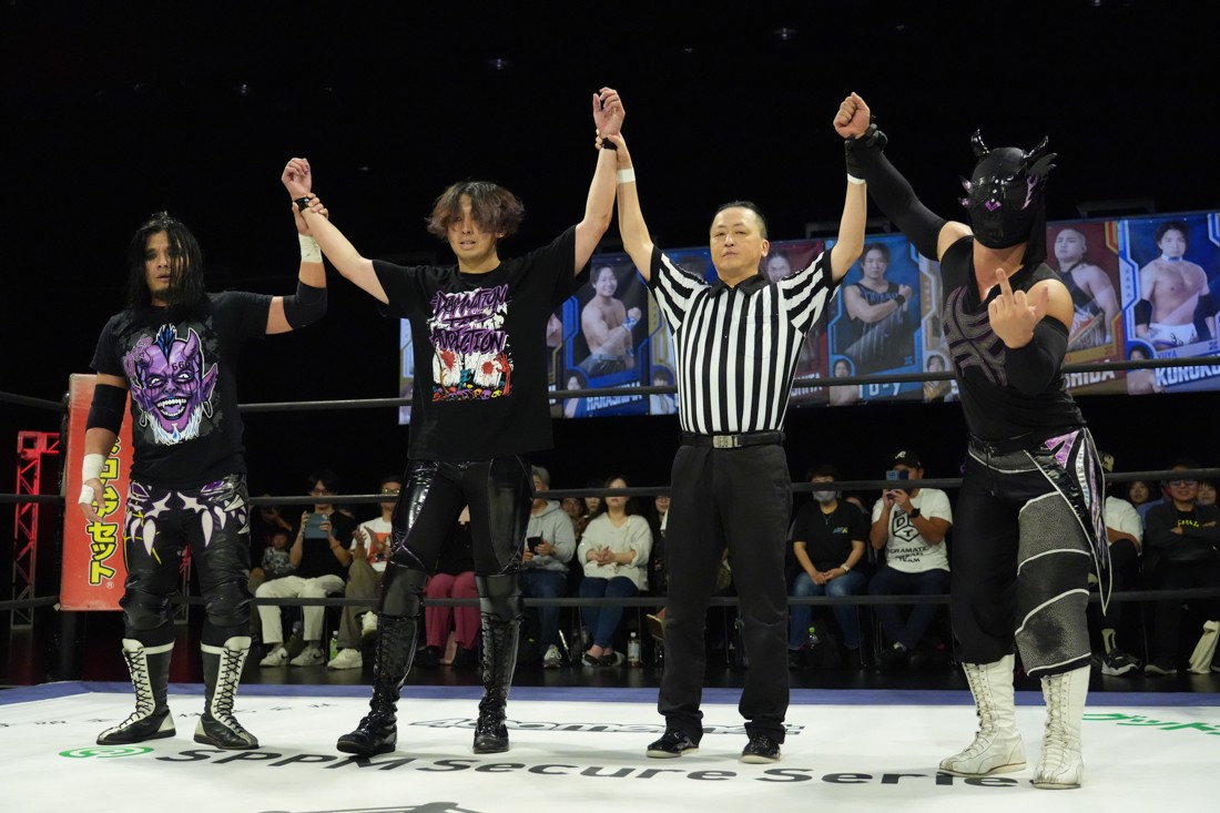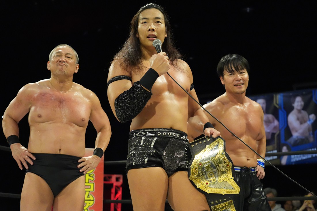 11月9日、熊本・熊本城ホール・シビックホールで「くまもとウォーリアーズ」が開催。メインイベントでは熊本出身の石田有輝がTo-y&佐藤大地とDGS世代トリオを組んで、KONOSUKE TAKESHITA&髙木三四郎&HARASHIMAのDDT三世代トリオと対戦。