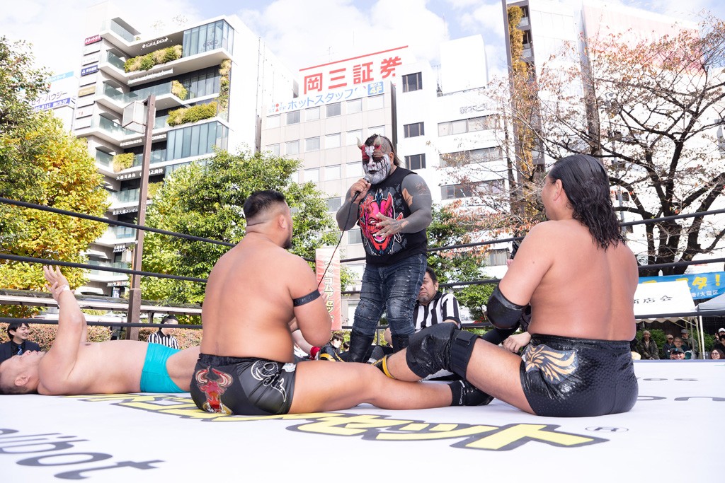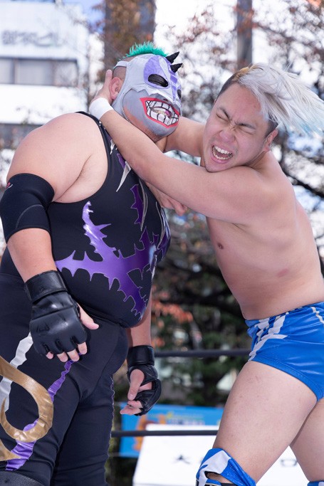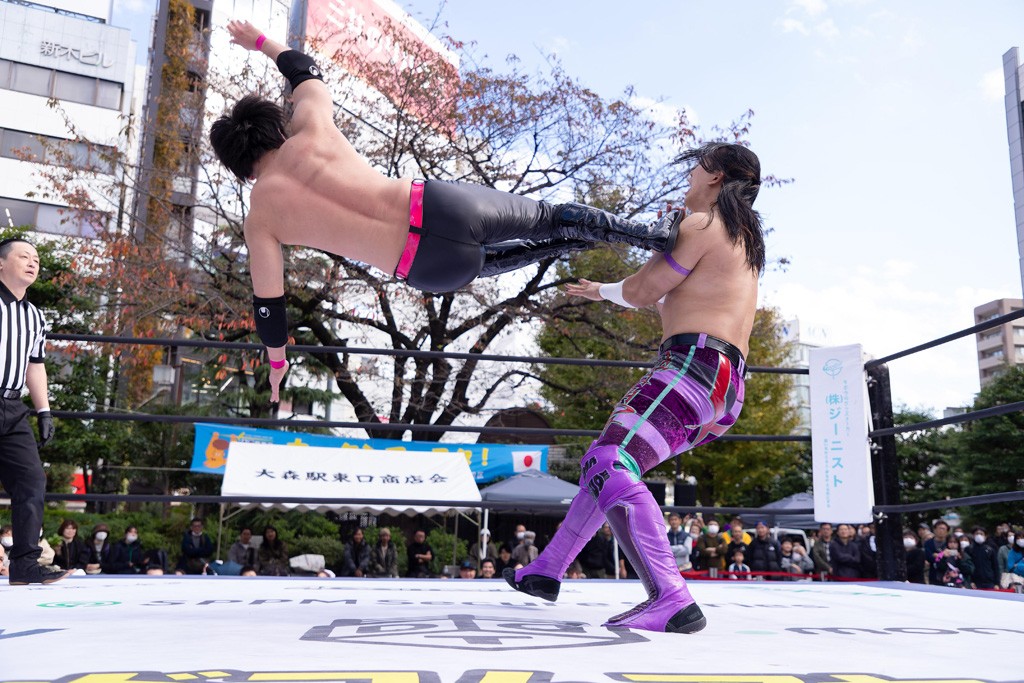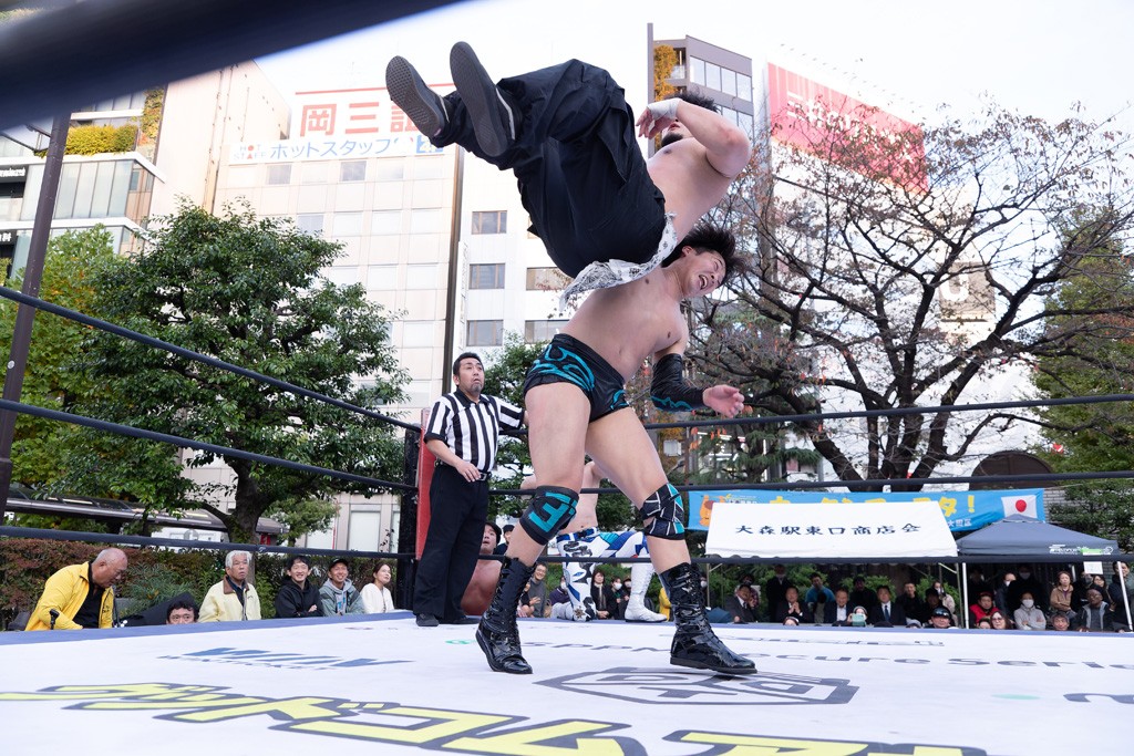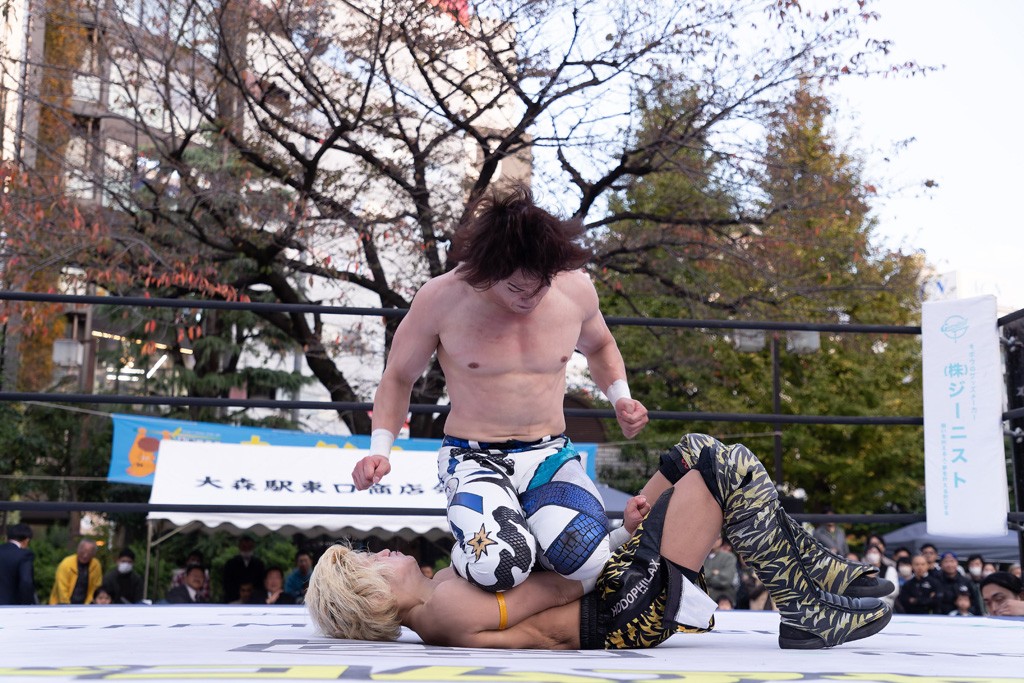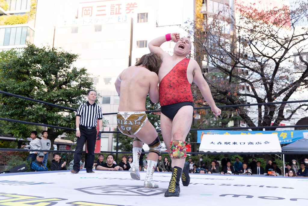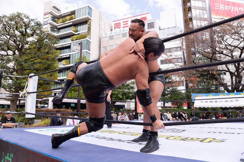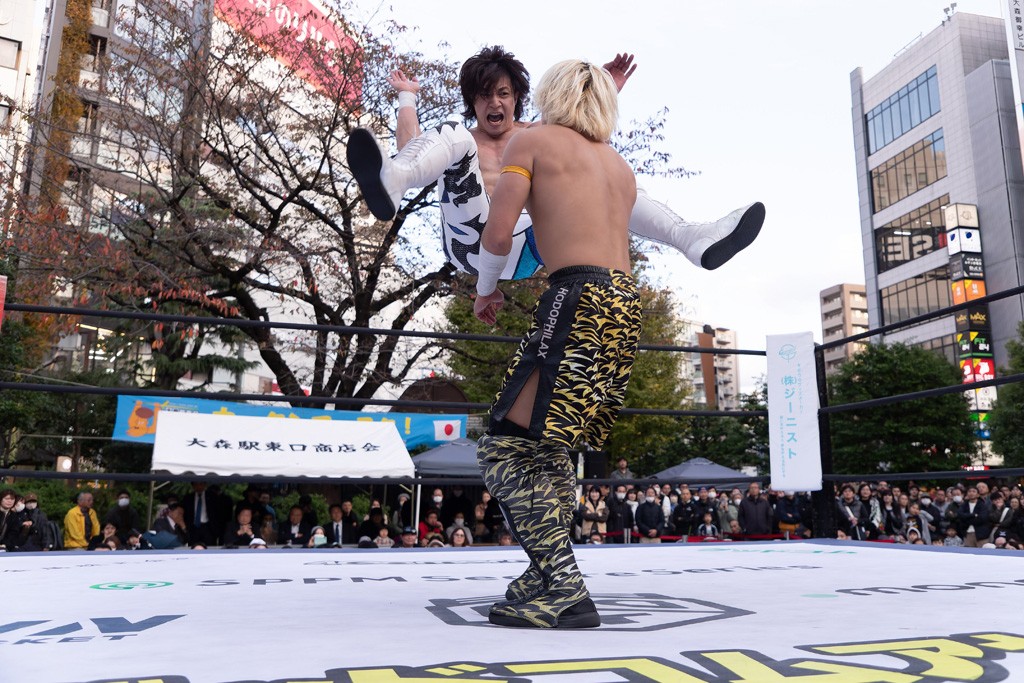 「来年このベルト獲ったら、俺が世界”赤羽級”王座を設立し、フォーエバーチャンプになるのだ……!」(イルシオン)「オマエ、マスク剥がして大森の住人にしてやろうか……!」(平田)来年の大森級選手権試合に向け平田とイルシオンが睨み合う!