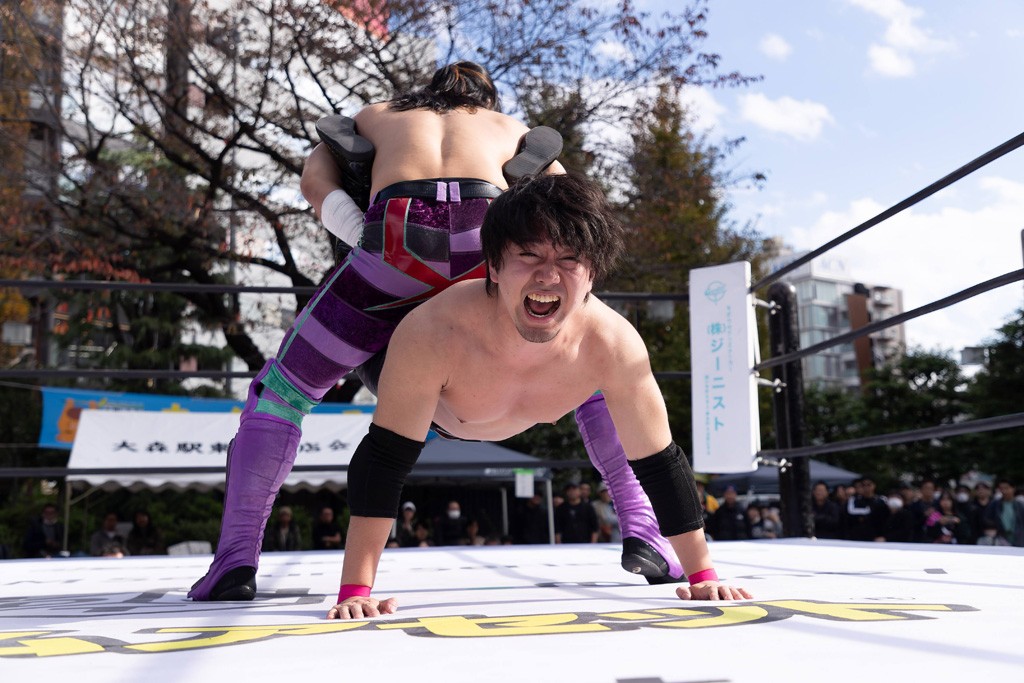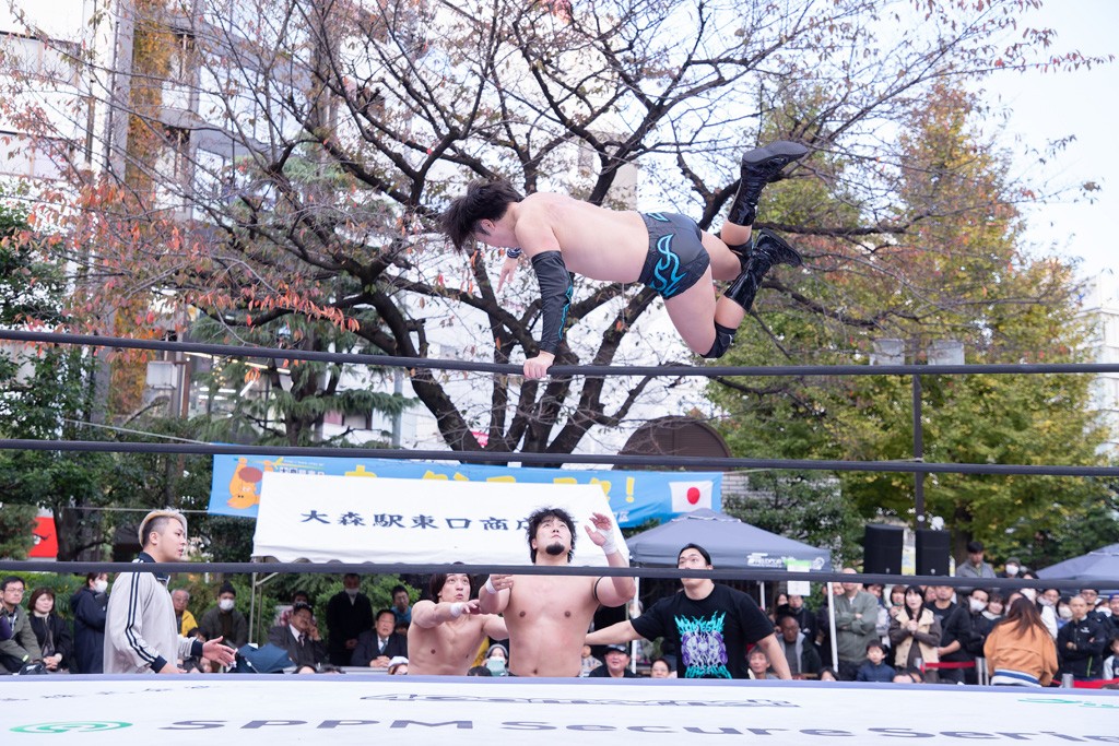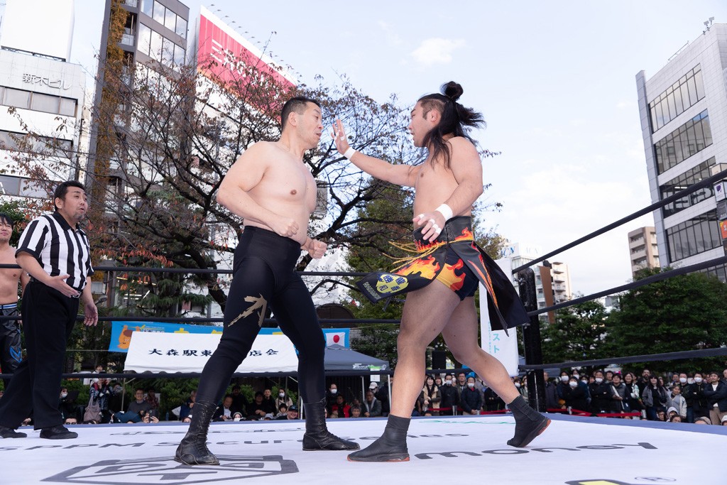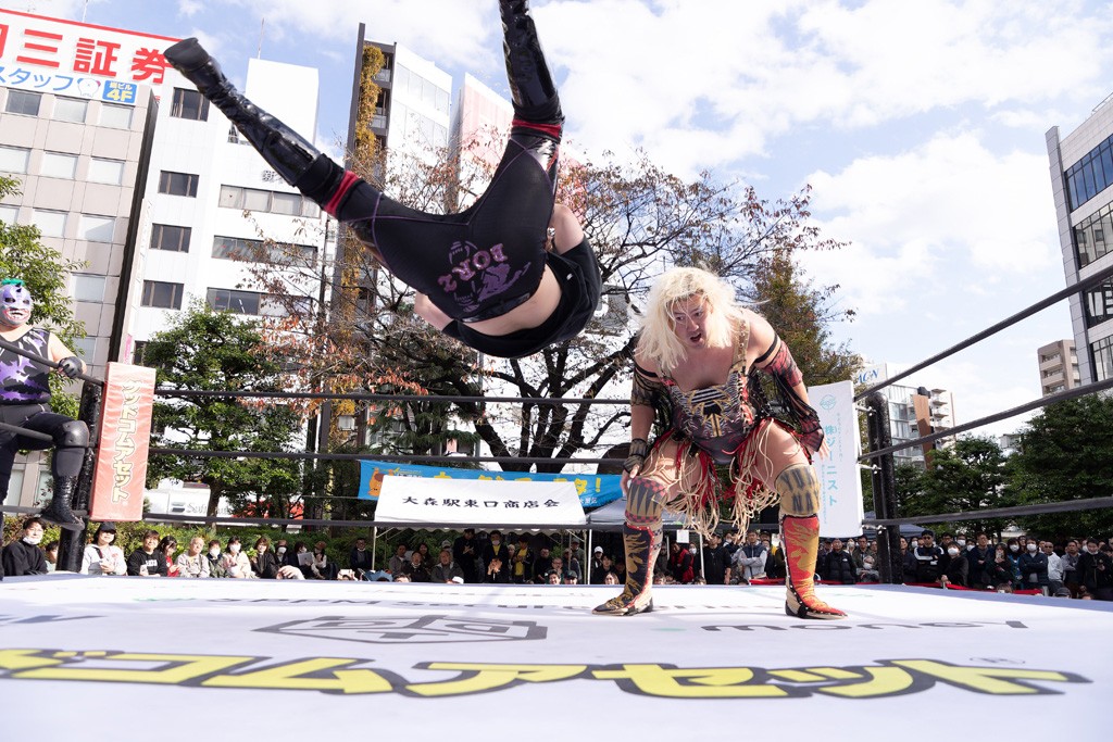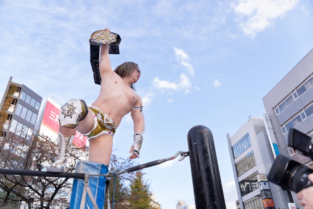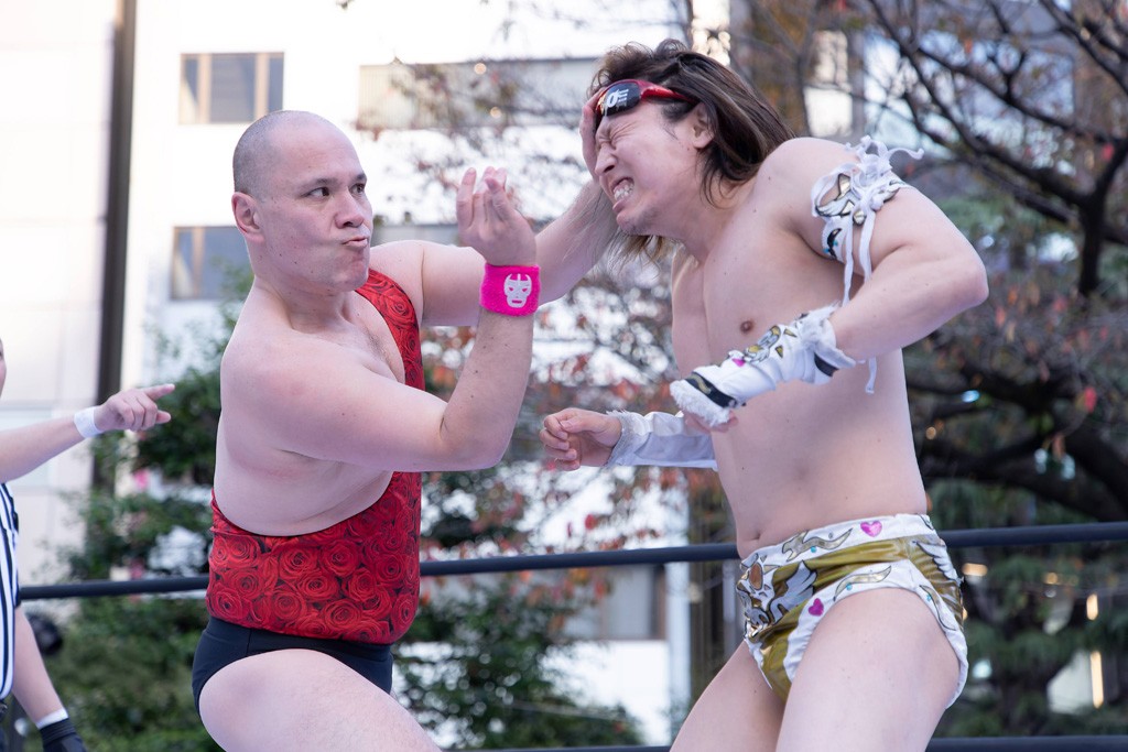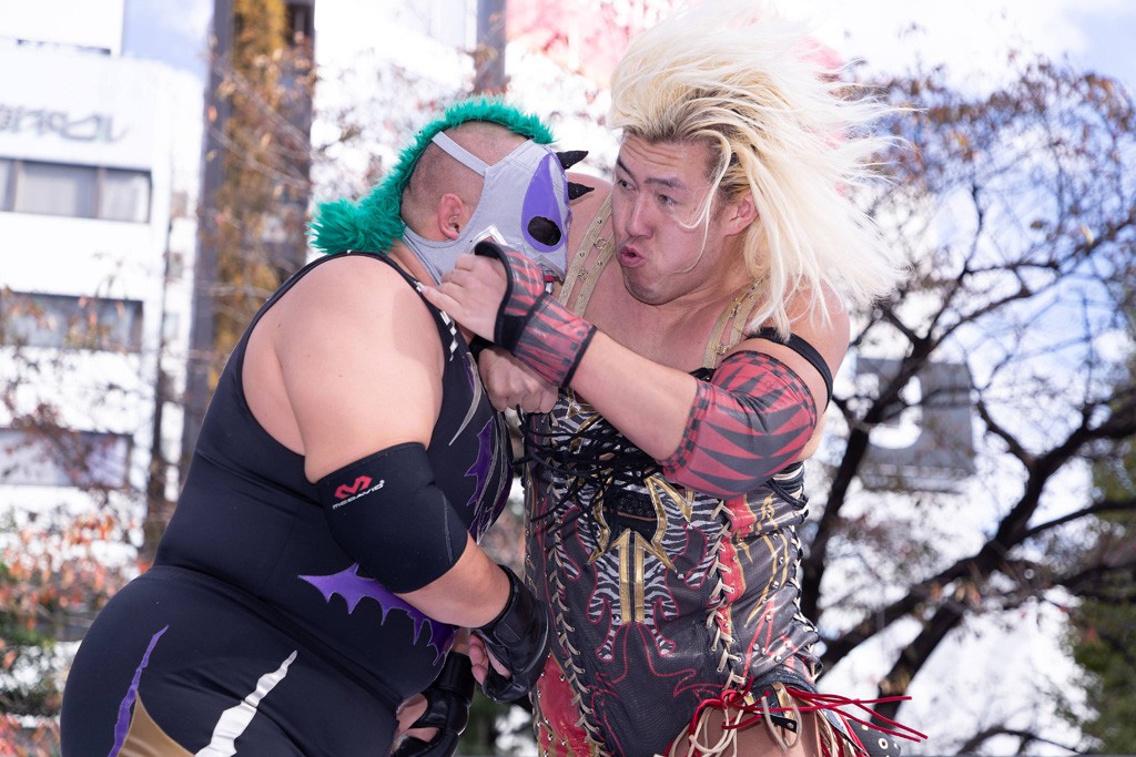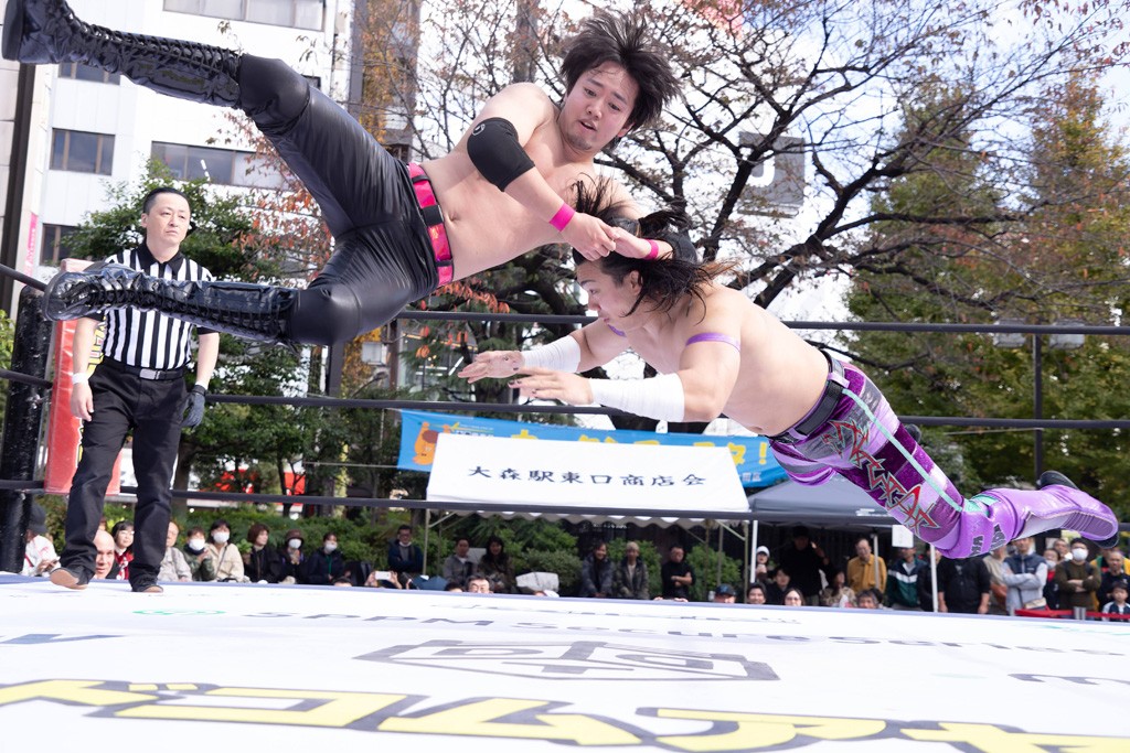 「来年このベルト獲ったら、俺が世界”赤羽級”王座を設立し、フォーエバーチャンプになるのだ……!」(イルシオン)「オマエ、マスク剥がして大森の住人にしてやろうか……!」(平田)来年の大森級選手権試合に向け平田とイルシオンが睨み合う!