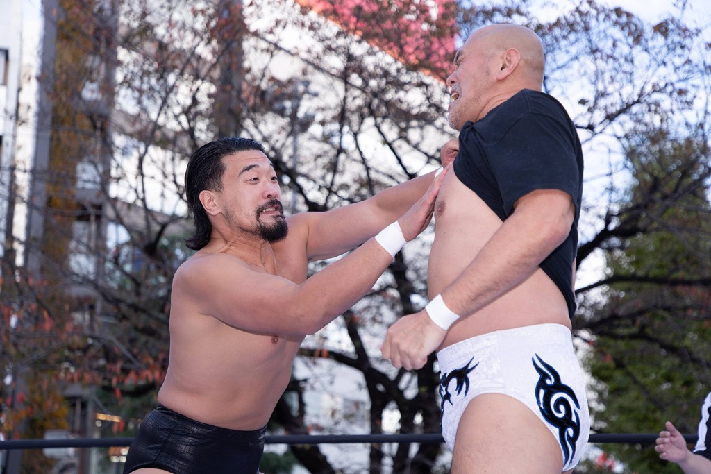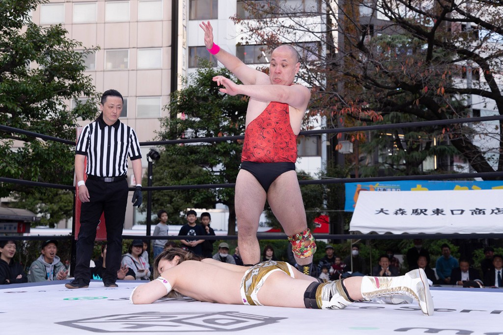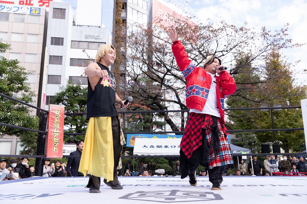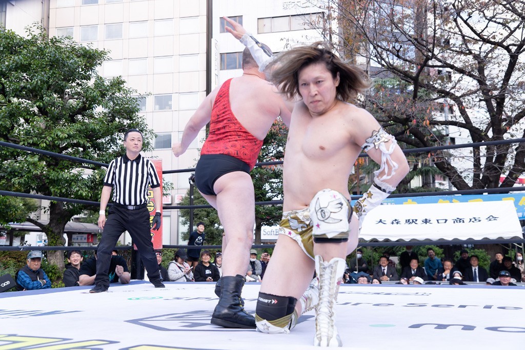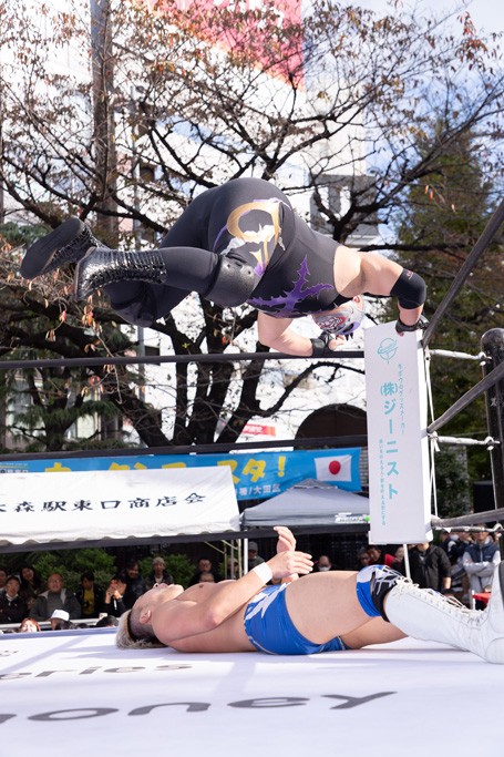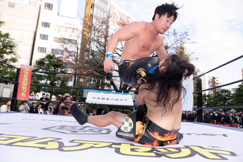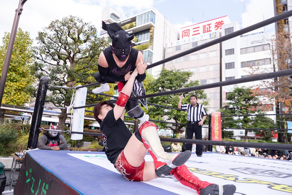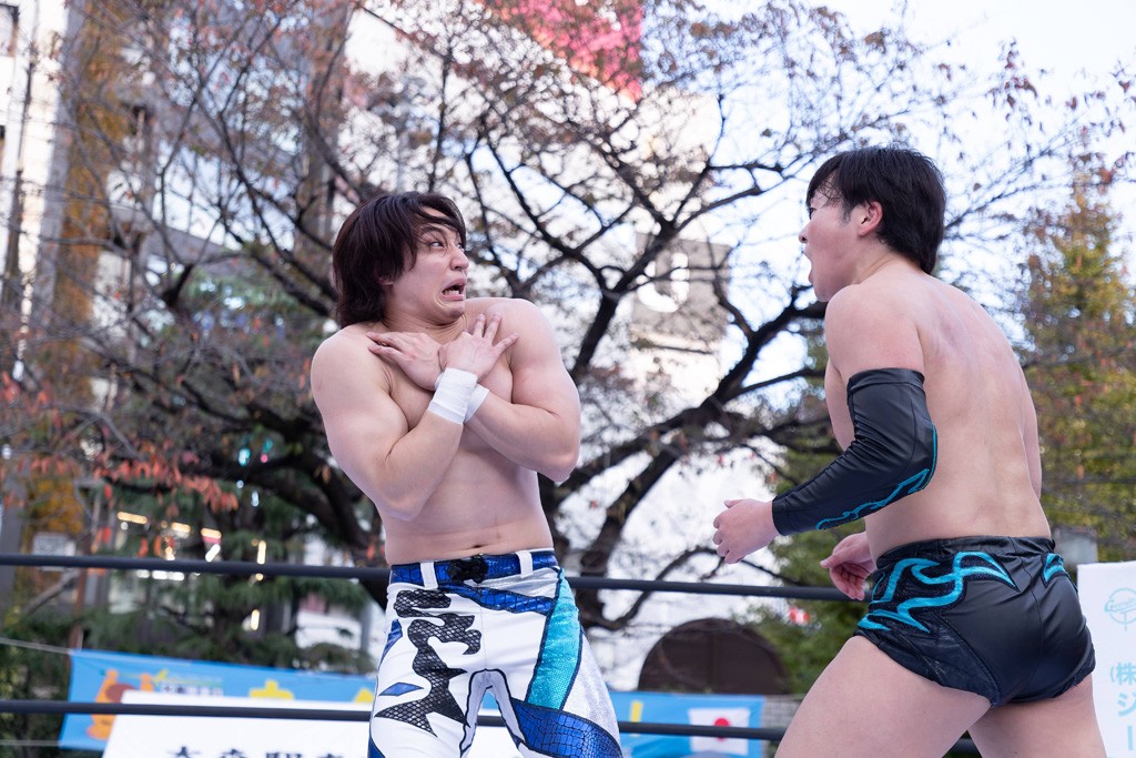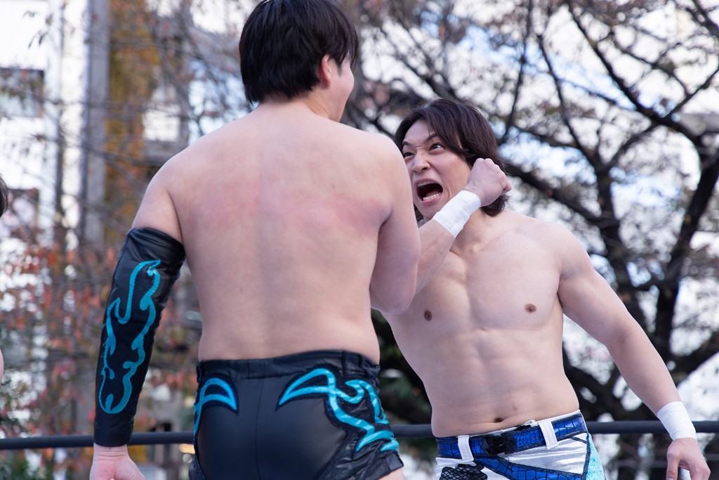 「来年このベルト獲ったら、俺が世界”赤羽級”王座を設立し、フォーエバーチャンプになるのだ……!」(イルシオン)「オマエ、マスク剥がして大森の住人にしてやろうか……!」(平田)来年の大森級選手権試合に向け平田とイルシオンが睨み合う!