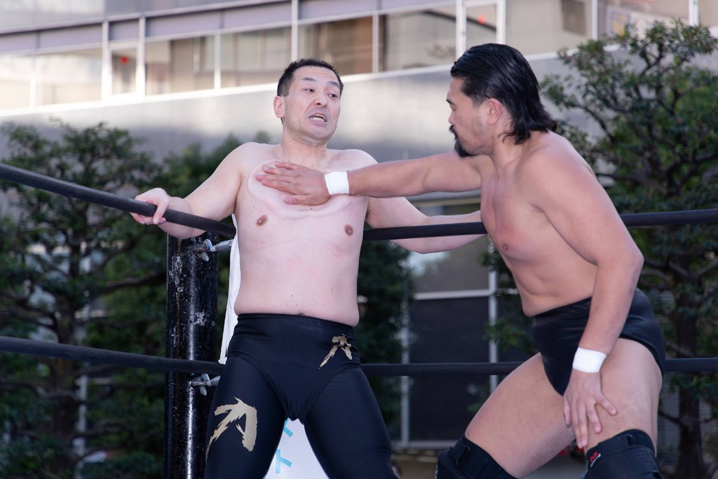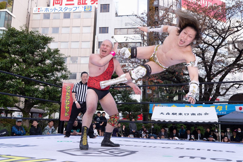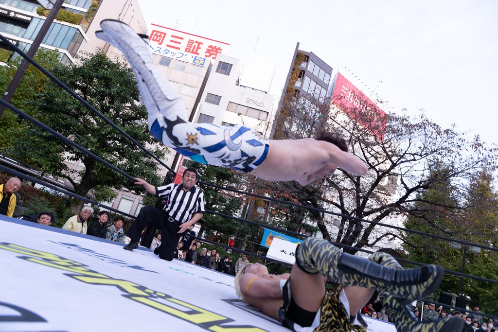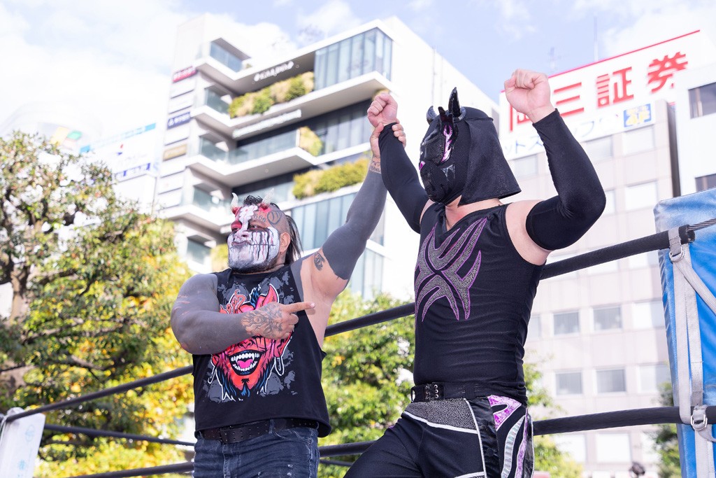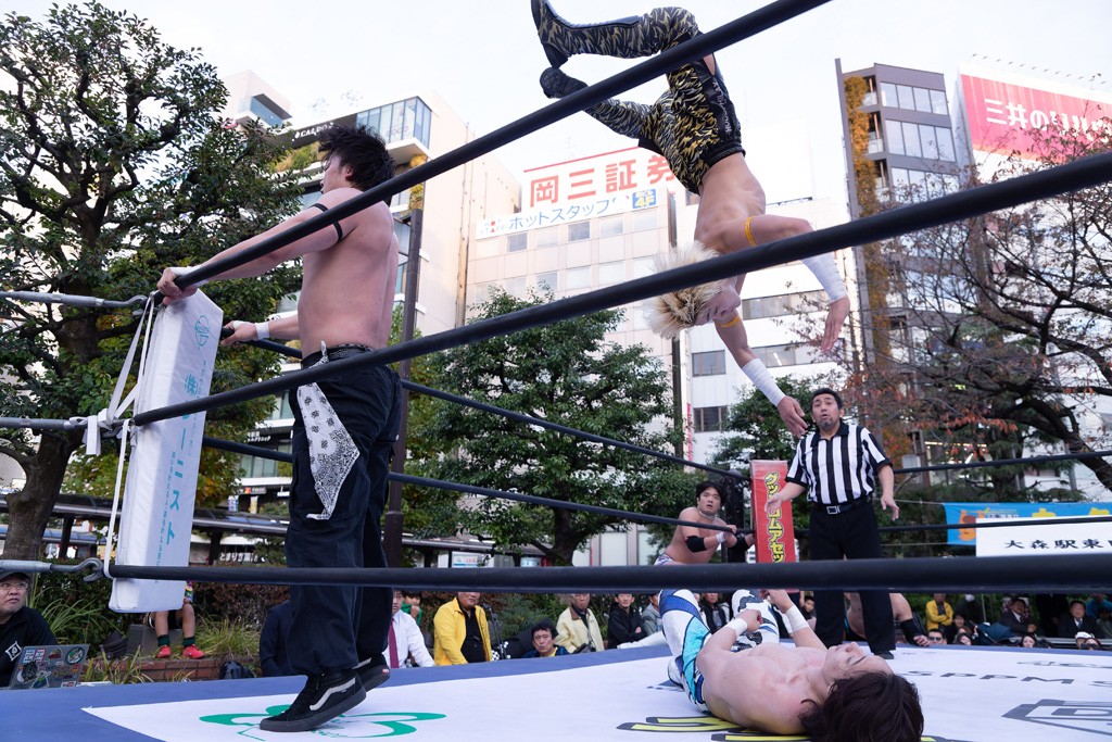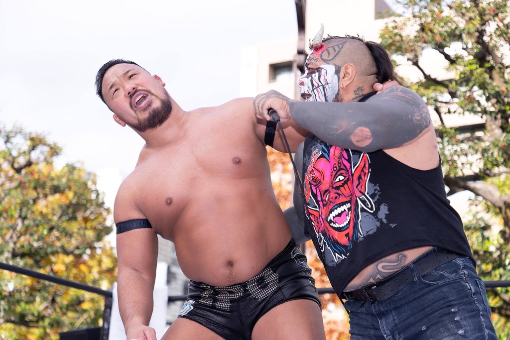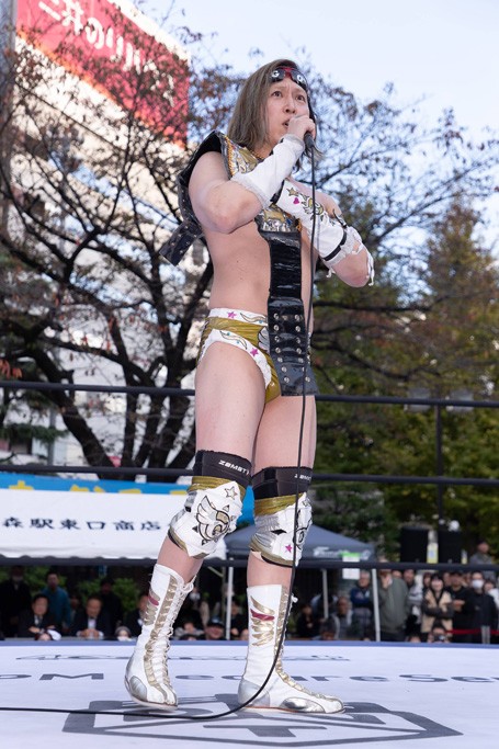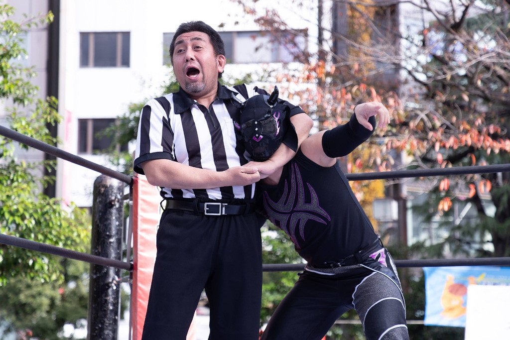 「来年このベルト獲ったら、俺が世界”赤羽級”王座を設立し、フォーエバーチャンプになるのだ……!」(イルシオン)「オマエ、マスク剥がして大森の住人にしてやろうか……!」(平田)来年の大森級選手権試合に向け平田とイルシオンが睨み合う!