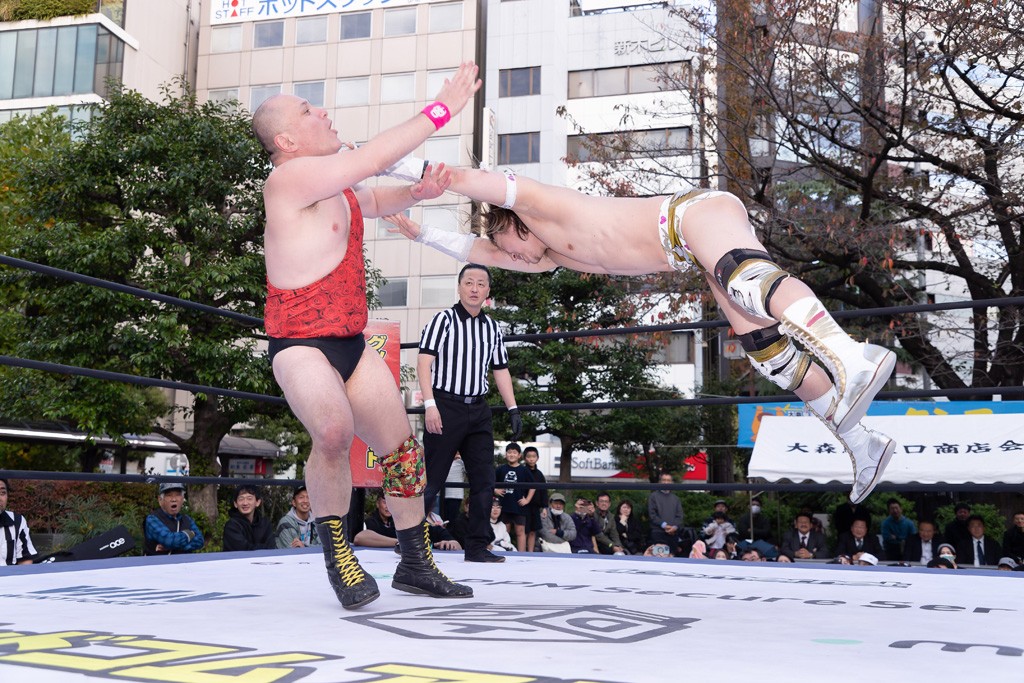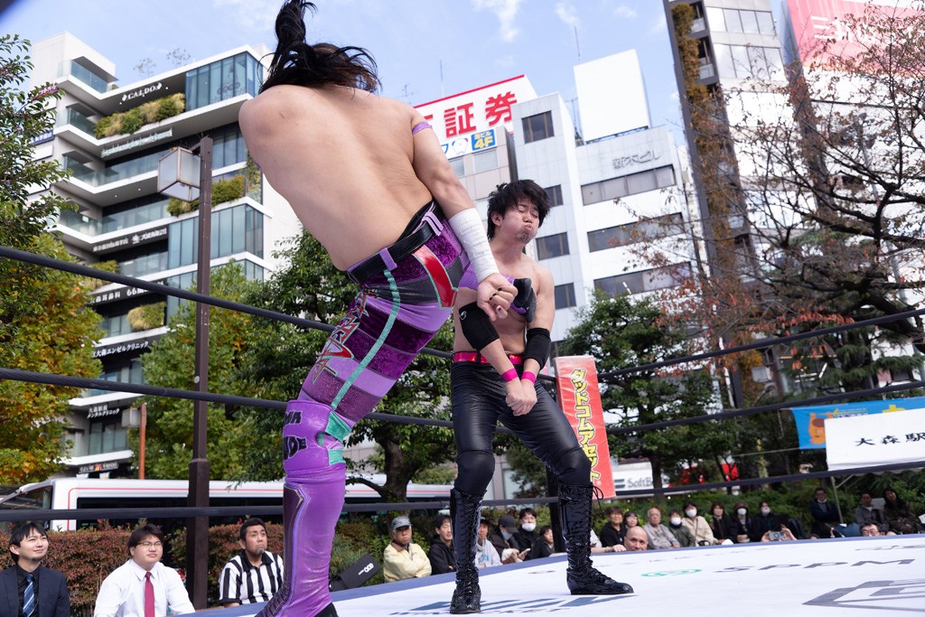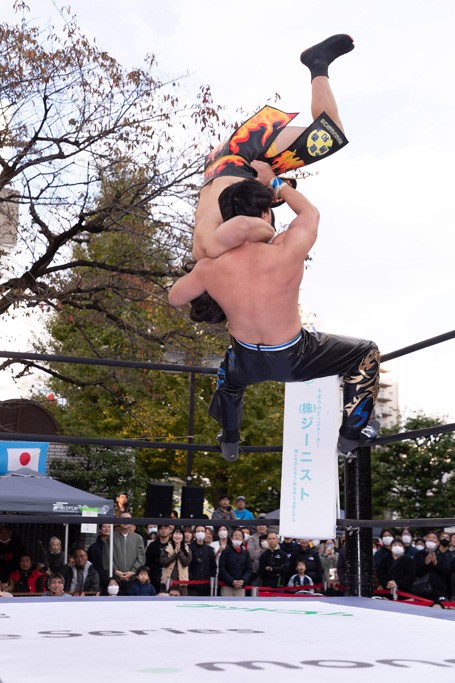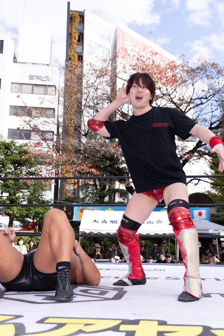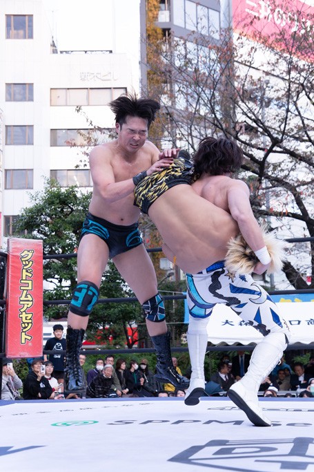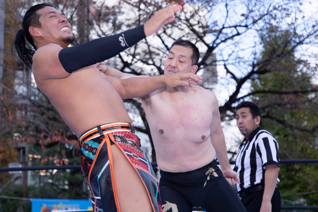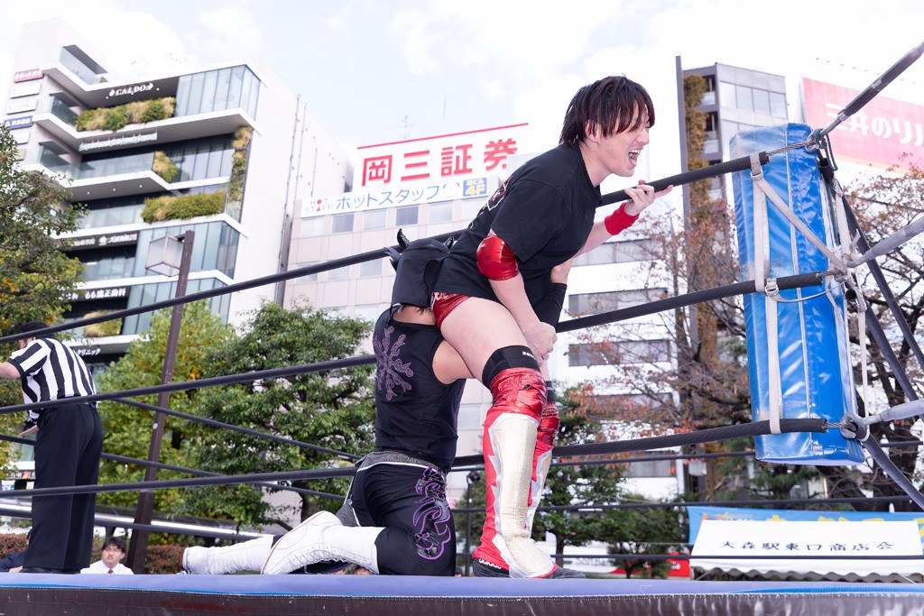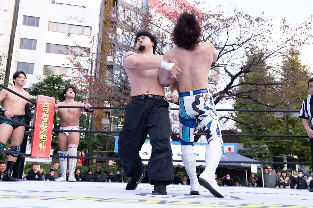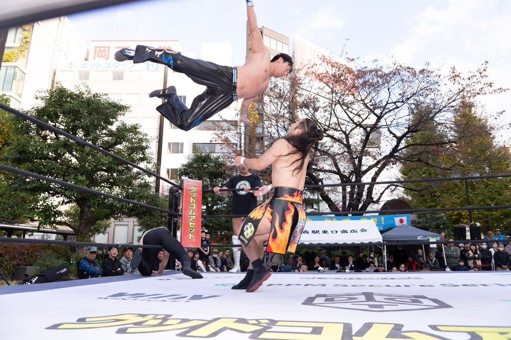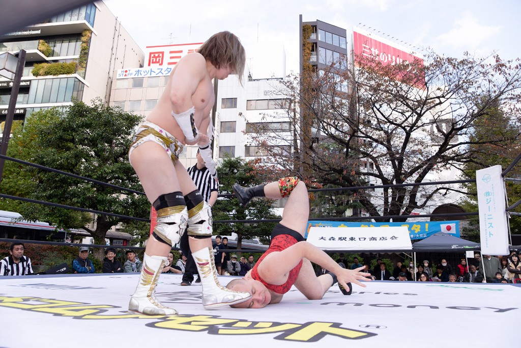 「来年このベルト獲ったら、俺が世界”赤羽級”王座を設立し、フォーエバーチャンプになるのだ……!」(イルシオン)「オマエ、マスク剥がして大森の住人にしてやろうか……!」(平田)来年の大森級選手権試合に向け平田とイルシオンが睨み合う!