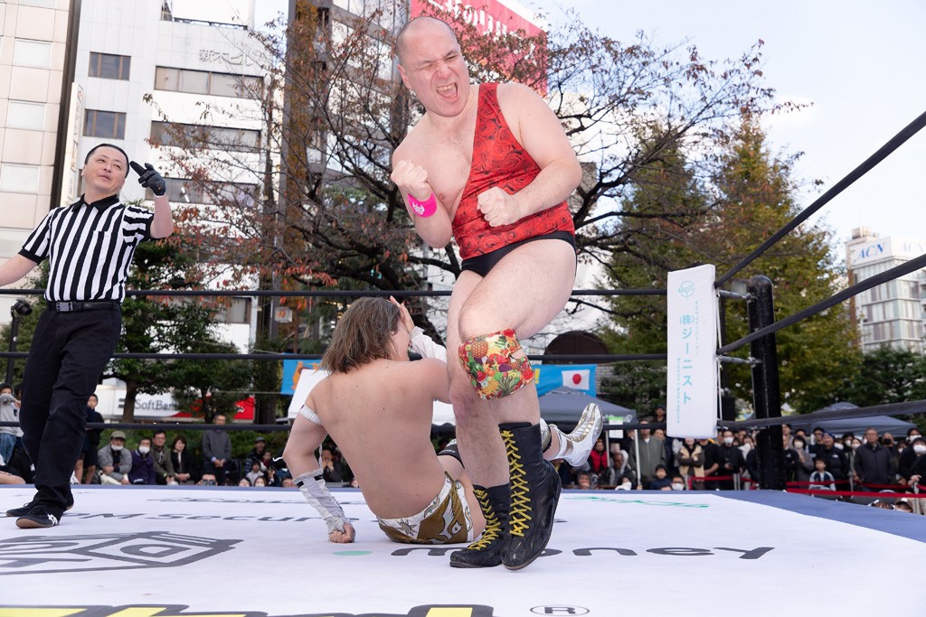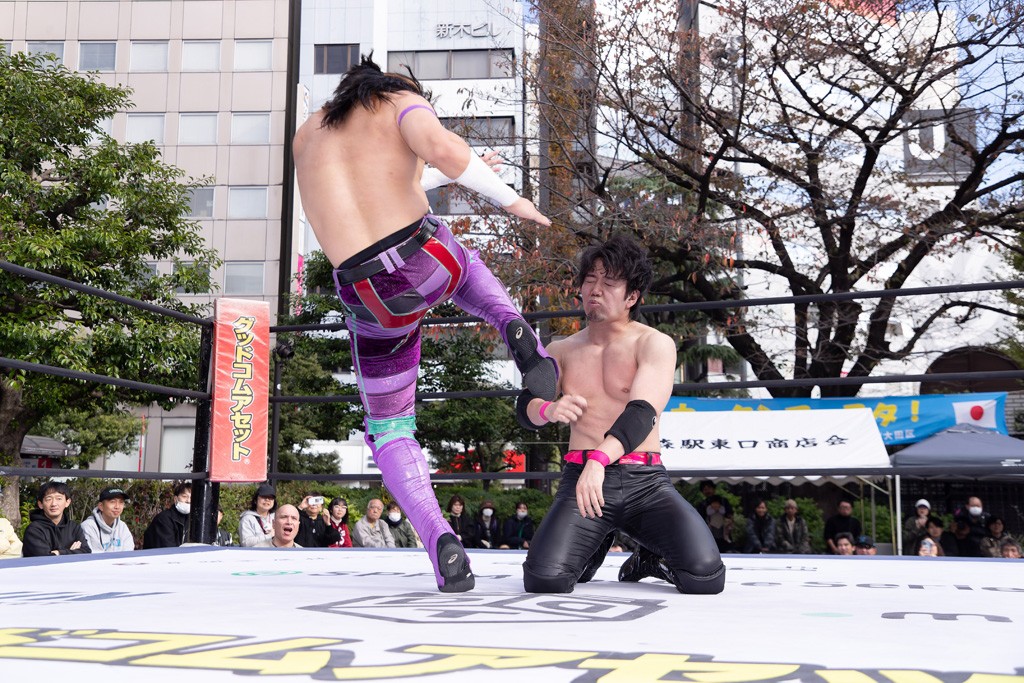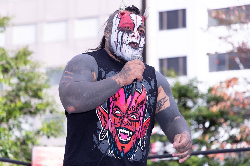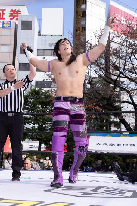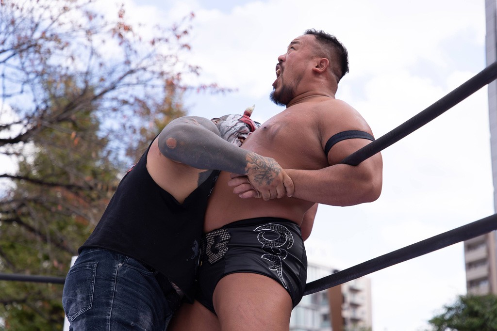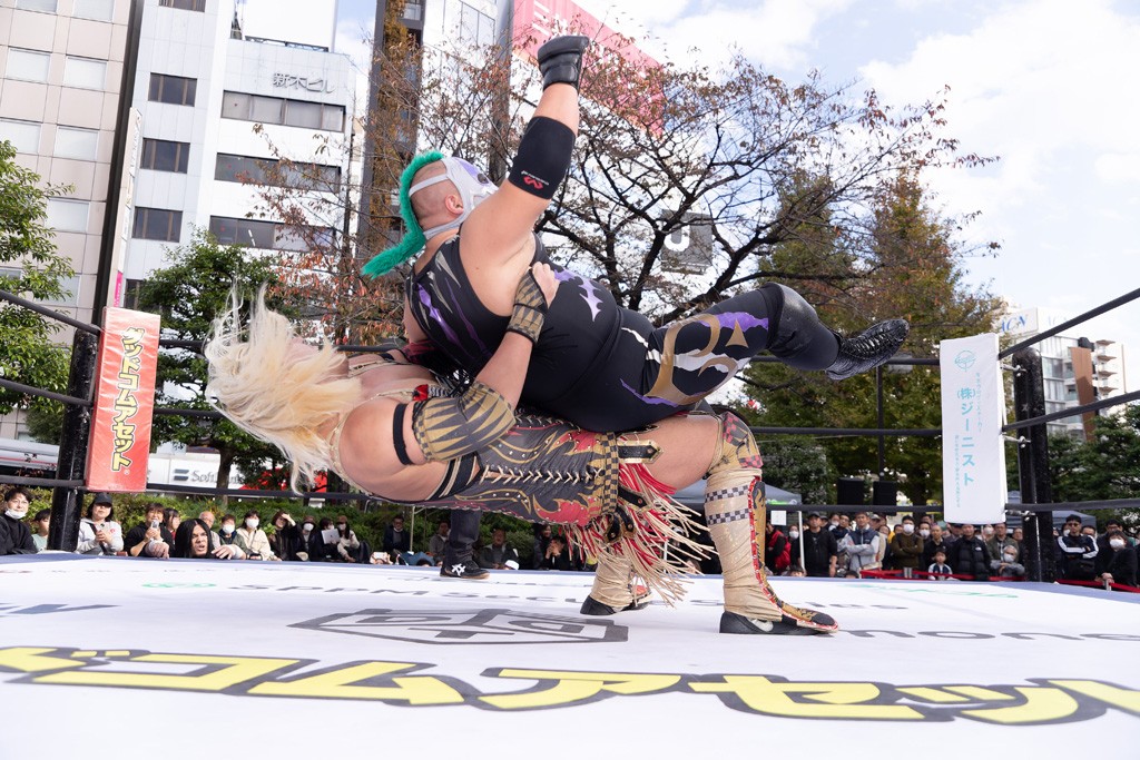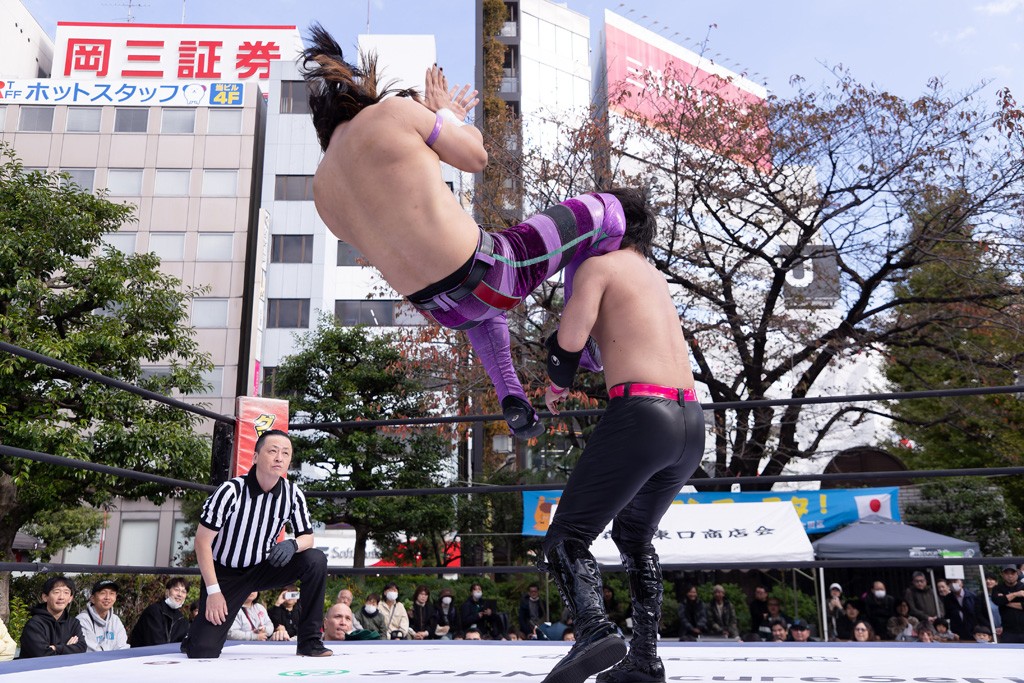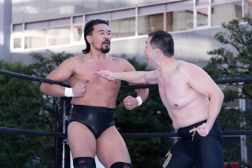 「来年このベルト獲ったら、俺が世界”赤羽級”王座を設立し、フォーエバーチャンプになるのだ……!」(イルシオン)「オマエ、マスク剥がして大森の住人にしてやろうか……!」(平田)来年の大森級選手権試合に向け平田とイルシオンが睨み合う!