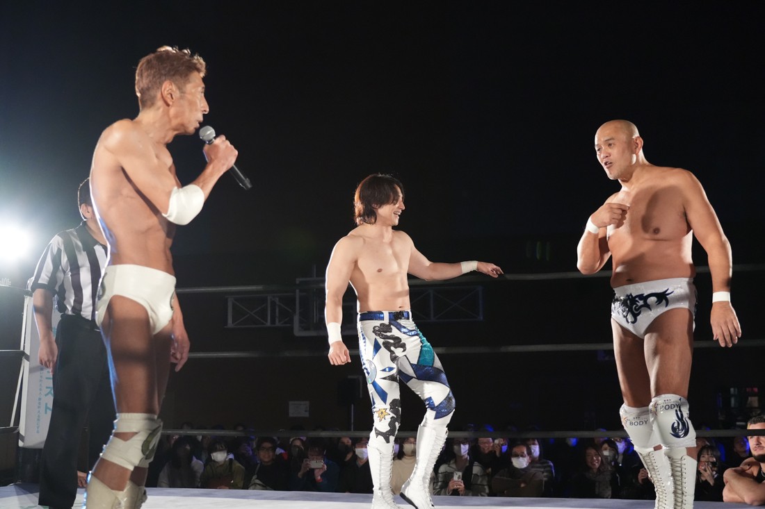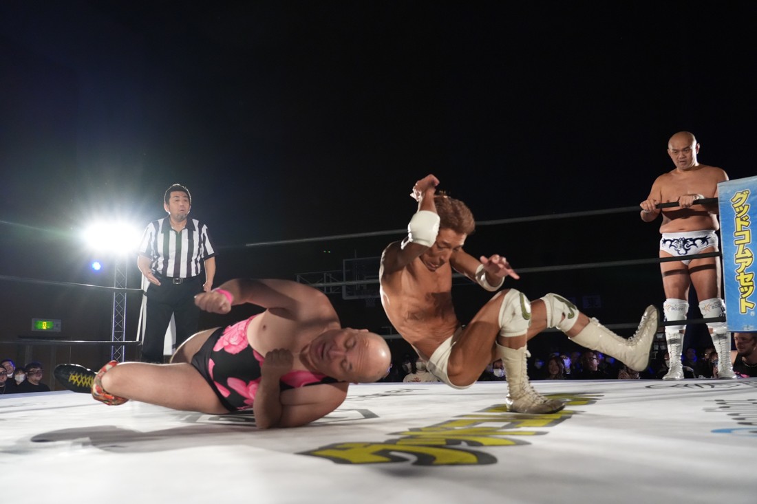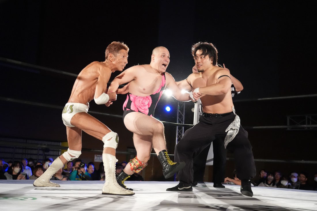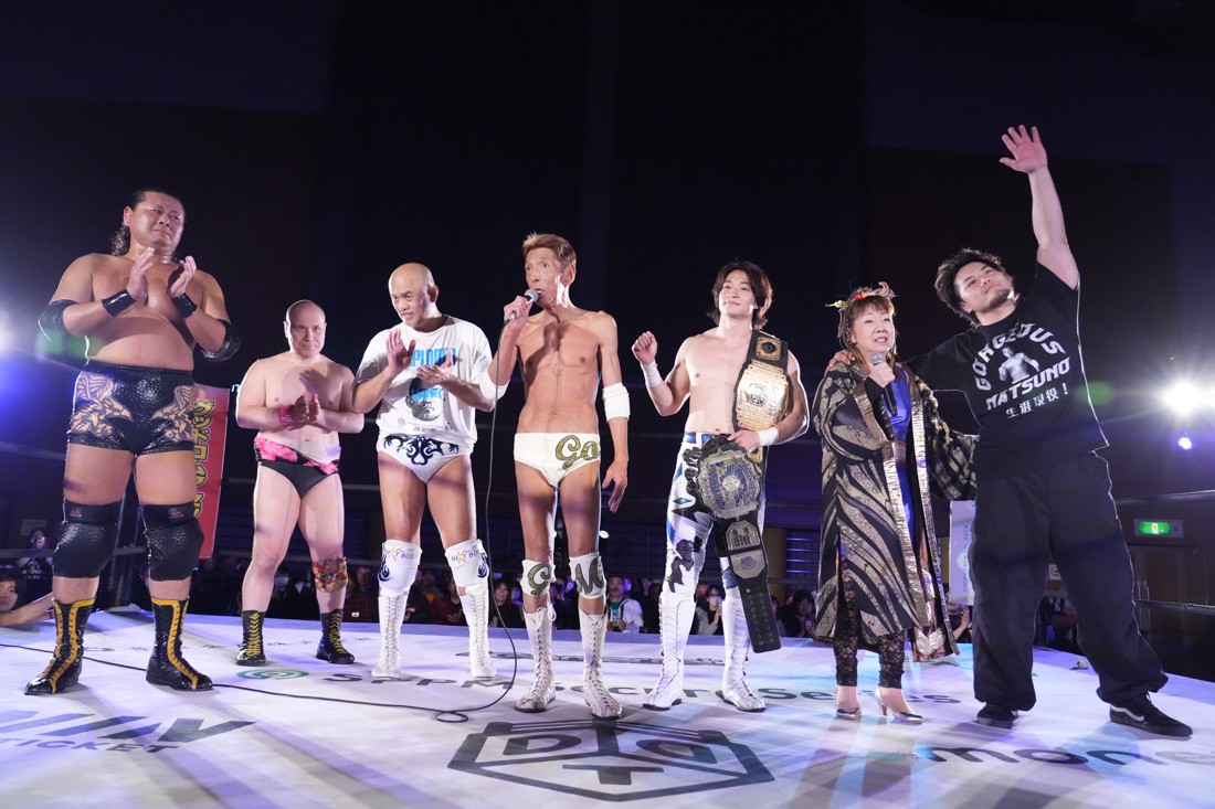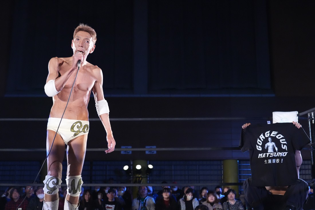 11月23日、福島・福島トヨタクラウンアリーナ(福島国体記念体育館)サブアリーナで「DDTプロレス福島大会『ゴージャスナイト』」が開催。今年で21年目、通算14回目となるゴージャス松野主催による『ゴージャスナイト』だが、メインイベントで盟友・大鷲透、宮城県大崎市出身のMAOとタッグを組んだ松野は、上野勇希&秋山準&アントーニオ本多と対戦。