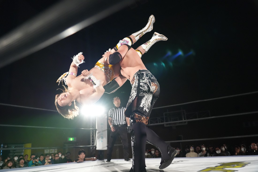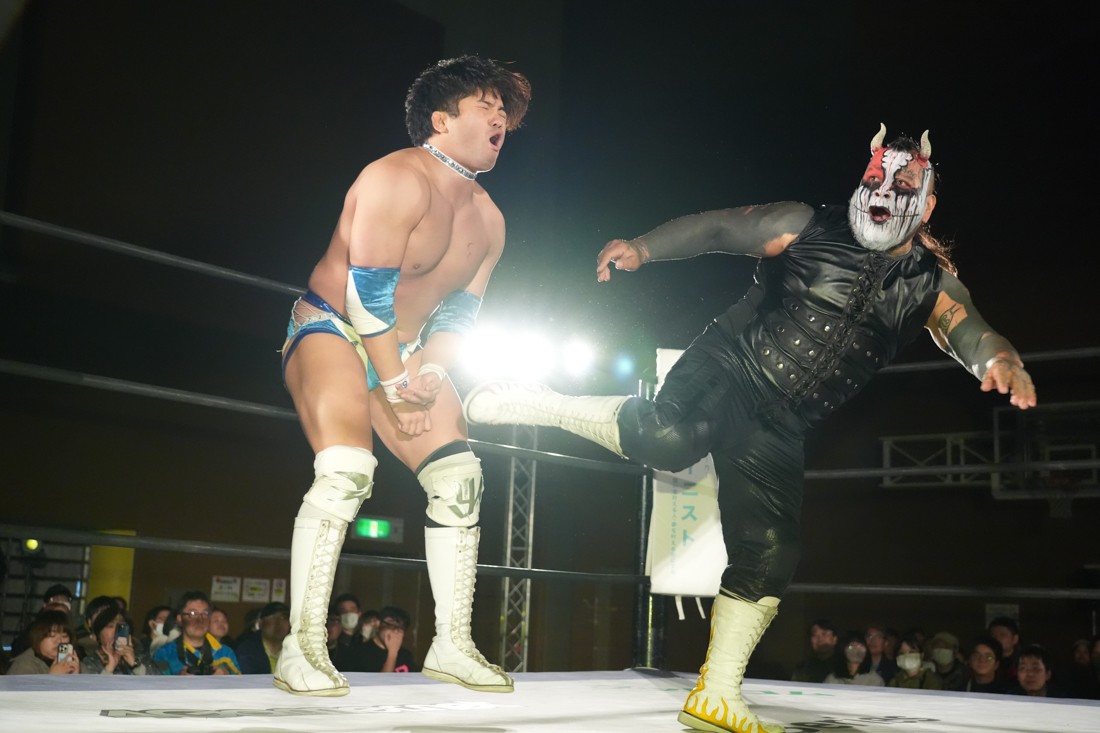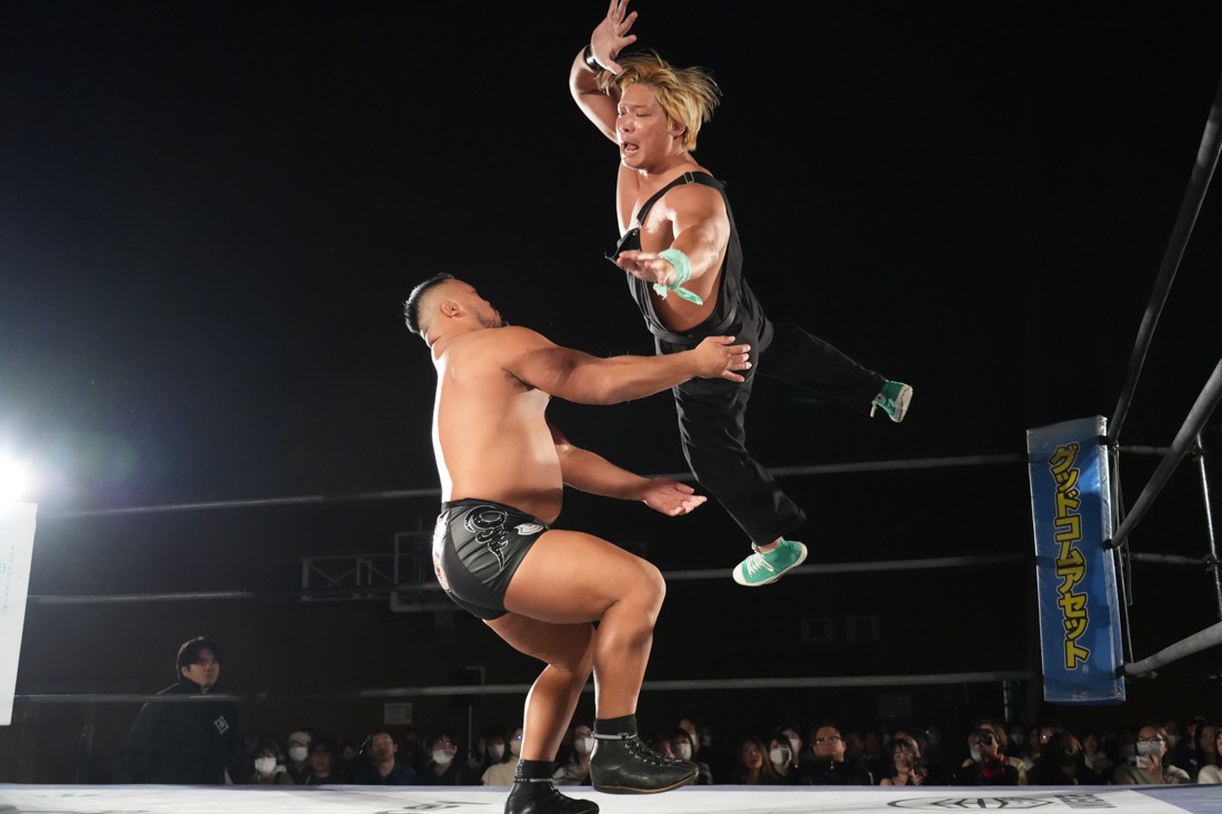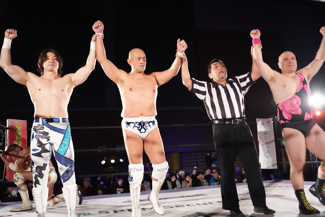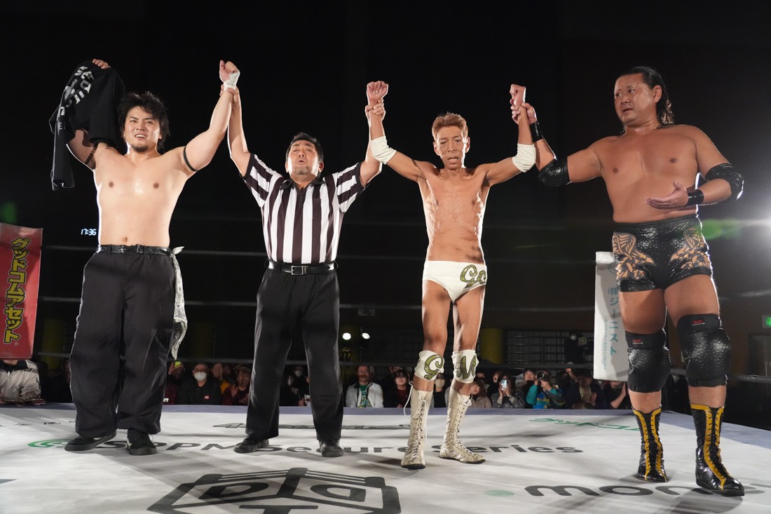 11月23日、福島・福島トヨタクラウンアリーナ(福島国体記念体育館)サブアリーナで「DDTプロレス福島大会『ゴージャスナイト』」が開催。今年で21年目、通算14回目となるゴージャス松野主催による『ゴージャスナイト』だが、メインイベントで盟友・大鷲透、宮城県大崎市出身のMAOとタッグを組んだ松野は、上野勇希&秋山準&アントーニオ本多と対戦。