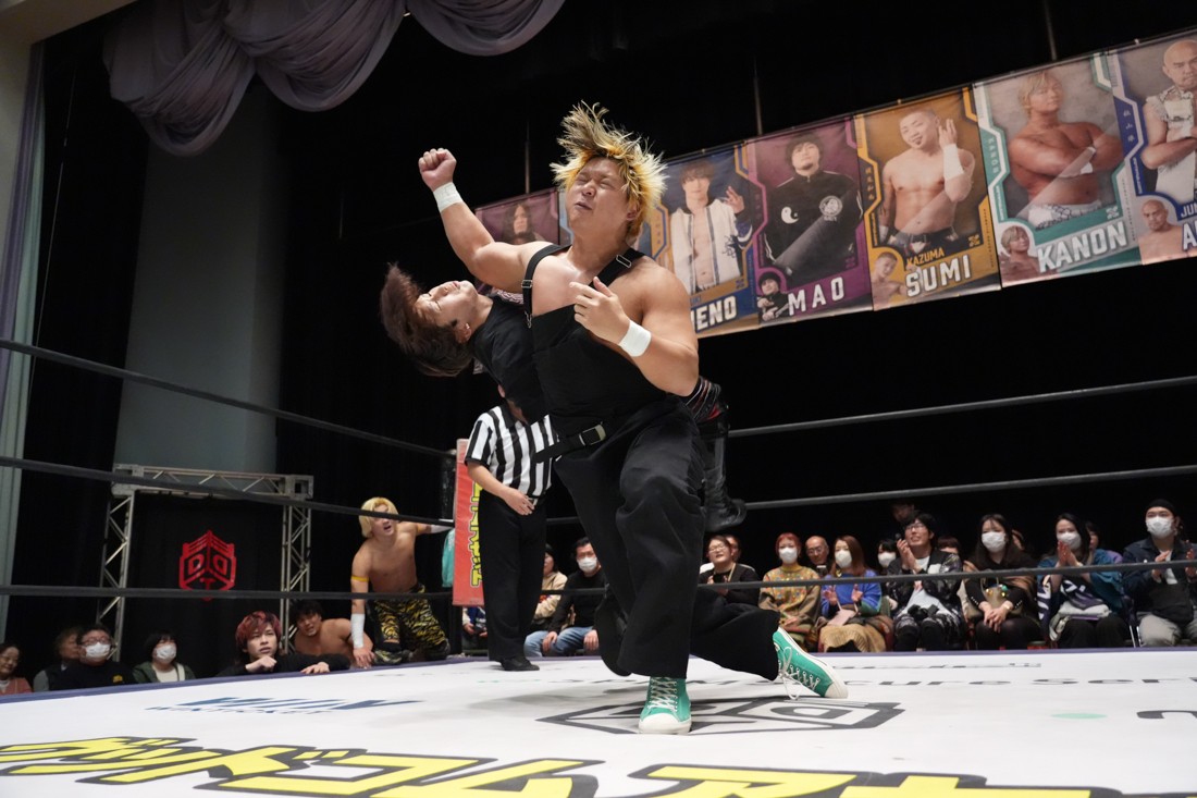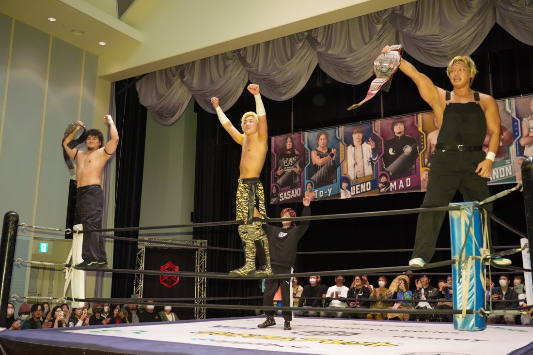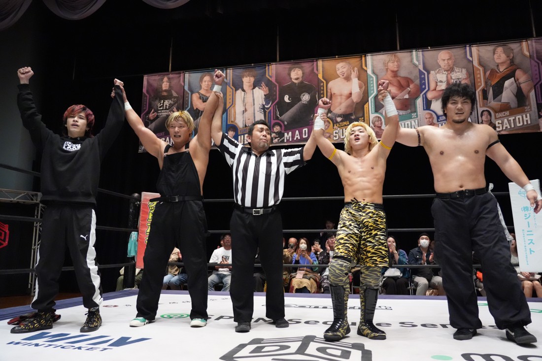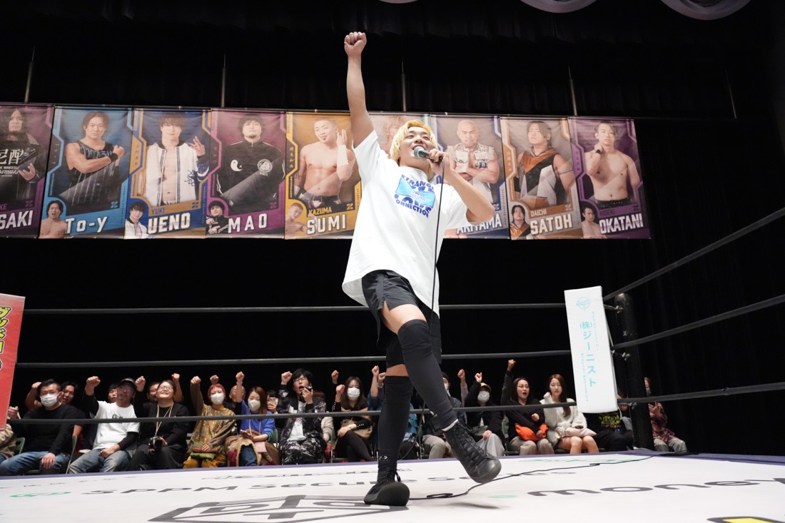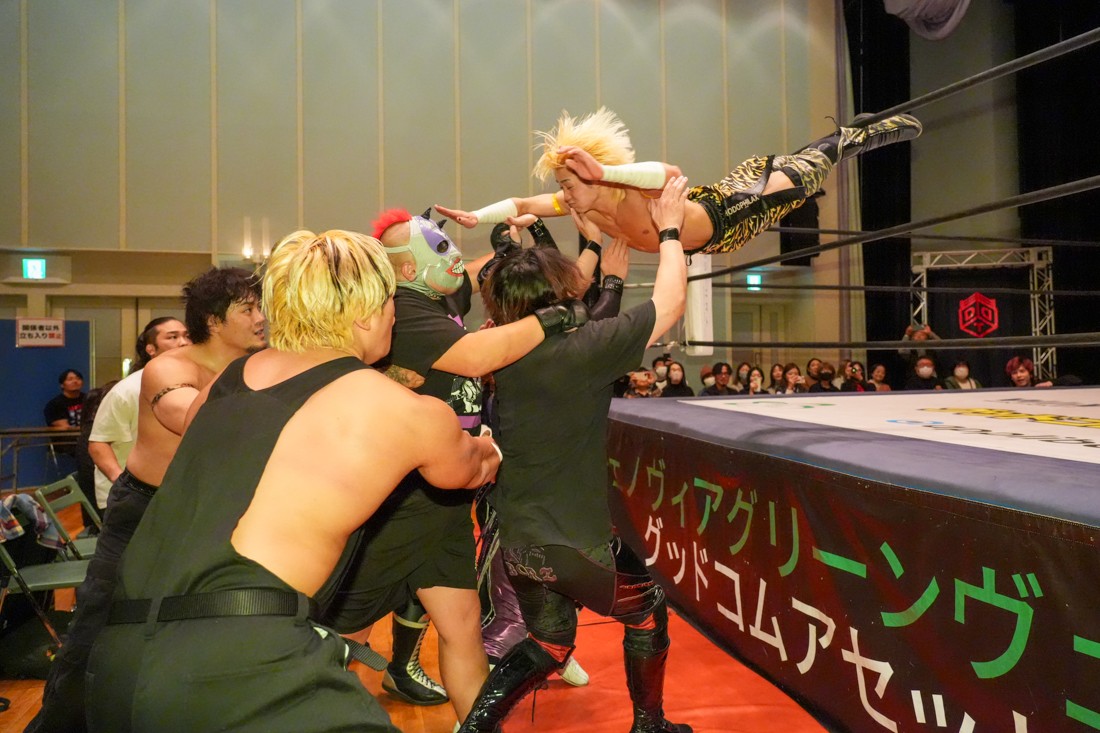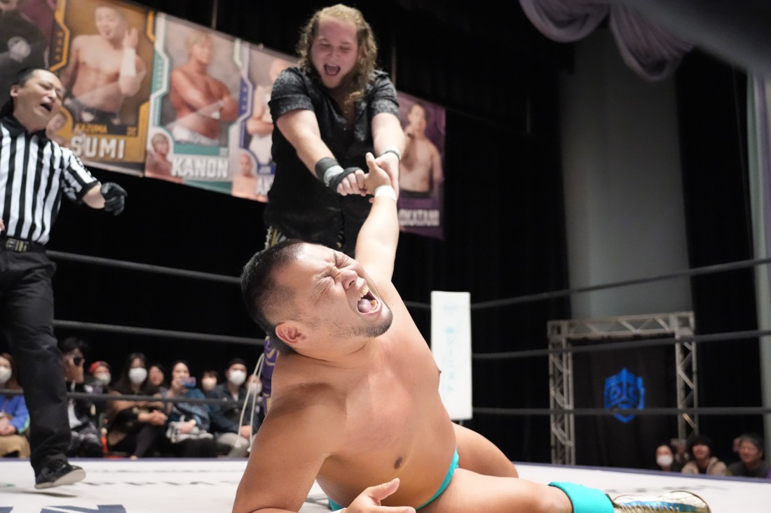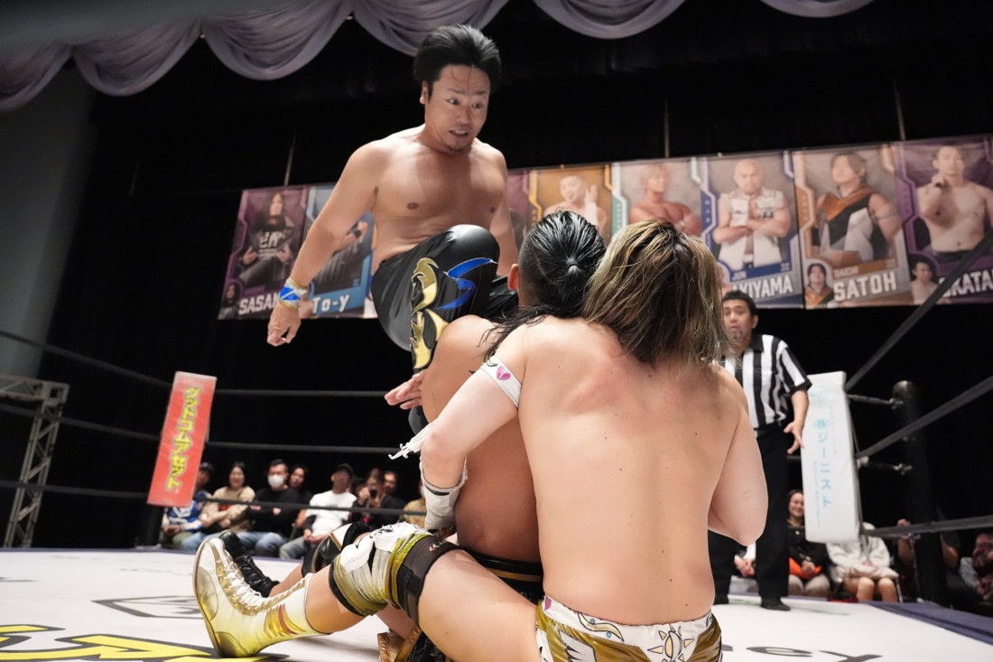11月24日、三重・三重総合文化センター・多目的ホールで「須見和馬地元凱旋!三重のために須見が翔ぶ!」が開催。メインイベントでは地元凱旋となった須見和馬がSTRANGE LOVE CONNECTIONのMAO&KANON with KIMIHIROと組んで、佐々木大輔&岡谷英樹&イルシオンのDAMNATION T.Aと対戦。