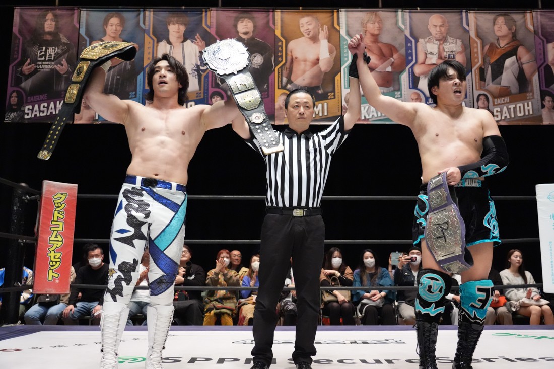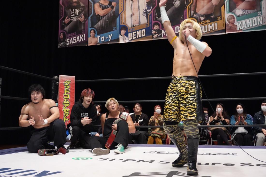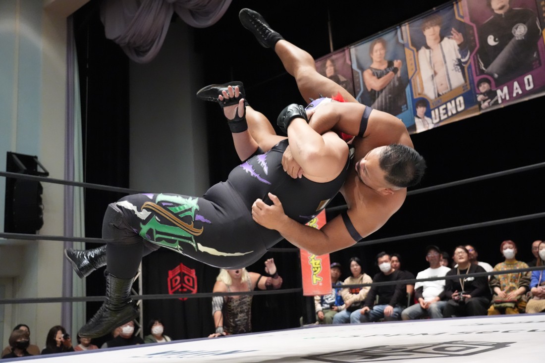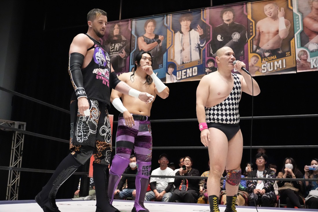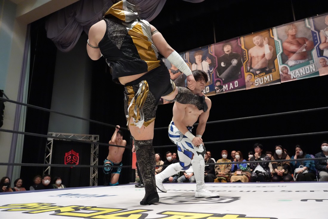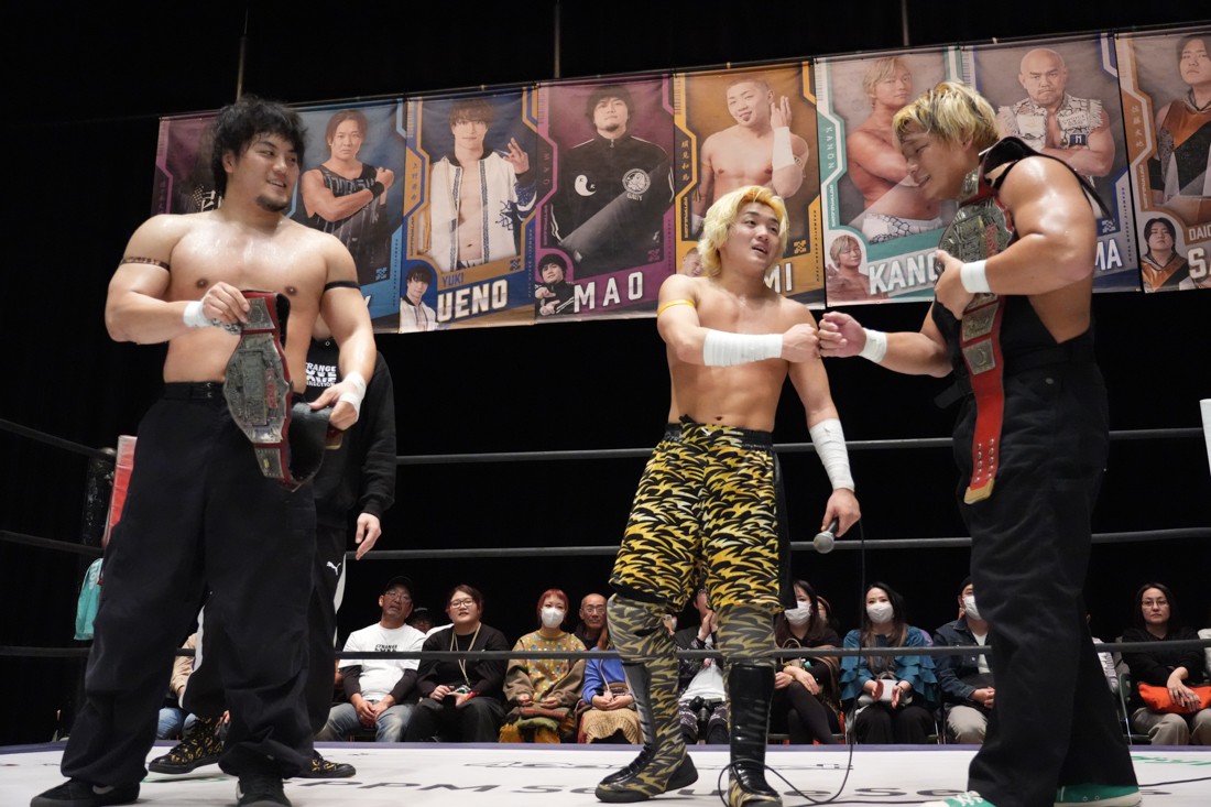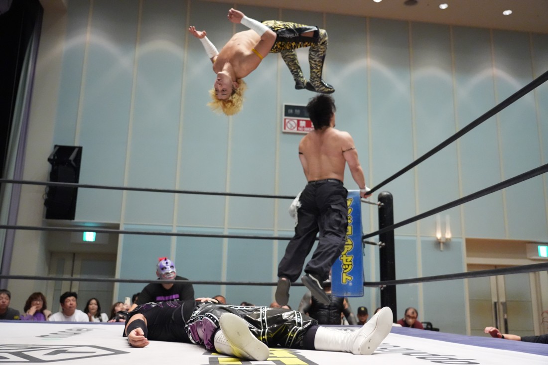 11月24日、三重・三重総合文化センター・多目的ホールで「須見和馬地元凱旋!三重のために須見が翔ぶ!」が開催。メインイベントでは地元凱旋となった須見和馬がSTRANGE LOVE CONNECTIONのMAO&KANON with KIMIHIROと組んで、佐々木大輔&岡谷英樹&イルシオンのDAMNATION T.Aと対戦。