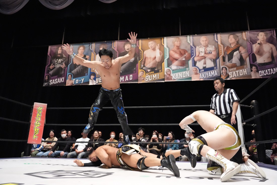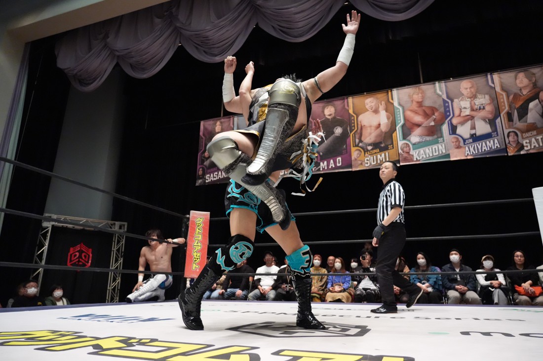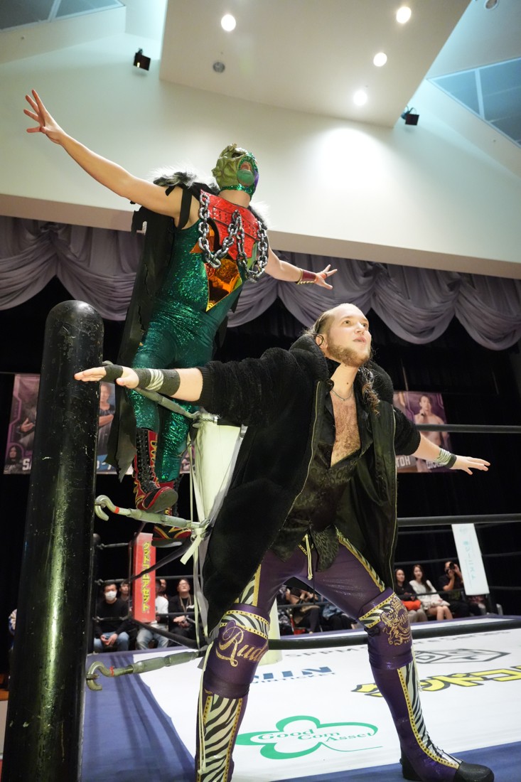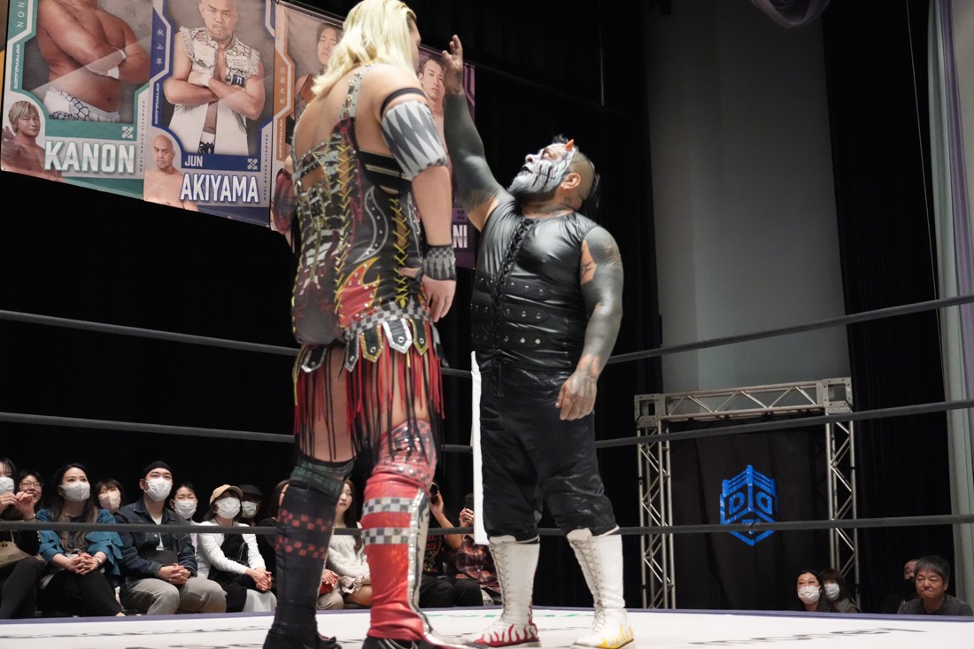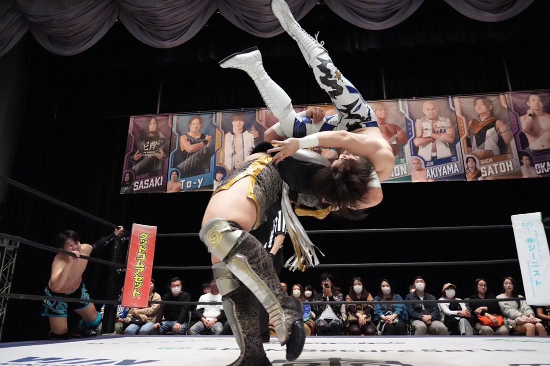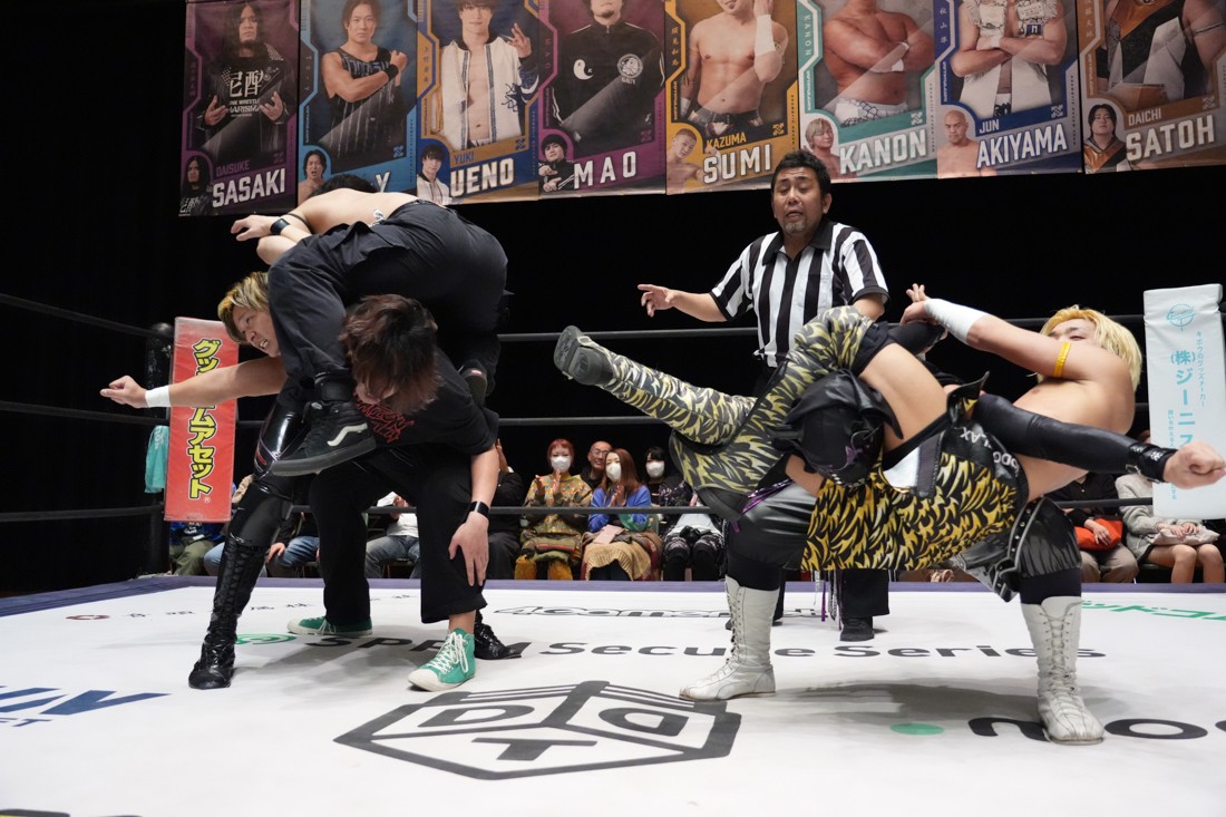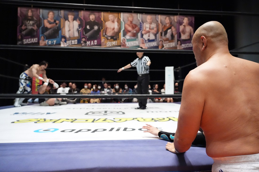 S.L.C.と佐々木&岡谷にとってはKO-Dタッグの前哨戦でもあるため、因縁深いKANONと岡谷はかなり激しくやり合う。初の地元凱旋にしてチケットも完売したことで須見は見るからに気合いが入っている様子で、MAOとの連係も次々と決めていく。