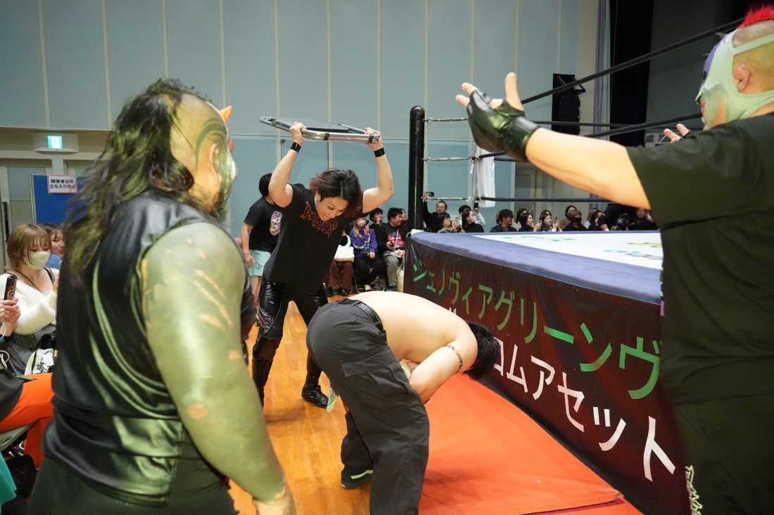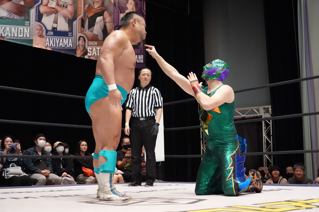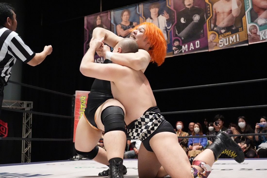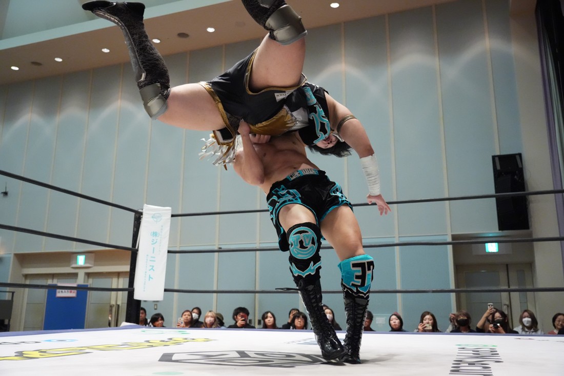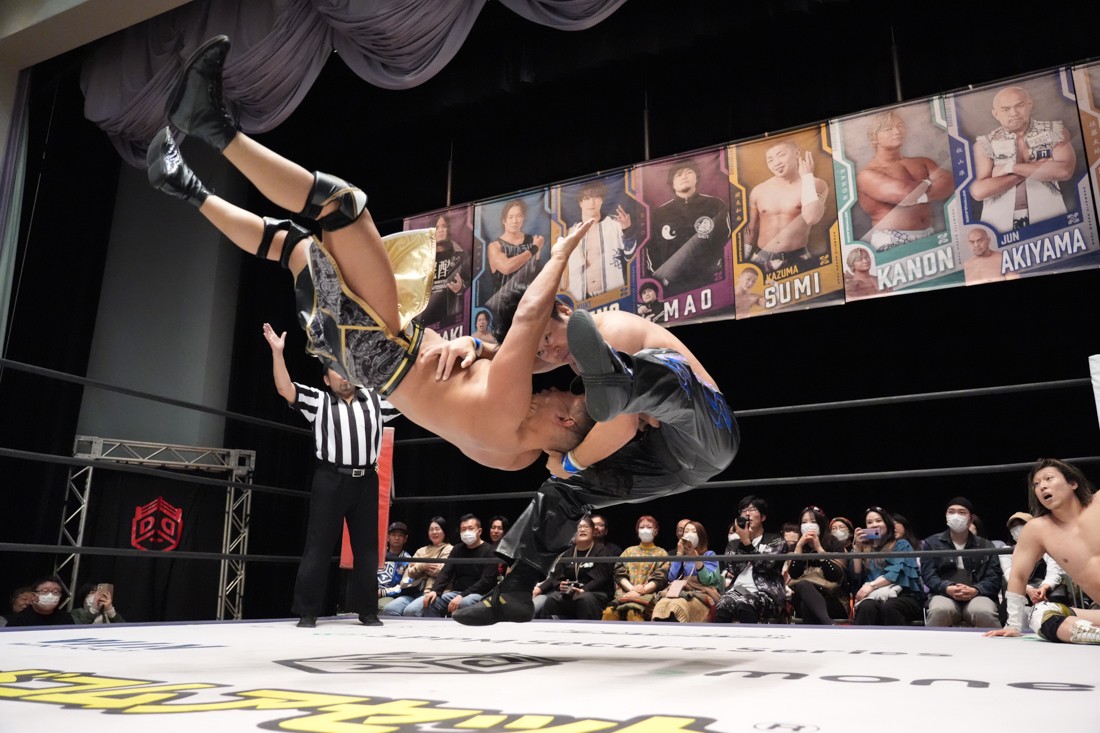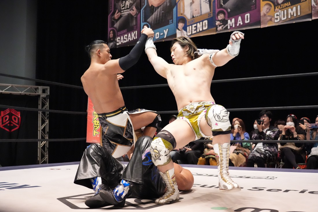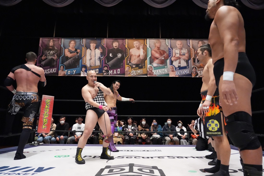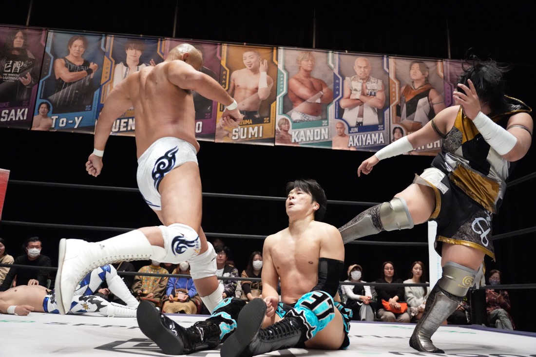 S.L.C.と佐々木&岡谷にとってはKO-Dタッグの前哨戦でもあるため、因縁深いKANONと岡谷はかなり激しくやり合う。初の地元凱旋にしてチケットも完売したことで須見は見るからに気合いが入っている様子で、MAOとの連係も次々と決めていく。