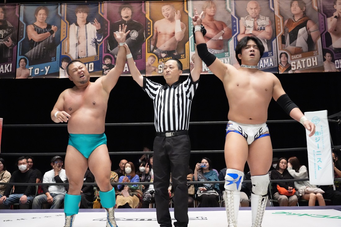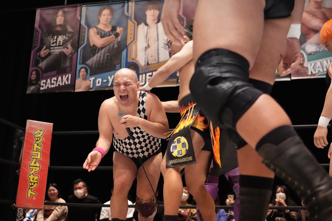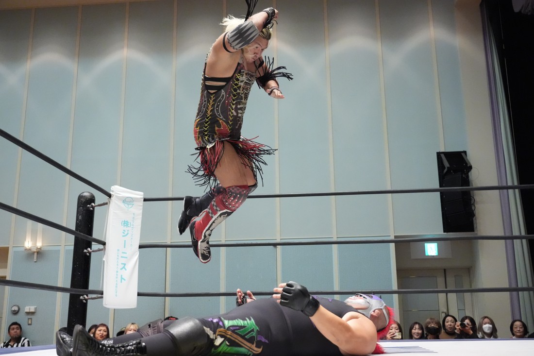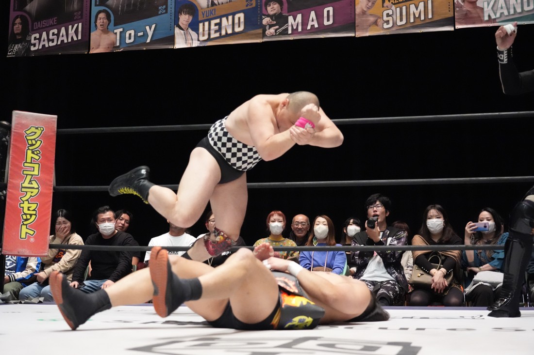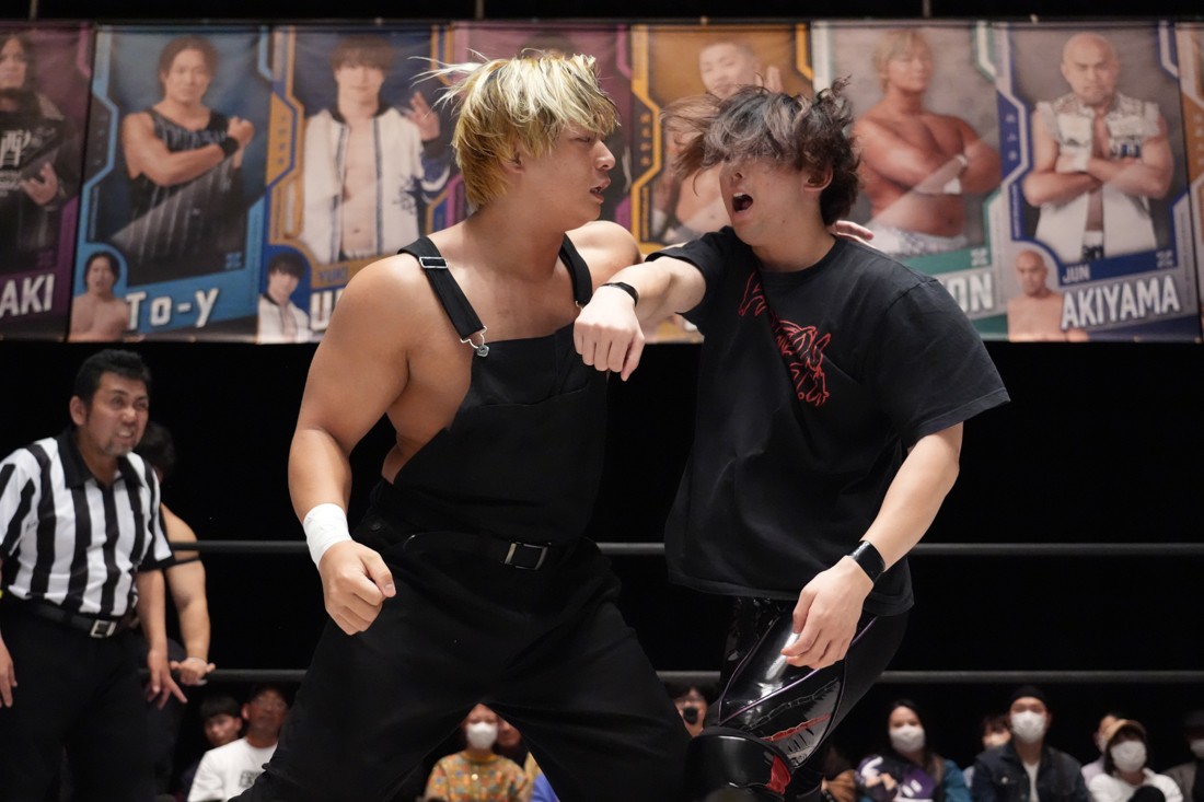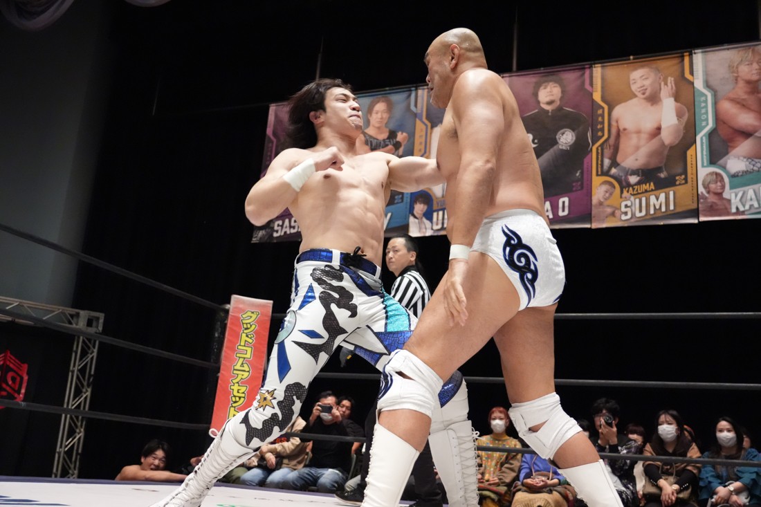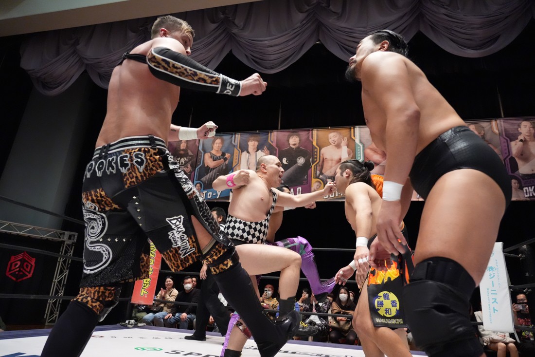 S.L.C.と佐々木&岡谷にとってはKO-Dタッグの前哨戦でもあるため、因縁深いKANONと岡谷はかなり激しくやり合う。初の地元凱旋にしてチケットも完売したことで須見は見るからに気合いが入っている様子で、MAOとの連係も次々と決めていく。