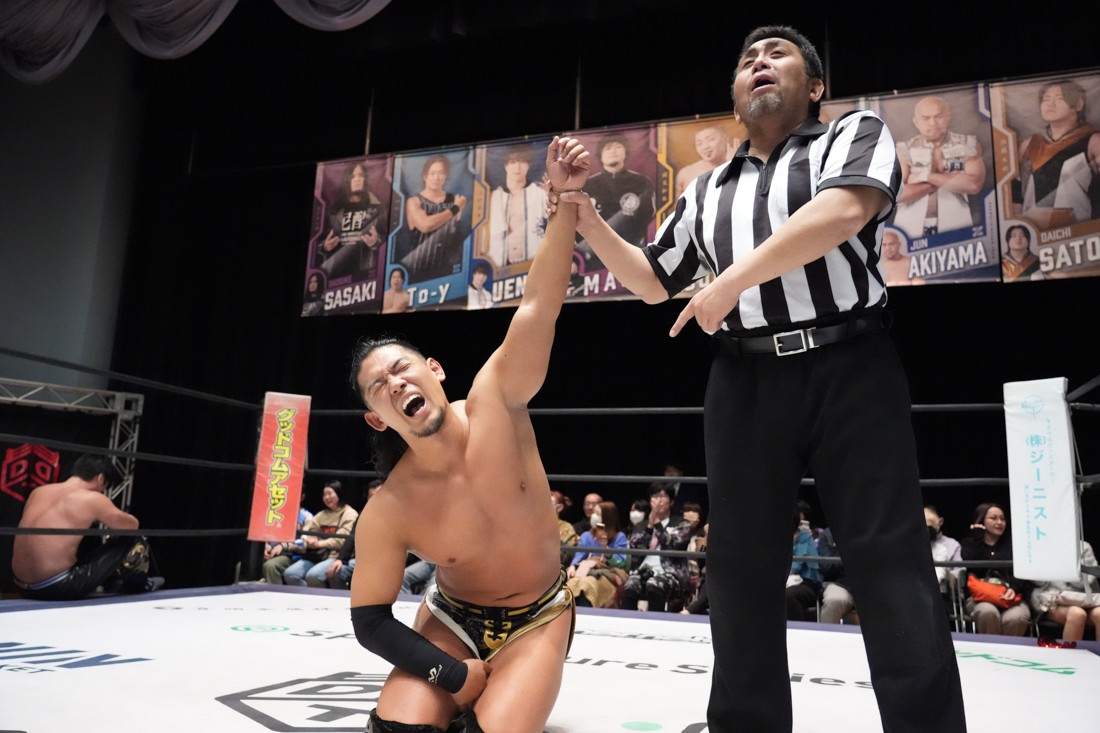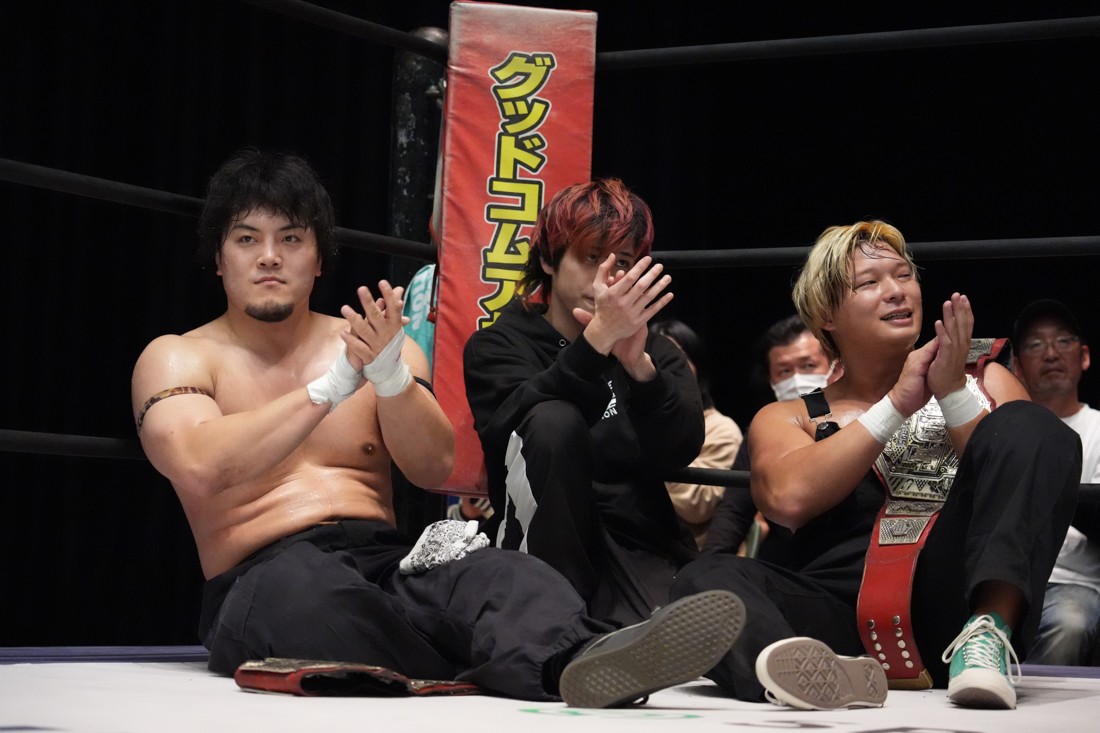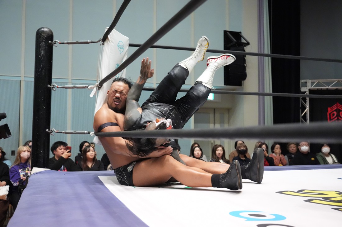 初の凱旋試合でS.L.C.と組んだ須見が、DAMNATION T.Aから勝利!「次、帰ってくるときはシングルのチャンピオンになって」と宣言!