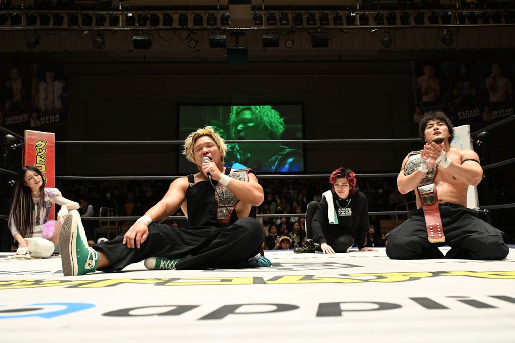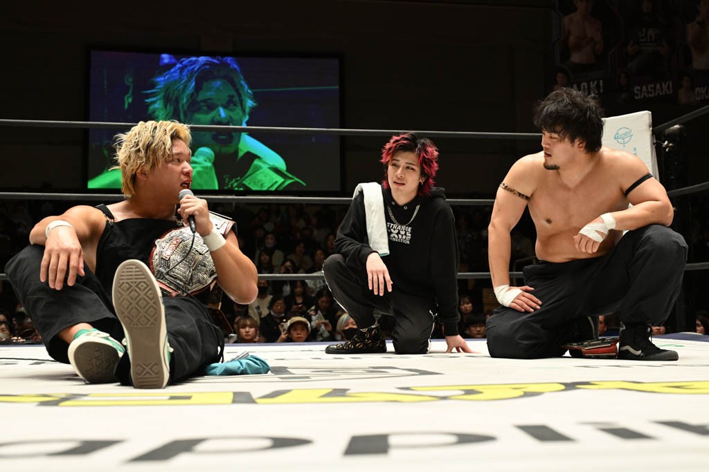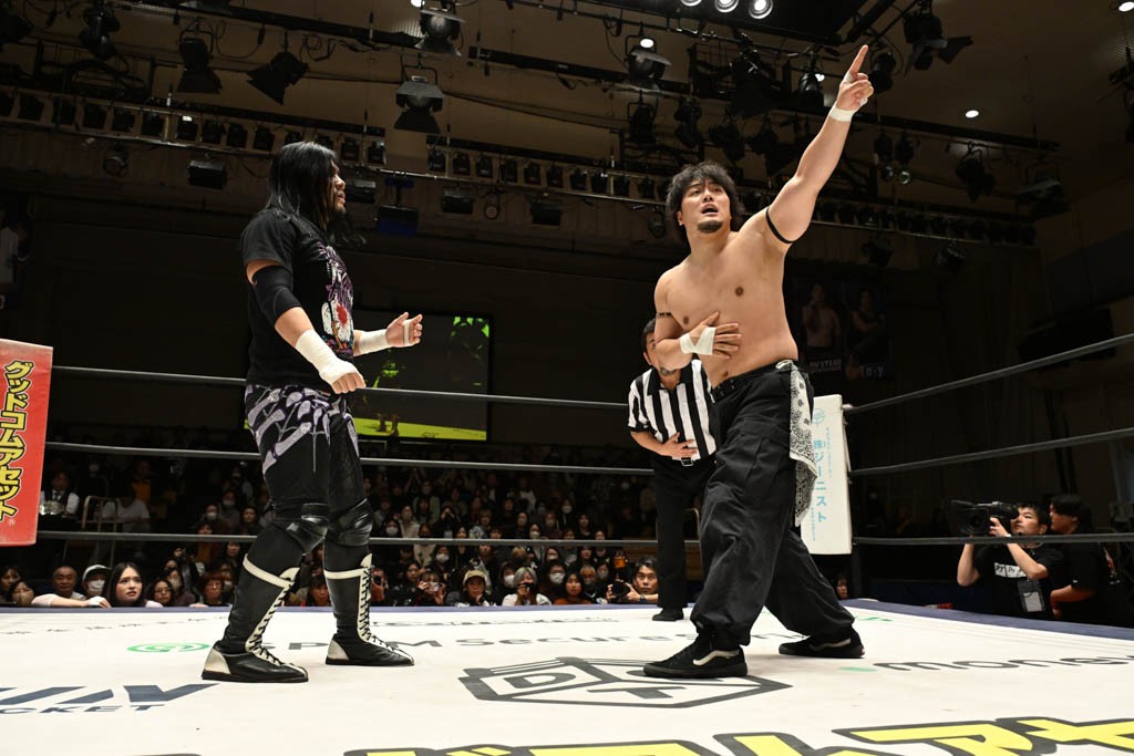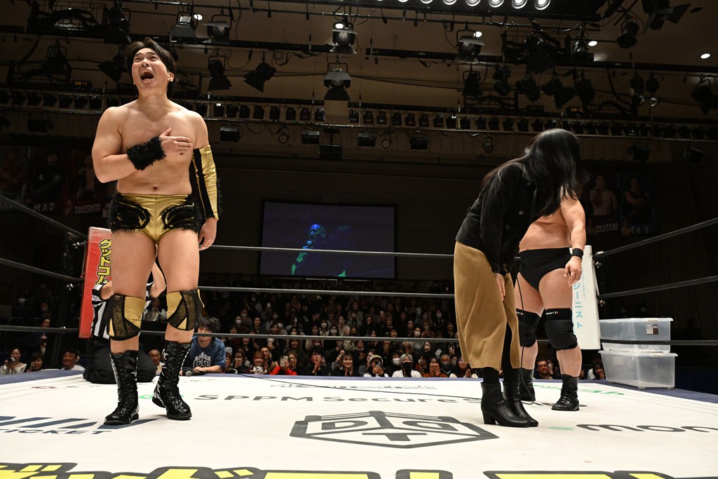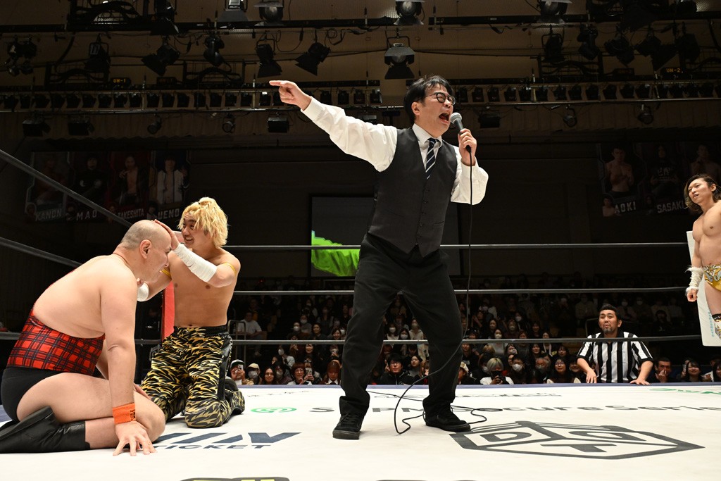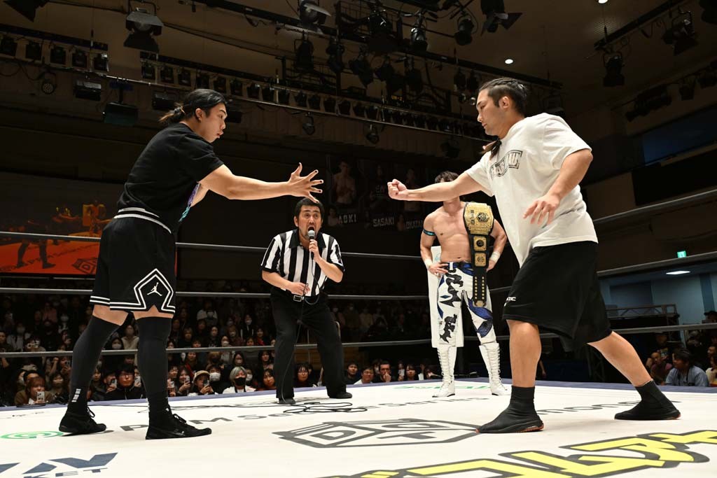 一方、ベルト獲りならなかった佐々木は「岡谷、負けてねぇ。ミスジャッジだ。あんな奴に負けるわけねぇ」と吐き捨てれば、岡谷は「すみません。竹刀捨てちゃって。あんなん使わなくてもいけると思って」と反省の弁。さらに佐々木は「これで終わりじゃねぇ。このタッグベルトをなんとしても手に入れて、あいつらをぶちのめして、破壊して解散させてやる! DDTも壊滅させて、解散させてやる」と息巻いた。