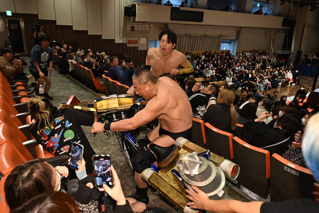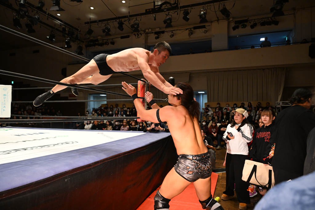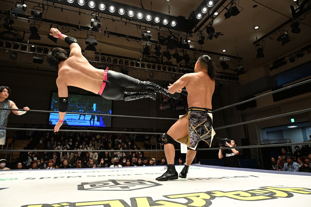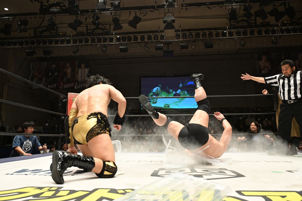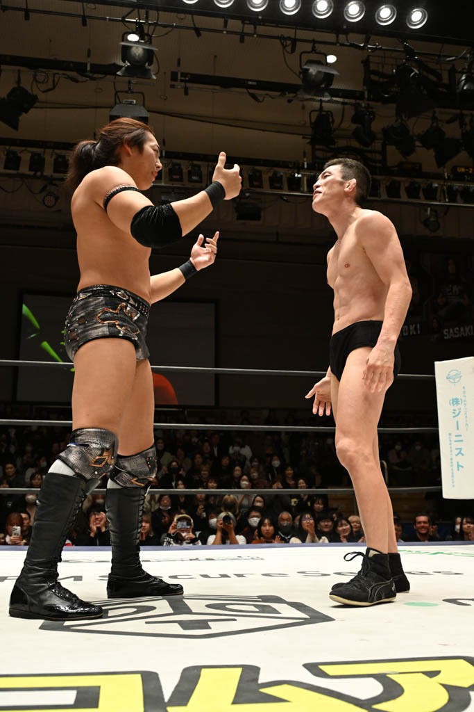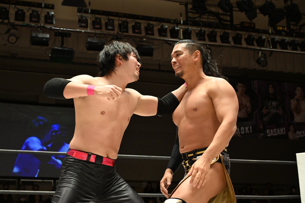 一方、ベルト獲りならなかった佐々木は「岡谷、負けてねぇ。ミスジャッジだ。あんな奴に負けるわけねぇ」と吐き捨てれば、岡谷は「すみません。竹刀捨てちゃって。あんなん使わなくてもいけると思って」と反省の弁。さらに佐々木は「これで終わりじゃねぇ。このタッグベルトをなんとしても手に入れて、あいつらをぶちのめして、破壊して解散させてやる! DDTも壊滅させて、解散させてやる」と息巻いた。