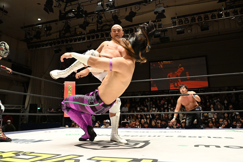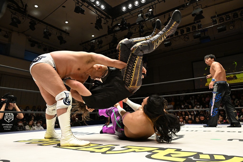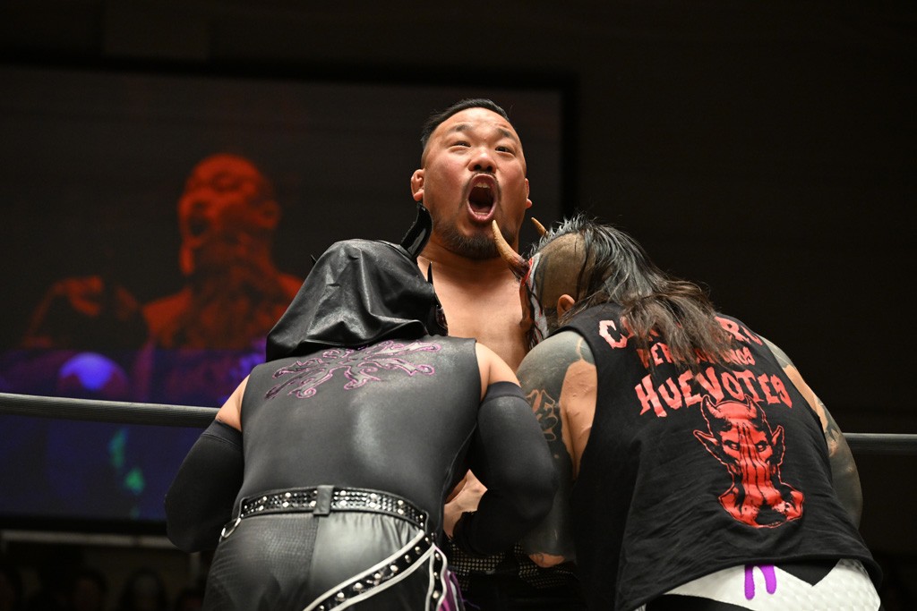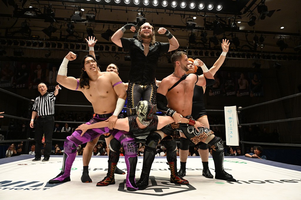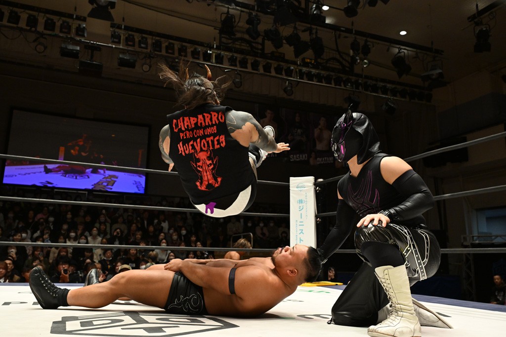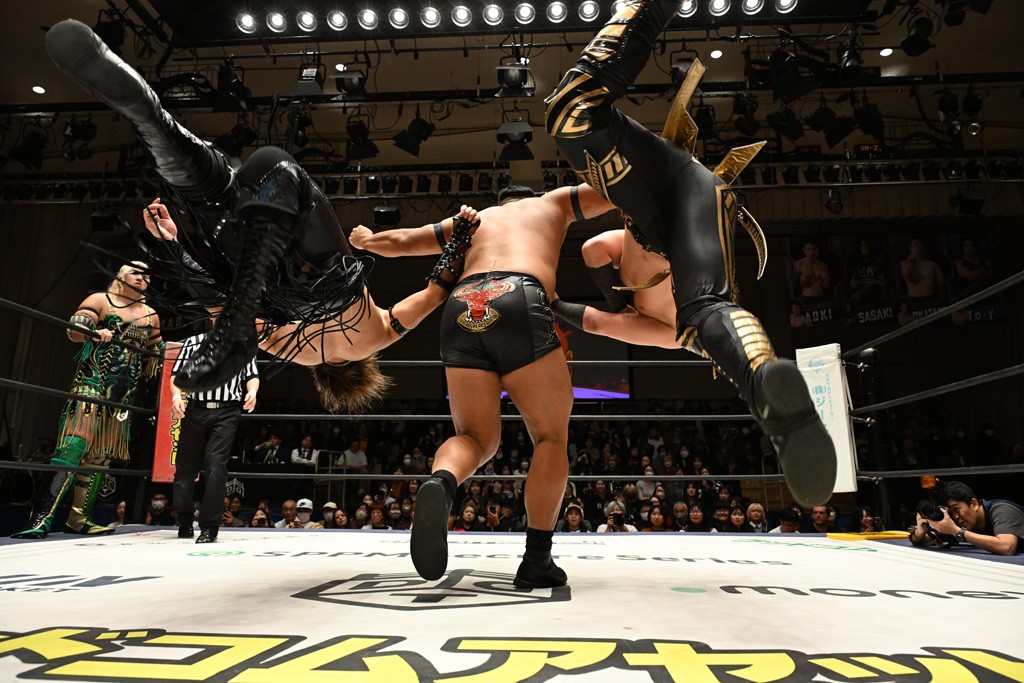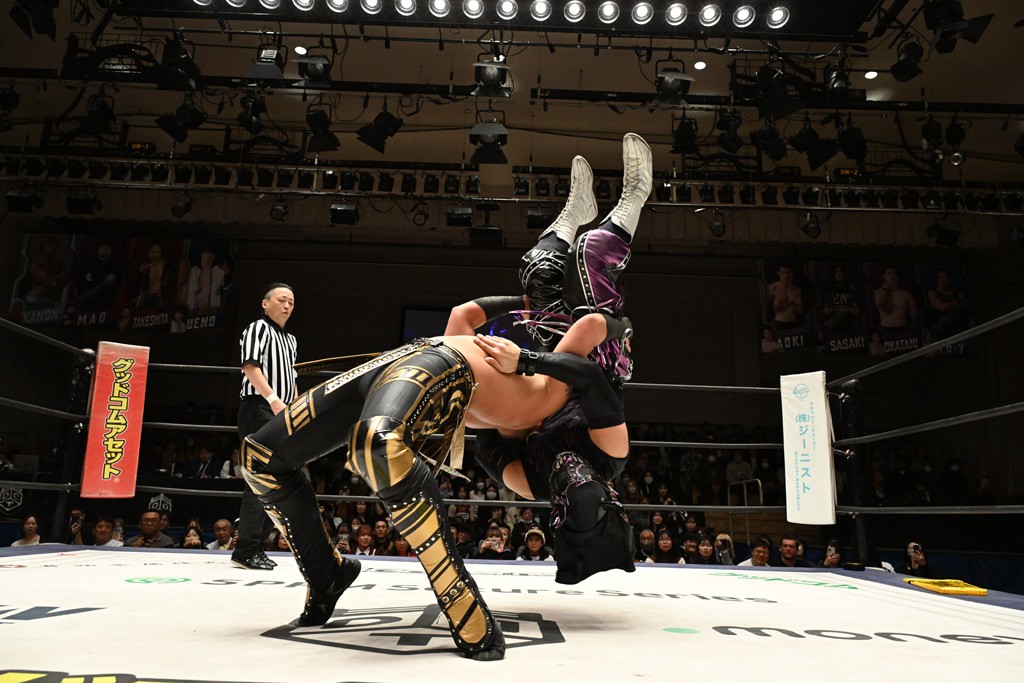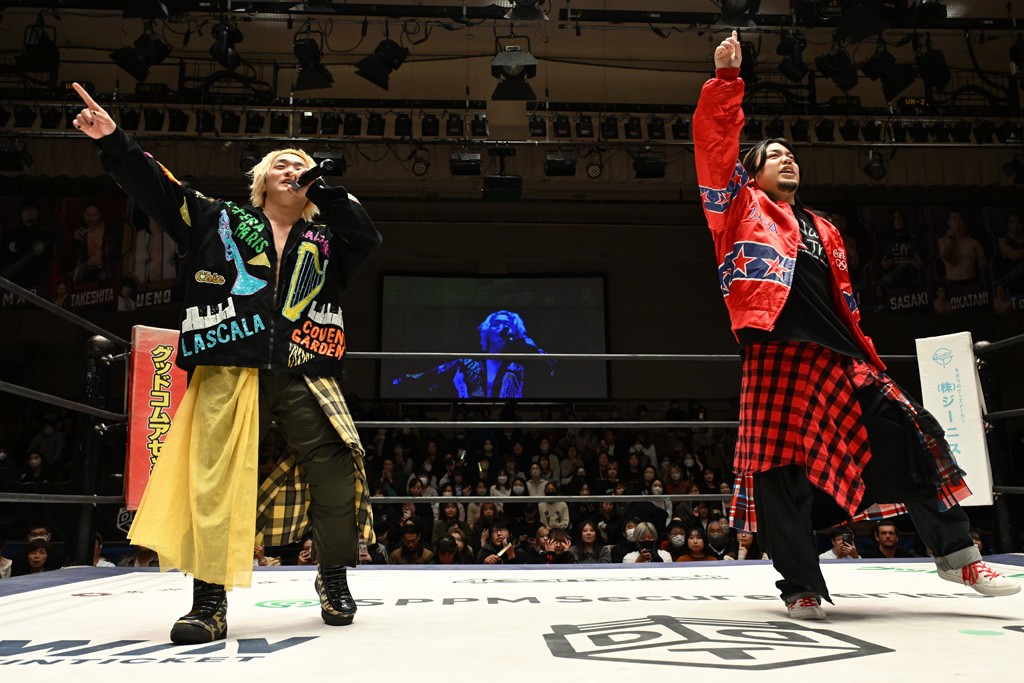 STRANGE LOVE CONNECTION(S.L.C.)のMAO&KANONが遺恨深きDAMNATION T.Aの佐々木大輔&岡谷英樹を下し、KO-Dタッグ王座の初防衛に成功。F-SWAGの政岡純&ガイア・ホックスが12・21後楽園で挑戦することが決まった。