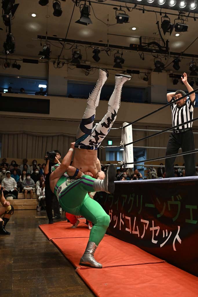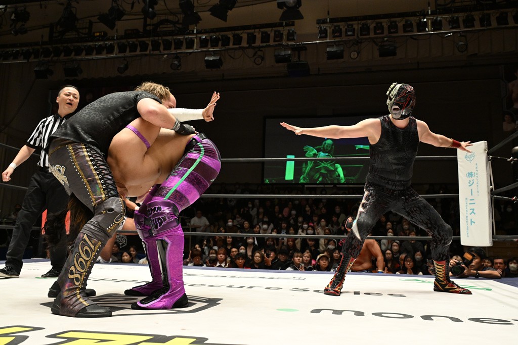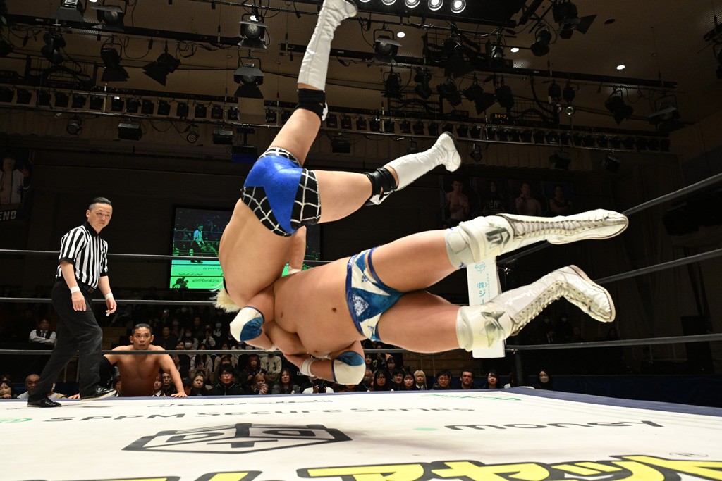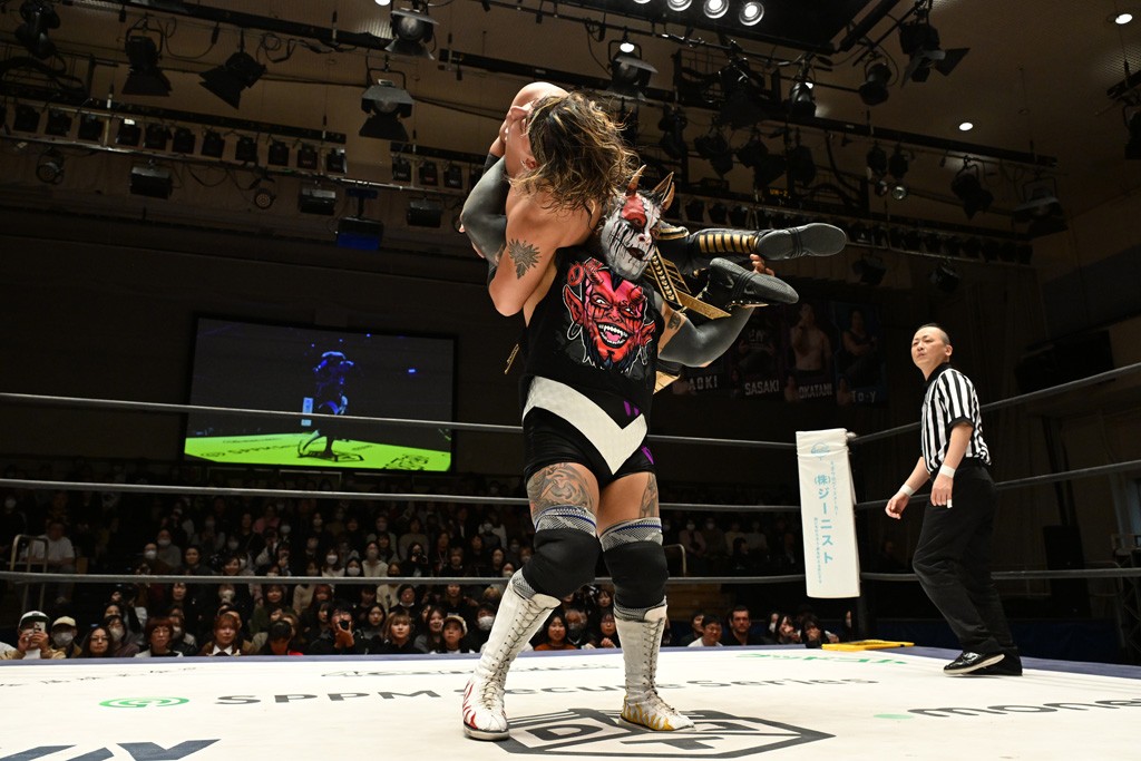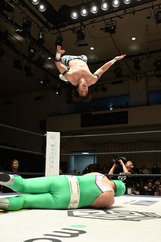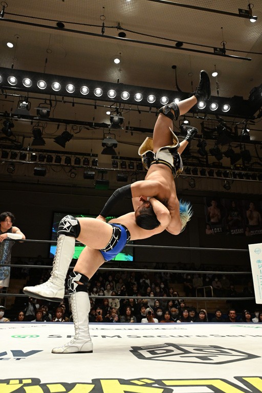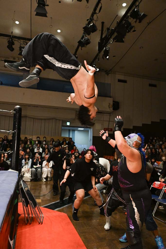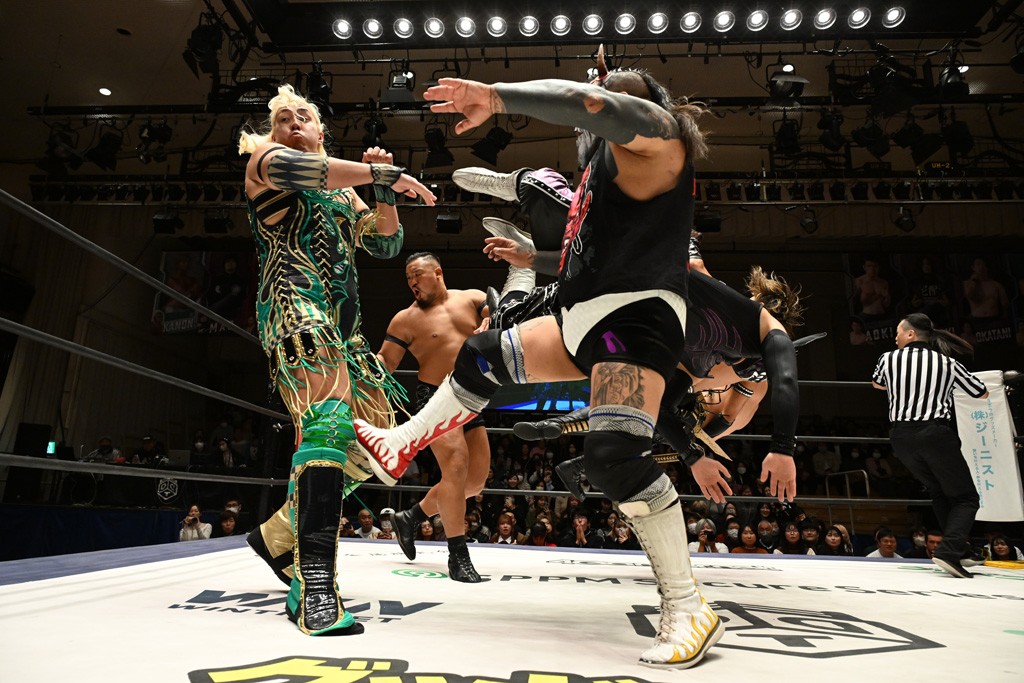 STRANGE LOVE CONNECTION(S.L.C.)のMAO&KANONが遺恨深きDAMNATION T.Aの佐々木大輔&岡谷英樹を下し、KO-Dタッグ王座の初防衛に成功。F-SWAGの政岡純&ガイア・ホックスが12・21後楽園で挑戦することが決まった。