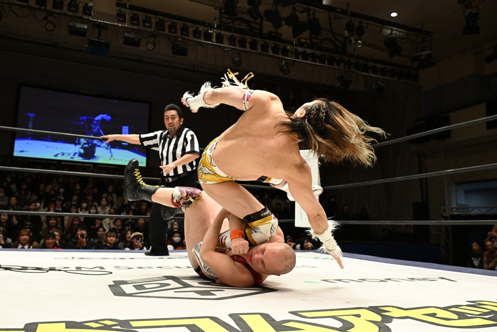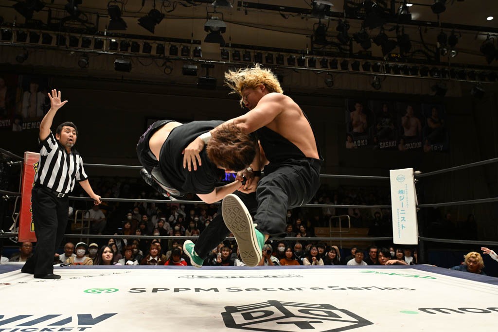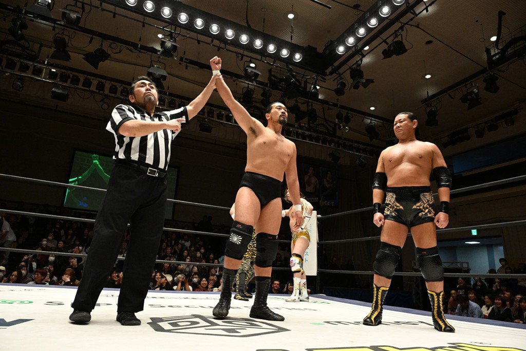 11月30日、東京・後楽園ホールで「BE AMBITIOUS ~秋闘乱舞~」が開催。KO-D無差別級&DDT UNIVERSAL両王者の上野勇希がスーパー・ササダンゴ・マシンの挑戦を退け2冠王座を死守し、KO-D無差別級は3度目、UNIVERSALは初防衛に成功した。試合後にDGS(D GENERATIONS)世代で行なわれたじゃんけんトーナメントを制した正田壮史が12・21後楽園でKO-D無差別級王座に初挑戦することが決定した。