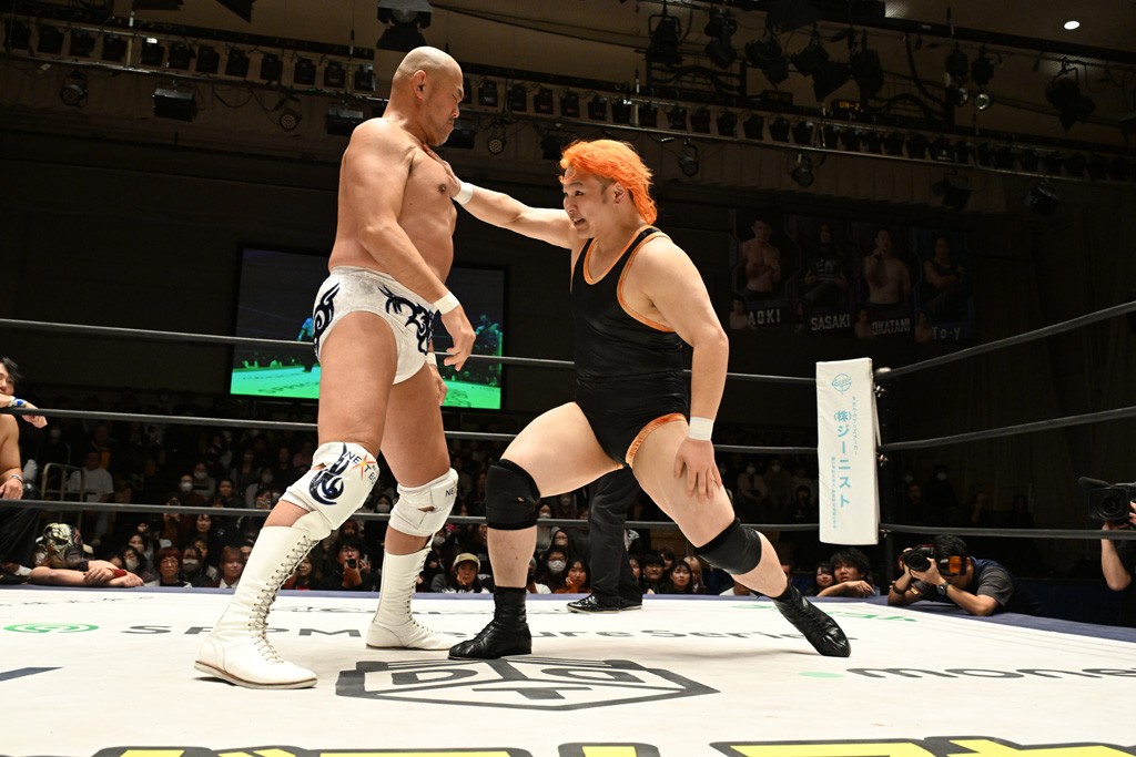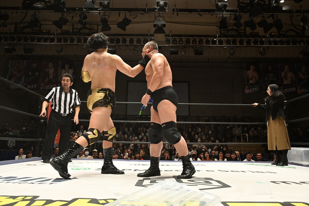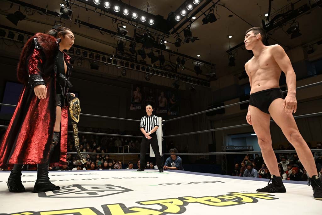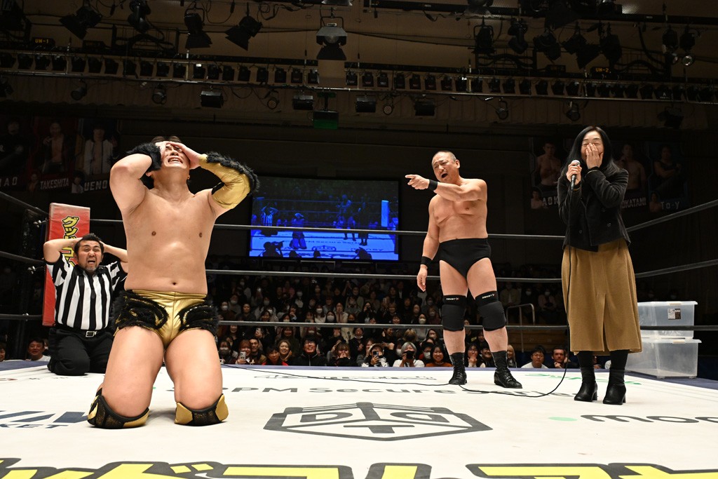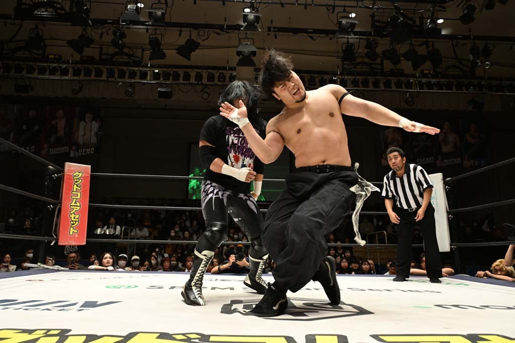 同年4月、TAKESHITAはDDTに籍を残したまま、米国に旅立ち、AEWマットで実績を残した。新日本プロレスとも契約し、今夏には「G1 CLIMAX」を初制覇し、10月にはIWGP世界ヘビー級王座を戴冠。11・3両国国技館で王者としてDDT凱旋を果たし、11・6新宿にも参戦。11・8福岡、11・9熊本の地方巡業にも参加。いったん米国に戻った後、青木戦のために帰国した。