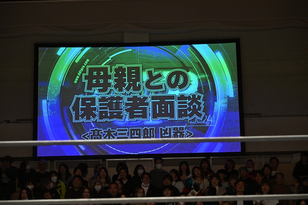 まずはエルボーの応酬、To-yがドロップキックを叩き込めば、髙木はテキサスクローズラインを見舞った。最初のウエポンは「ノーギャラレスラー」で、6人の無報酬レスラーがポーカーで負けた高木を攻め込む。2番目のウエポンは「髙木のアタッシェケース」で、これもポーカーで勝ったTo-yとノーギャラレスラーたちが高木を攻めた。髙木は自身のアタッシェケースを持って南側客席に逃走。3番目のウエポンは「ドラマティックドリーム号」でポーカーは髙木が勝利し、ノーギャラレスラーをひいた。4番目のウエポンは「To-yの実家のママチャリ」でTo-yが使用権利を得たが、髙木のドラマティックドリーム号と正面衝突で相打ち。5番目のウエポンは「To-y母親との保護者面談」で、客席で観戦していた母・美和さんがリングイン。ポーカーで勝った髙木は「To-y君はギャンブル依存症で僕の全財産を巻き上げたんですよ!」と泣きを入れ、「ギャンブル依存症から更生させたいんで、お母さんからも一言お願いします」とマイクを渡した。美和さんは「ギャンブルばかりで、カードの分割地獄になっております。困ってるんで、髙木さん、よろしくお願いします」と懇願。すると、髙木はプラスチックケースでTo-yの頭を殴打。これにブチ切れた美和さんは「何するんですか!」と叫んで高木に張り手を見舞った。間髪入れず、To-yは張り手から不思議の国の小嶋~コジマワンダーランド~でプラケースに投げつけて3カウントを奪った。