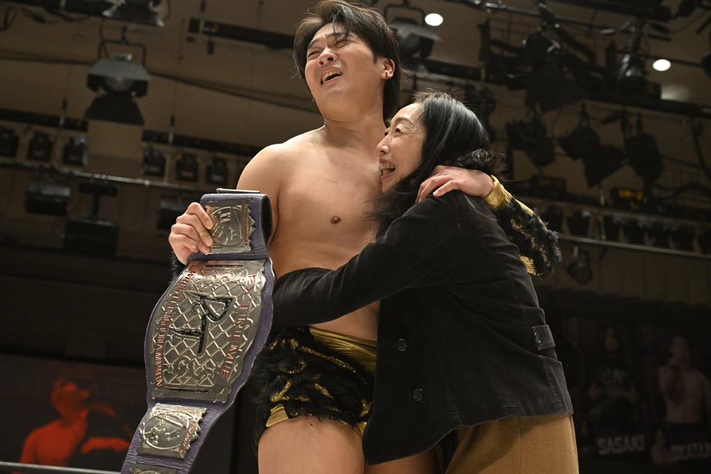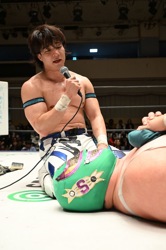 善戦健闘も王座戴冠ならなったササダンゴは「タイトルマッチが決まってから、この1ヵ月、ベルトの重さとか団体のチャンピオンとか……。業界の次のアイコン、新日本だけじゃなくて、どこにもチャンスあると思ってるから。勝った以上、上野は上野勇希として、自分が目指すDDTになればいいし、自分たちだって一緒に頑張っていくだけ。東京ドーム、僕はやりたいと思ってます。DDT、再来年30周年ですから。いいタイミングじゃないですか。本当に実現できるよう、やるべきことがいっぱい出てきました。このまま僕も頑張っていきたいと思います」と語った。