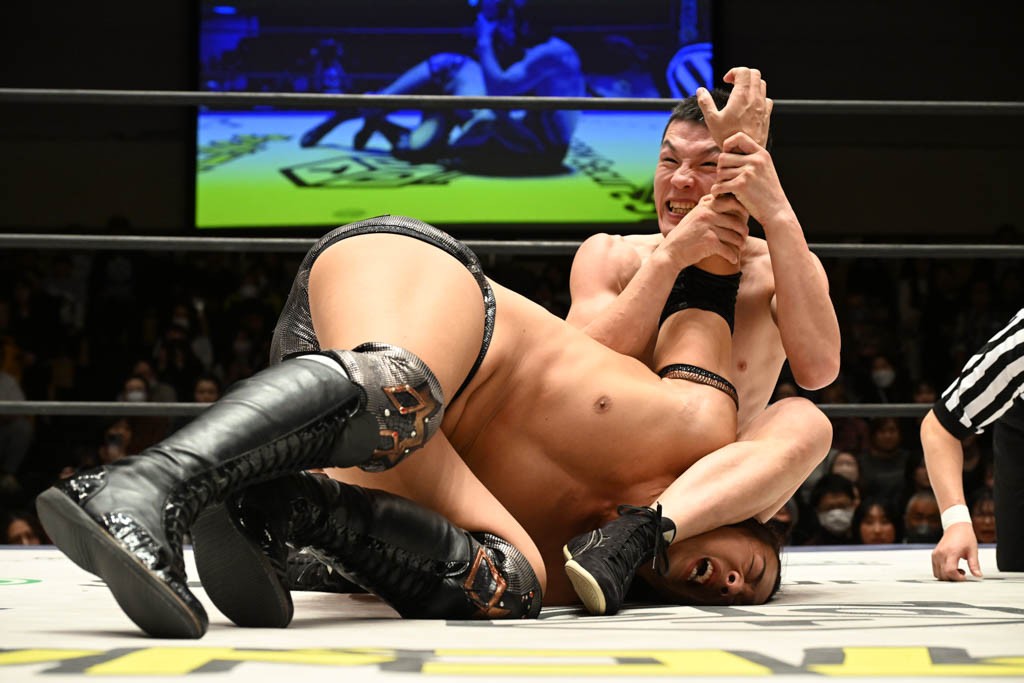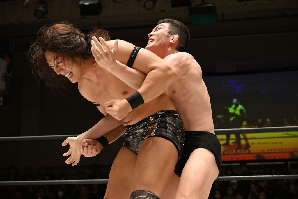 IWGP世界ヘビー級王者のKONOSUKE TAKESHITAが“バカサバイバー”青木真也との約4年ぶりの一騎打ちを制した。