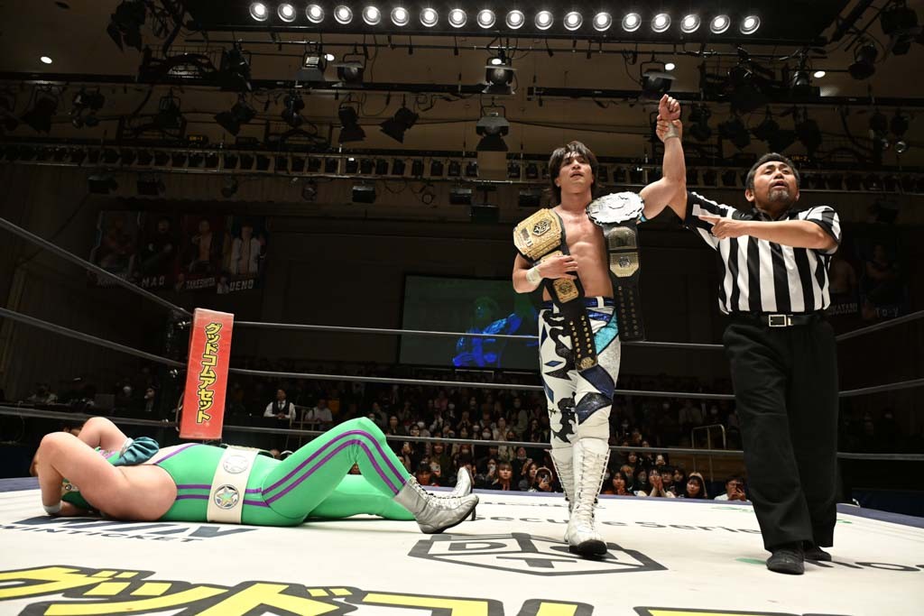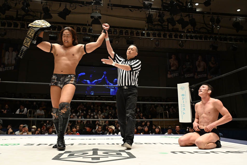 上野勇希がスーパー・ササダンゴ・マシンを退け、2冠王座を死守! まさかの“じゃんけんトーナメント”制した正田壮史が12・21後楽園でKO-D無差別級王座に挑戦