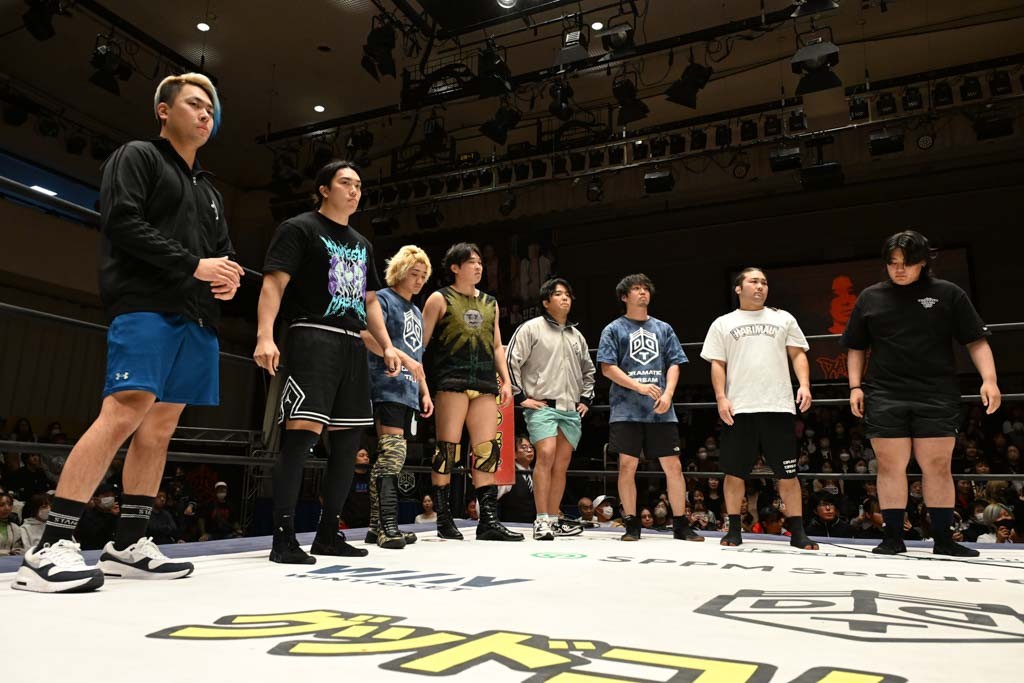 ここで、今林久弥GMがリングに上がり、12・21後楽園での次期挑戦者は上野に一任すると発言。上野は「次の防衛戦はDDTの一番のベルト、一番歴史が長いKO-D無差別級をかけてやります。やりたい奴らがいまして、それを今から決めたいと思います。D GENERATIONSの皆さま、リングに来てください。イルシオンと岡谷(英樹)も来てくれや」とDGSメンバーを招集。リングにはTo-y、高鹿佑也、石田有輝、正田、須見和馬、瑠希也、佐藤大地、葛西陽向、岡谷、イルシオンの10人が集まった。