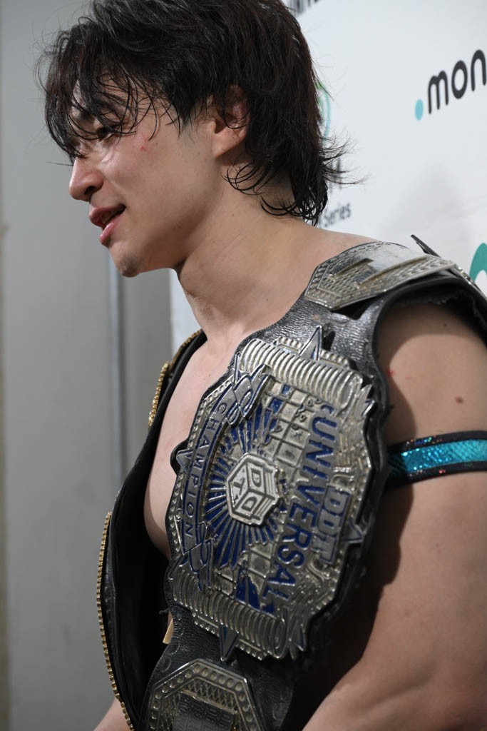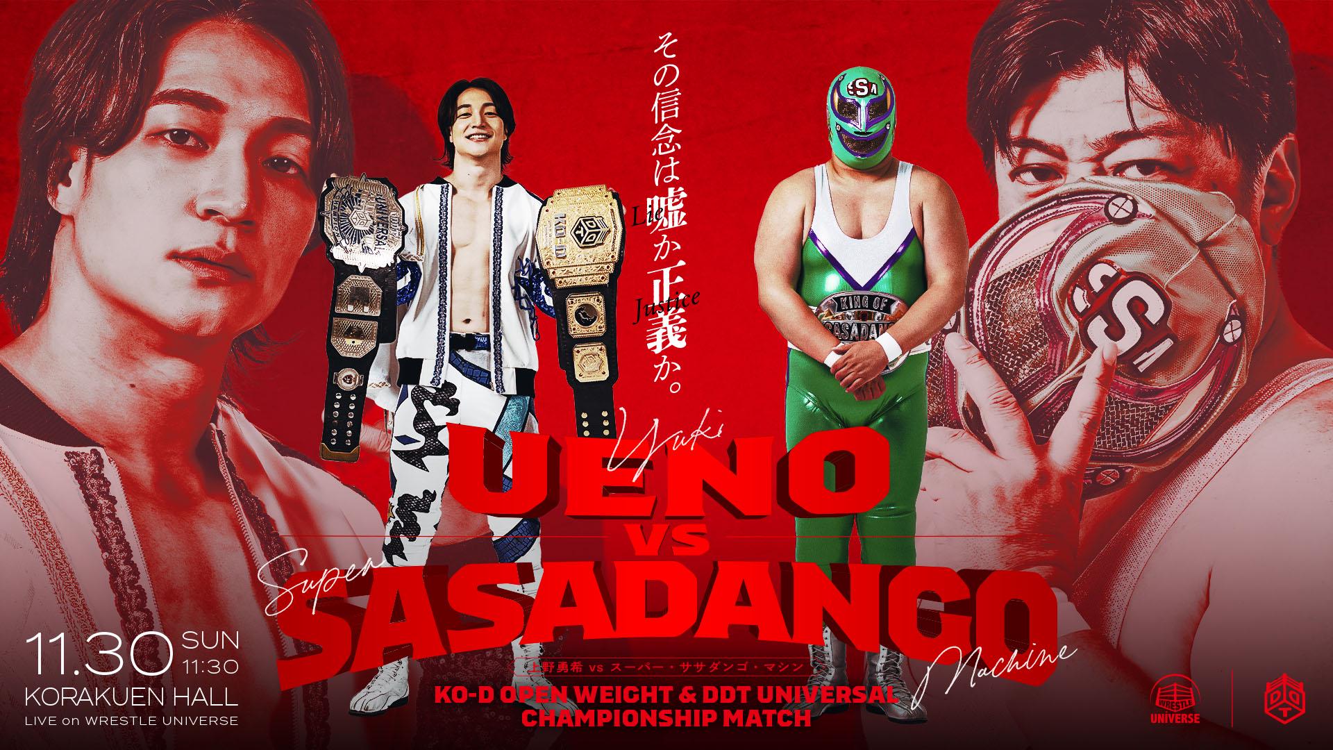 バックステージで上野は「僕たちは東京ドームに行きます。これは会社からこういう風に煽ってくれと言われてるわけじゃなく。たくさんの人が来てくれた両国で、この2本のベルト獲れたら、みんなと夢を見ていきたいと思って叫んだ夢にササダンゴさんが出て来てくれて。僕だけが掲げたものが背中押されて、本気で行きたい。無差別級もUNIVERSALも持ったチャンピオンで、DDTが好きでプロレスやってる僕だから。みんなの夢を背負って進めるプロレスラー上野勇希でいるから。僕が頑張れば頑張るほど、挑戦者が頑張って。僕がさらに上に行きますから」と話した。正田については「今の若い奴ら、僕とやったらもっとおかしいプロレスラーになれるんじゃないかと。DDTで一番じゃんけんが強い男(暫定)正田壮史。あいつはすごいんです。でも今つまんない。両国でシングルやりました。やっぱりすごいって思いました。でも、まだちょっと。俺もずっと怖いし、楽しいし、その繰り返しだから。正田、頑張ろうな」と期待を込めた。