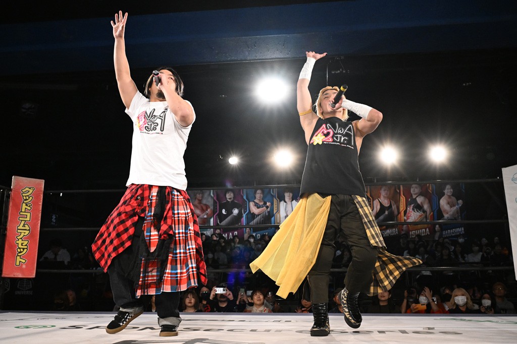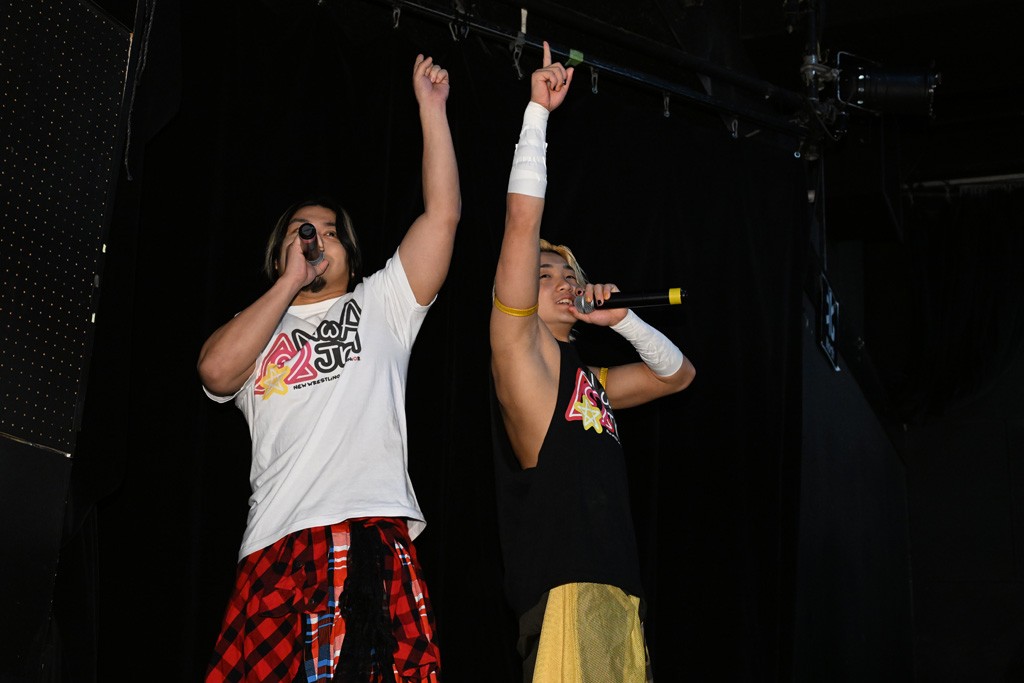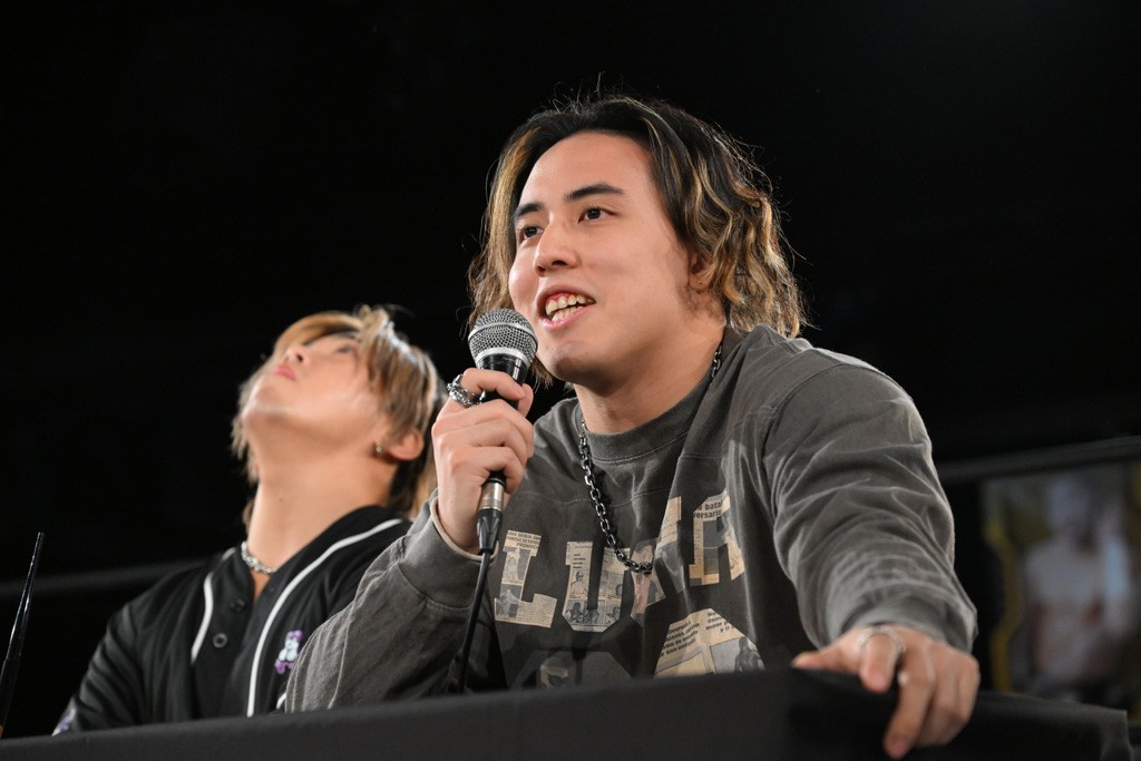 王者組のMAOは「MJ(政岡)に俺らだから挑戦したいって言われちゃったよ。俺たち、魅力的なタッグってことだよな? こんなところでまだまだ止まれない。外から来てくれたんだ。ガッチリ勝つぜ」、KANONは「めっちゃうれしいね。もっと殺伐とした感じになるかと思った。でも、この人たち、黄色い板(清掃看板)で叩く人。たぶん俺らの頭を叩きたかったんだと思う。だから油断できない。手のひらで転がされてるかもしれない。俺ら体格のアドバンテージがあると思うからそれで勝とう」と意気込んだ。