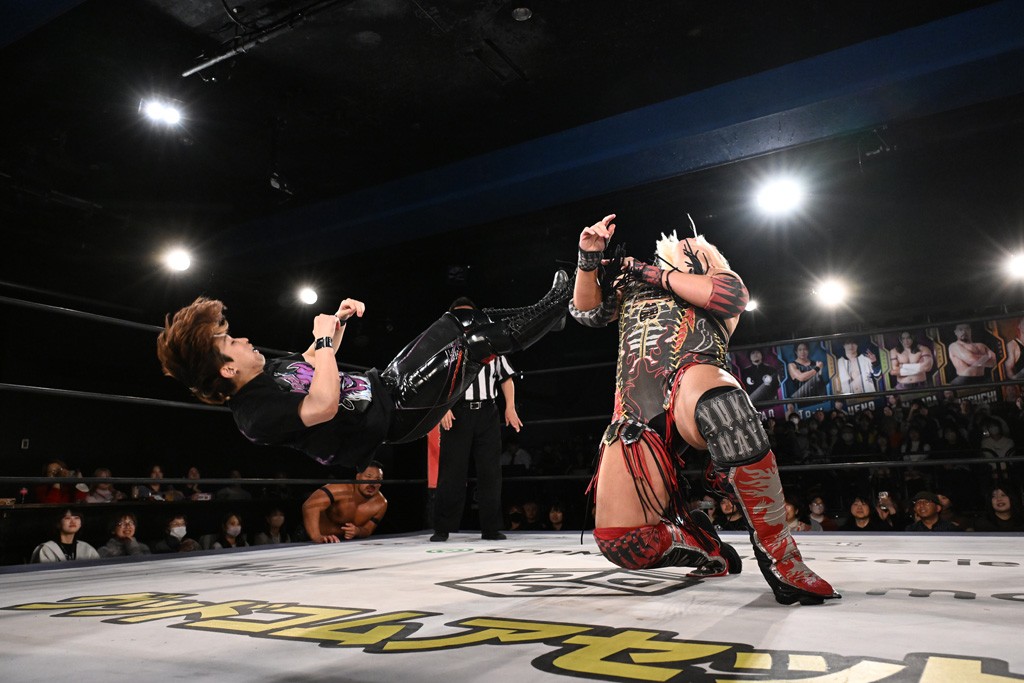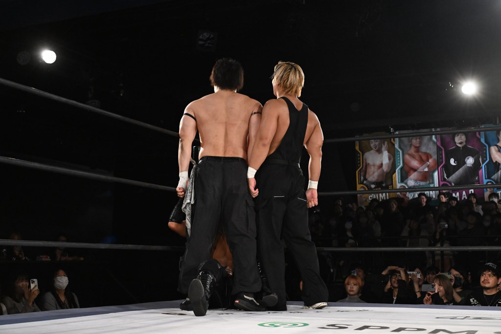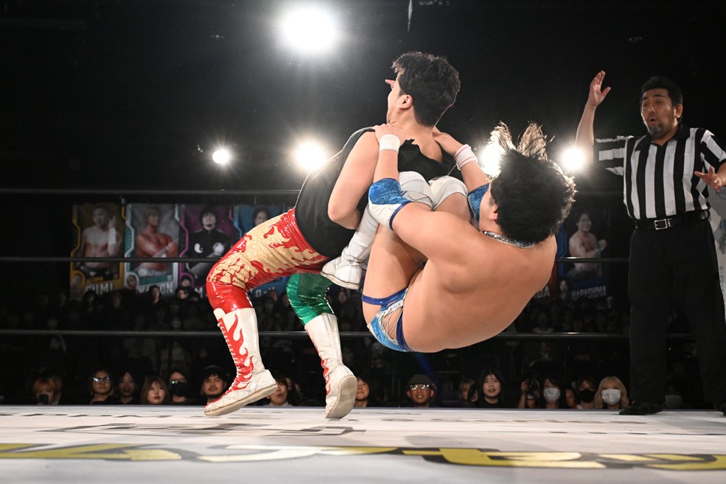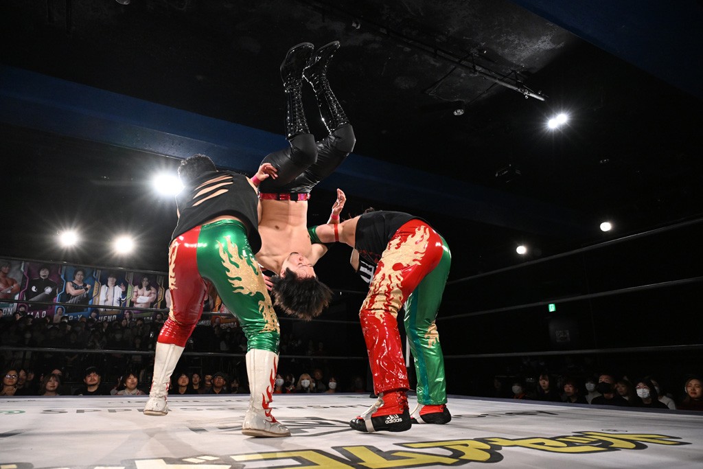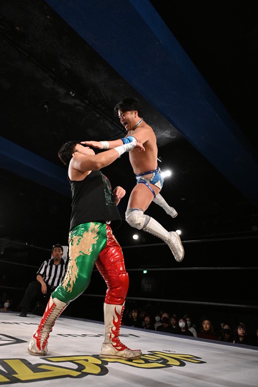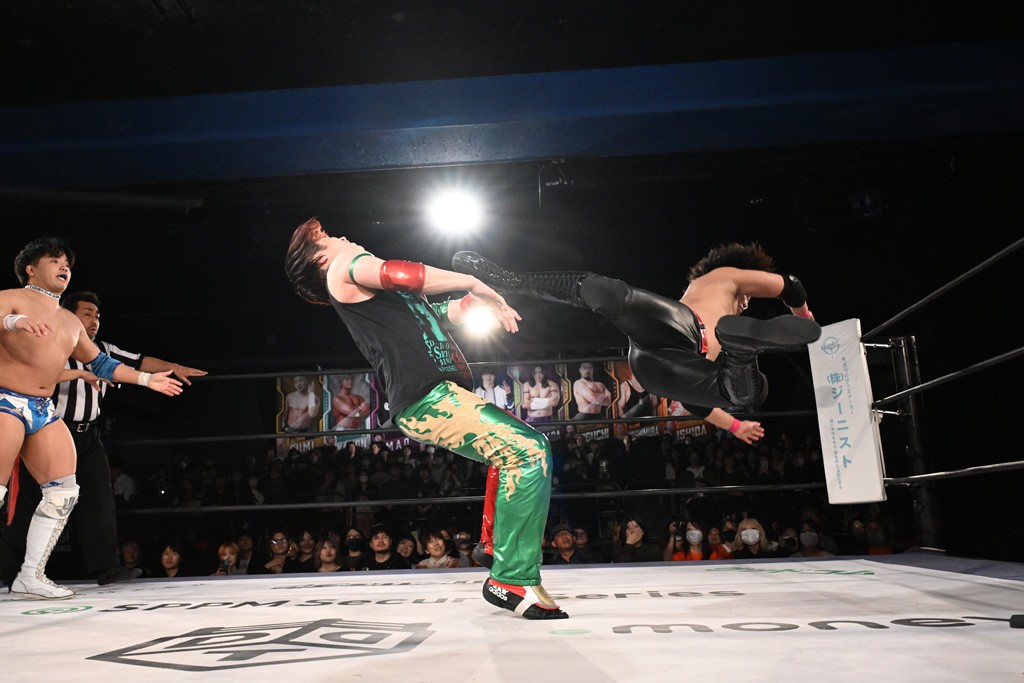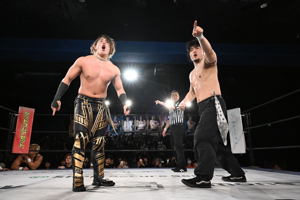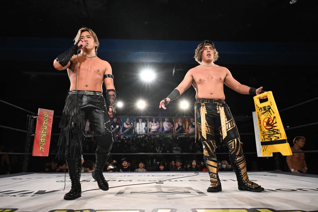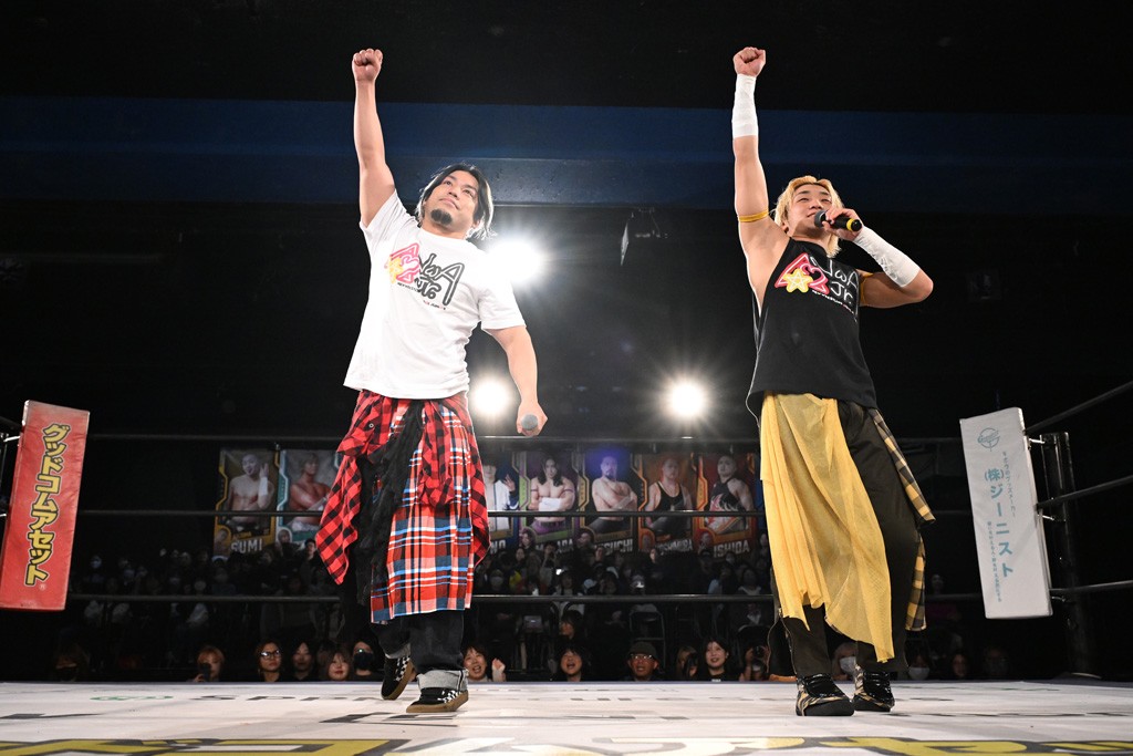 12月21日の後楽園ホール大会で、STRANGE LOVE CONNECTION(S.L.C.)のMAO&KANONが保持するKO-Dタッグ王座に挑む、F-SWAGの政岡純&ガイア・ホックスが前哨戦で快勝し、ベルト獲りを大いにアピールした。