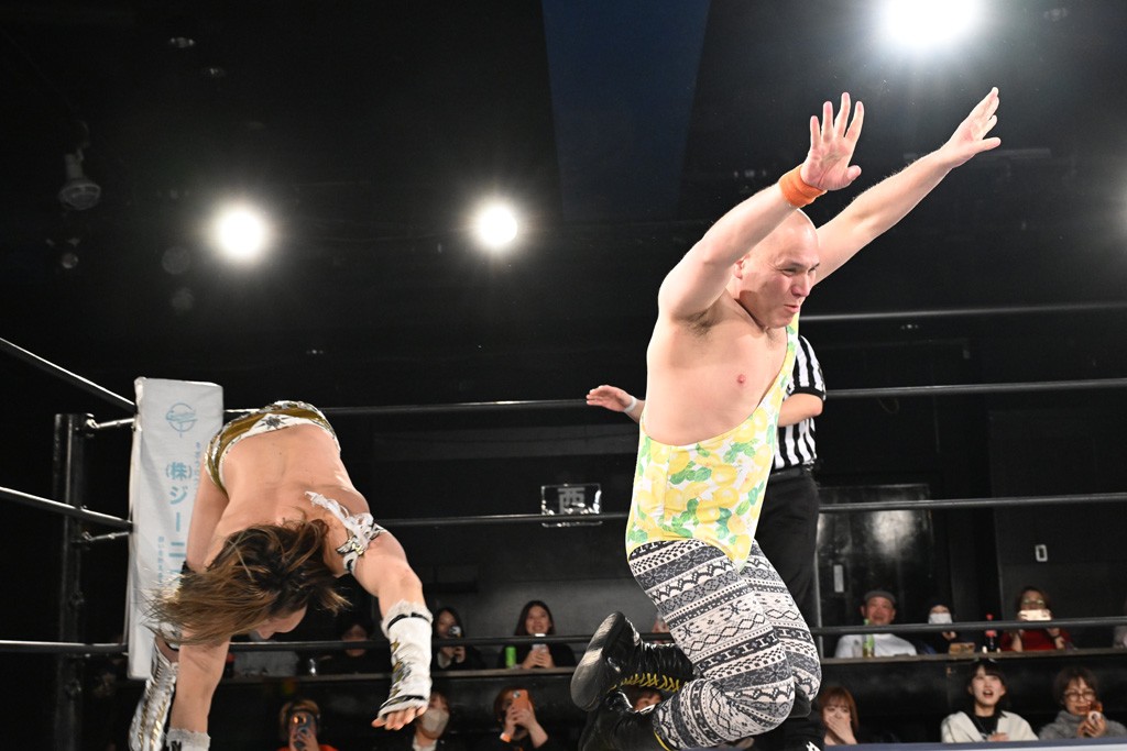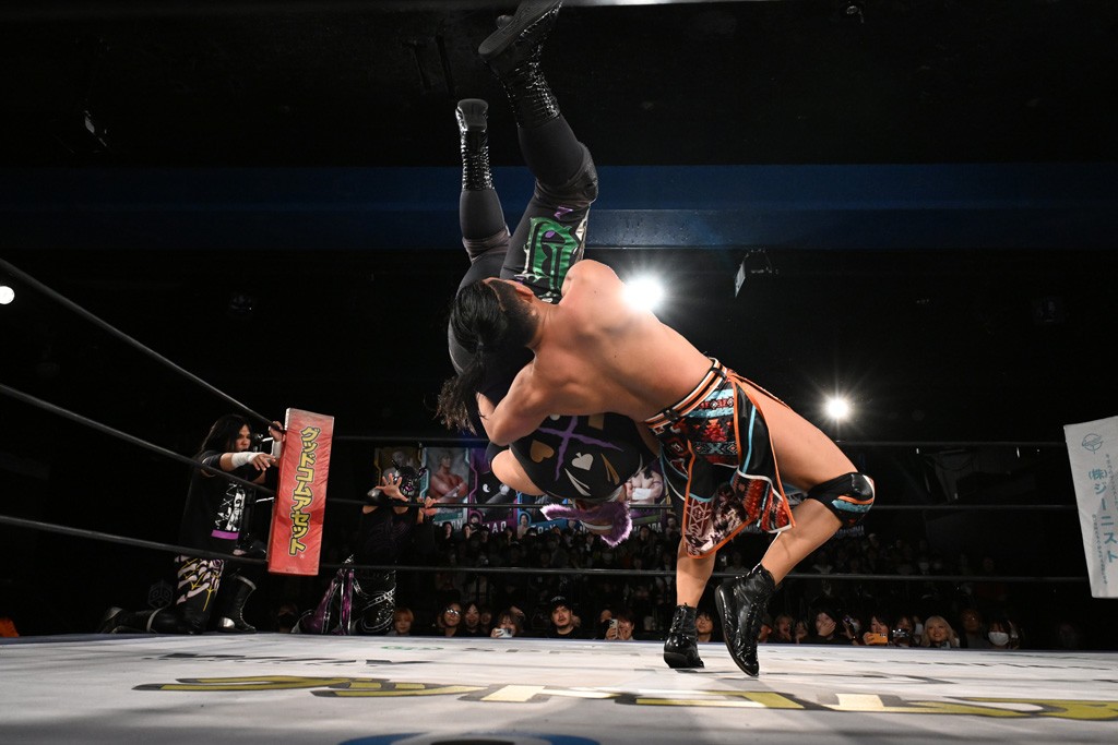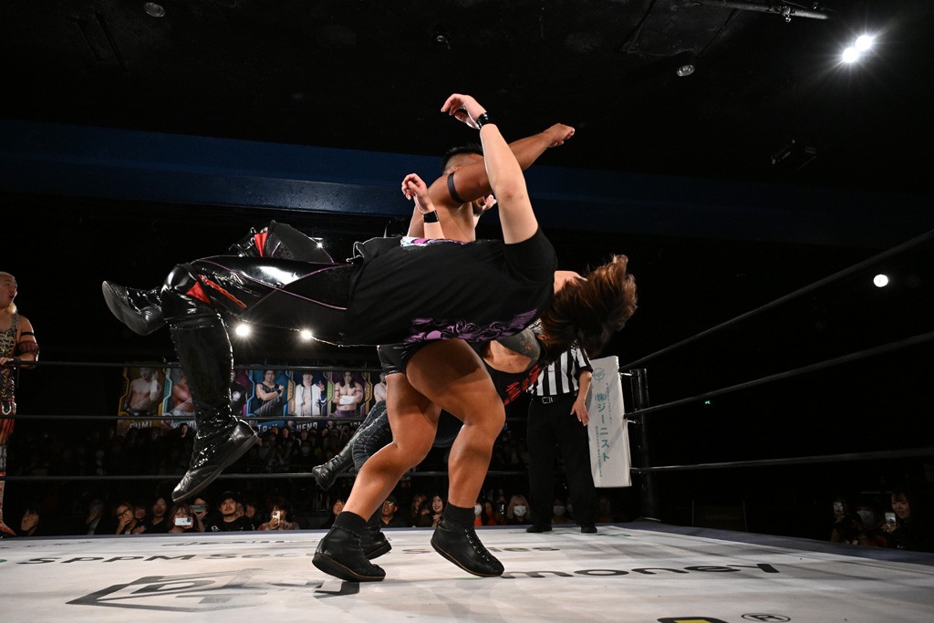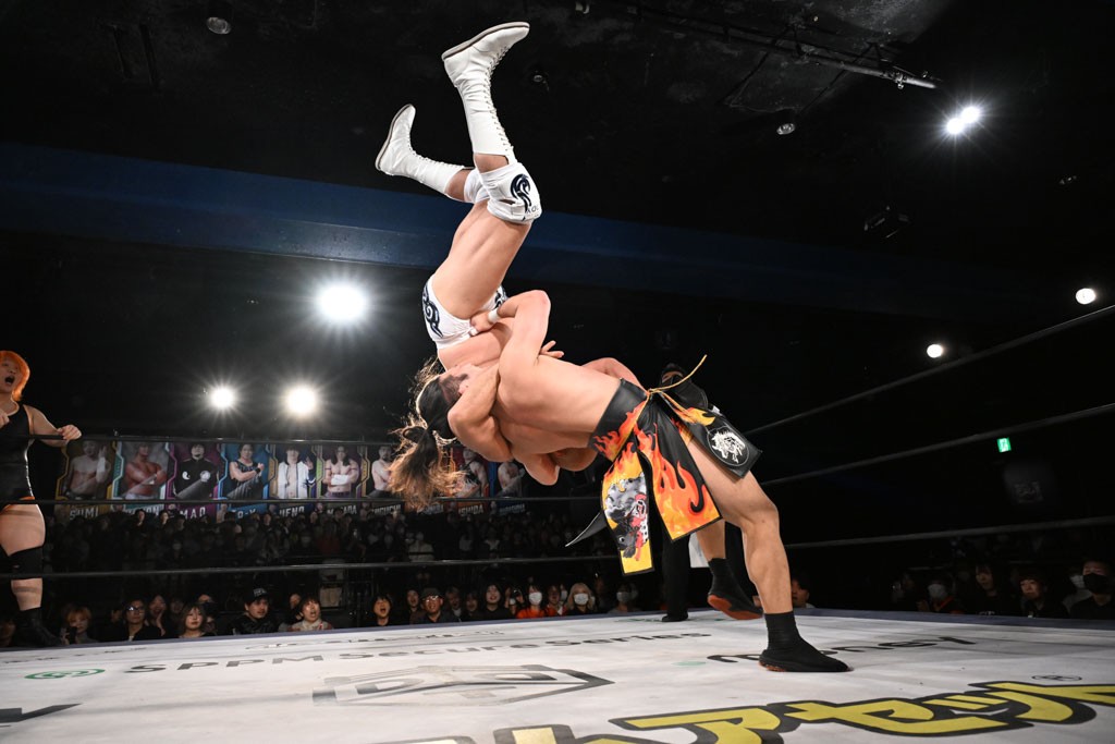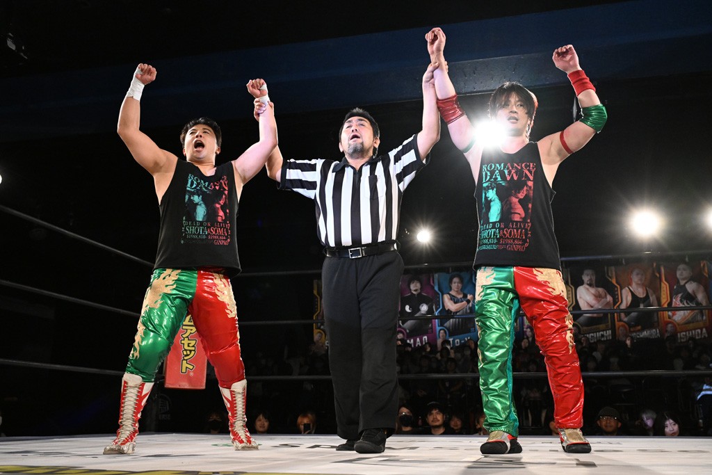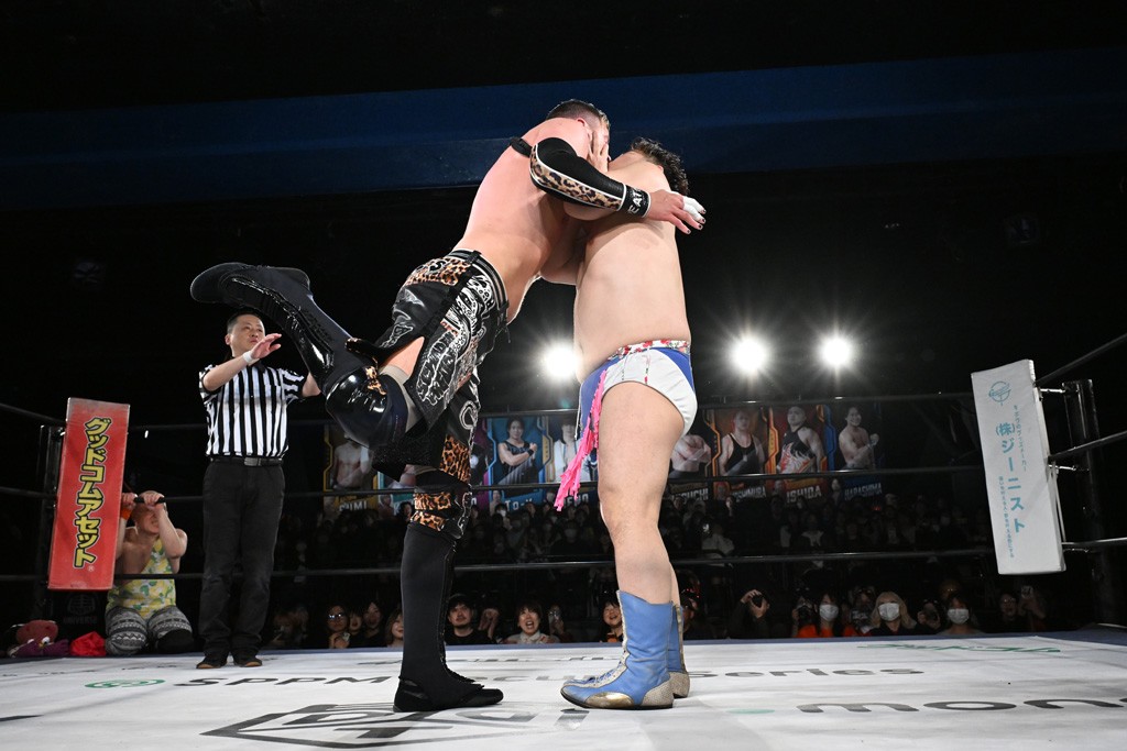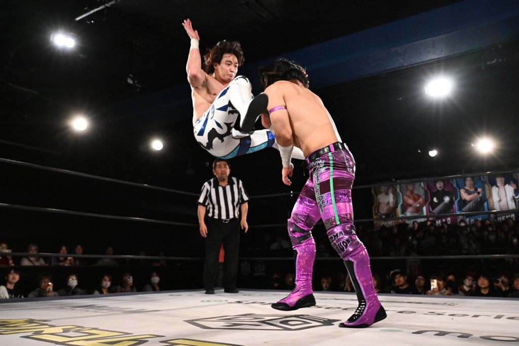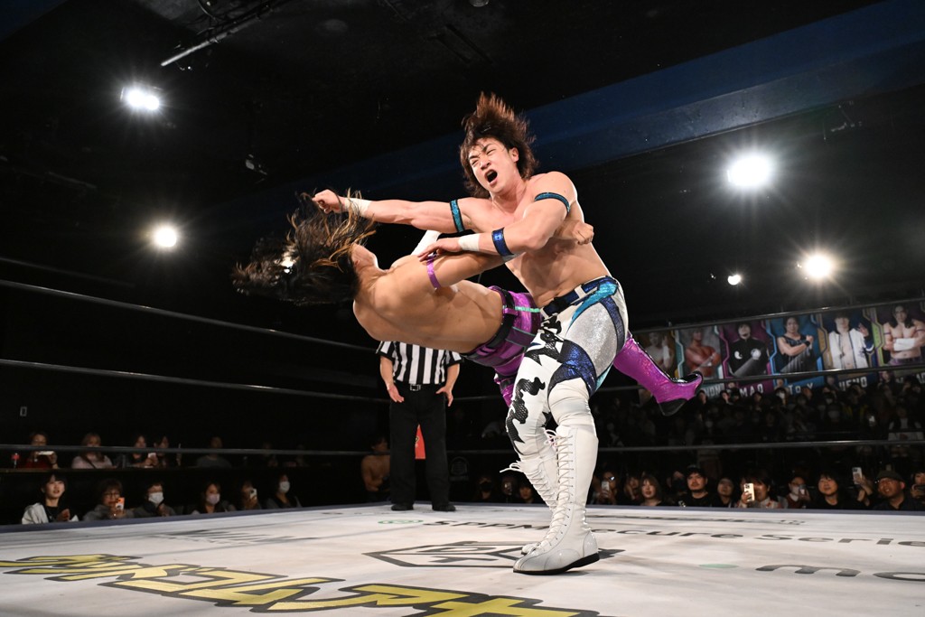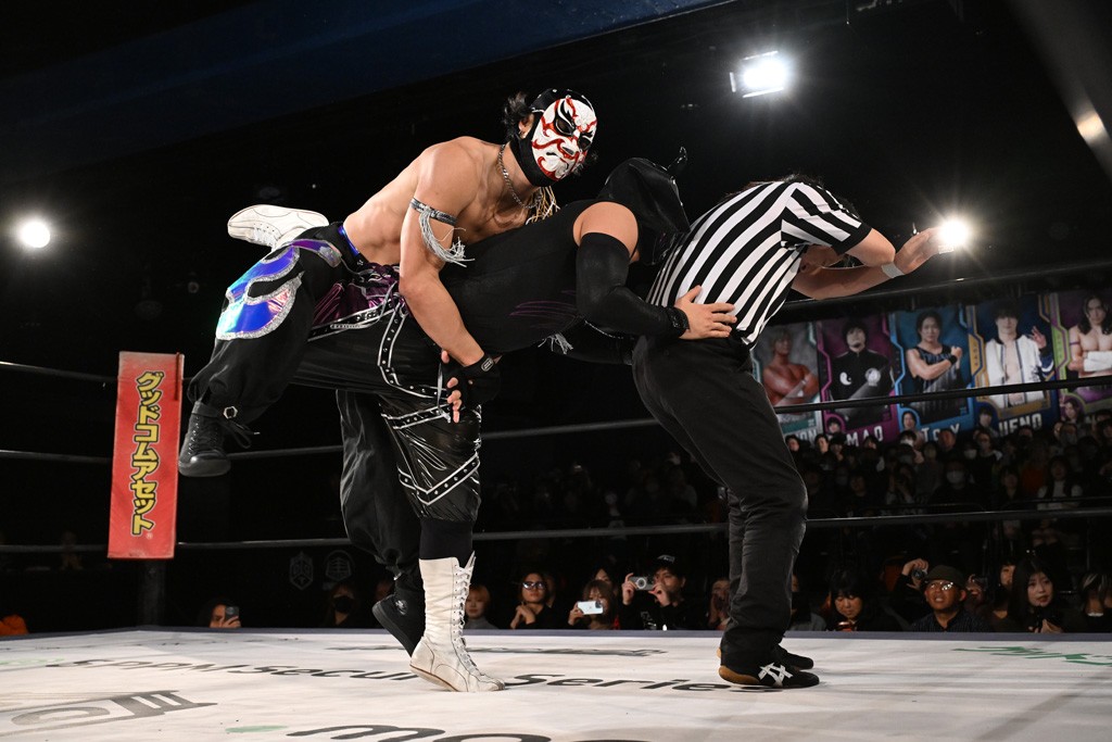 12月21日の後楽園ホール大会で、STRANGE LOVE CONNECTION(S.L.C.)のMAO&KANONが保持するKO-Dタッグ王座に挑む、F-SWAGの政岡純&ガイア・ホックスが前哨戦で快勝し、ベルト獲りを大いにアピールした。