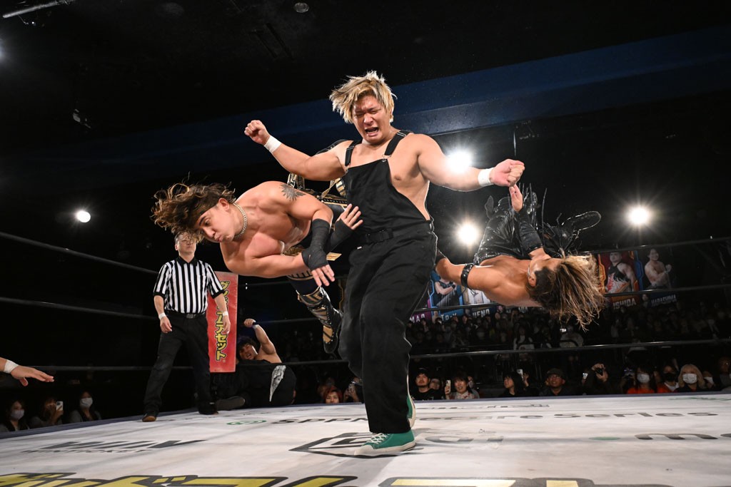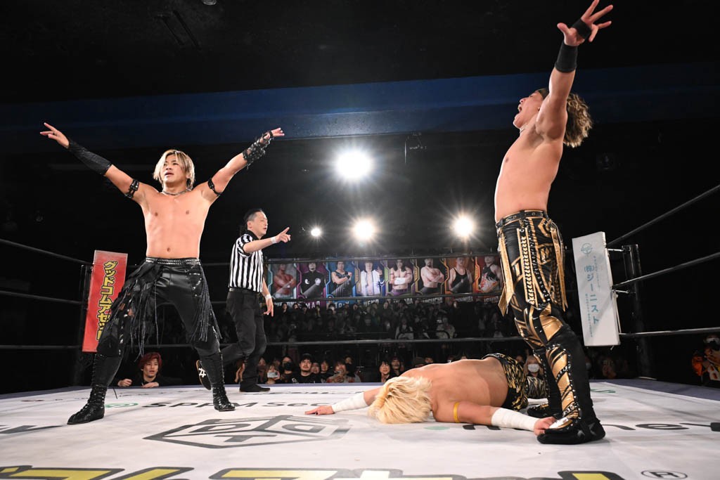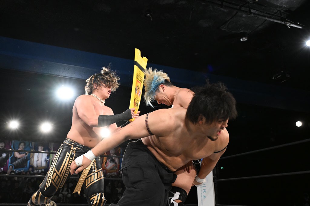 政岡純&ガイア・ホックスが前哨戦でMAO&KANON組に快勝し、ベルト獲りに弾み!「俺らが一発で、そのKO-Dタッグいただくよ!」
