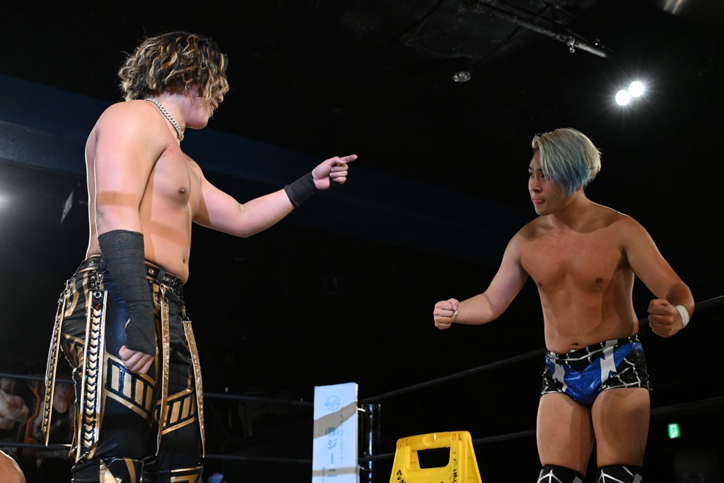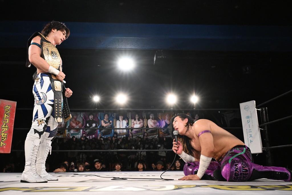 12月3日、東京・新宿FACEで「GO UPDATE 2025」が開催。KO-D無差別級王者の上野勇希が21日の後楽園ホール大会で挑戦を受ける正田壮史に前哨戦で完勝も、チャレンジャーに愛あるゲキを飛ばした。