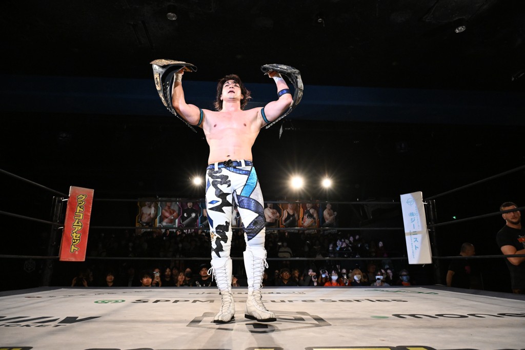 正田は「さらけ出しちゃった。さっき何が起きたか分かんないけど、すごい短い夢見て、そのKO-D無差別級のベルト巻いてたんです。僕は愛と責任と、そして応援してくれるみんなが幸せになって帰ってくれるように、全力でそのベルト目指して戦うから!」と返した。