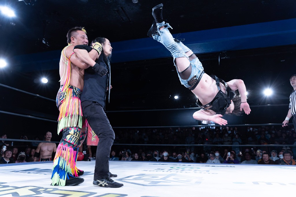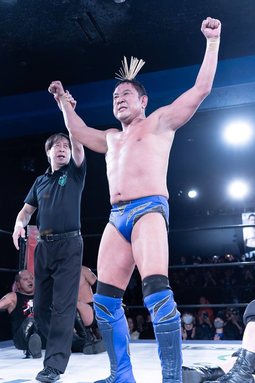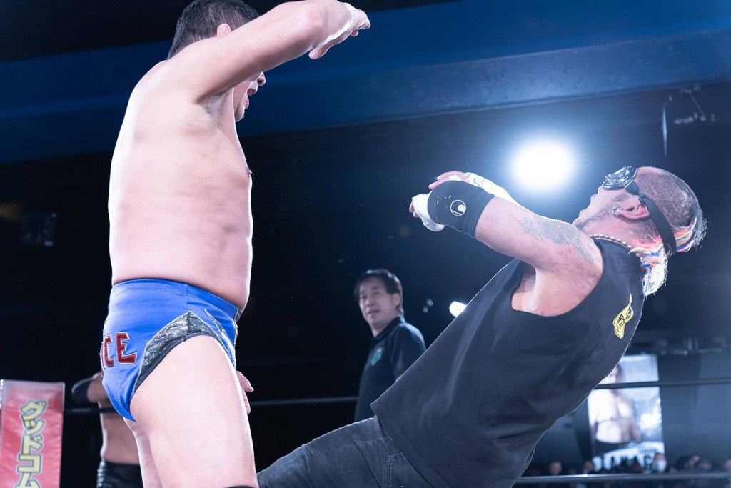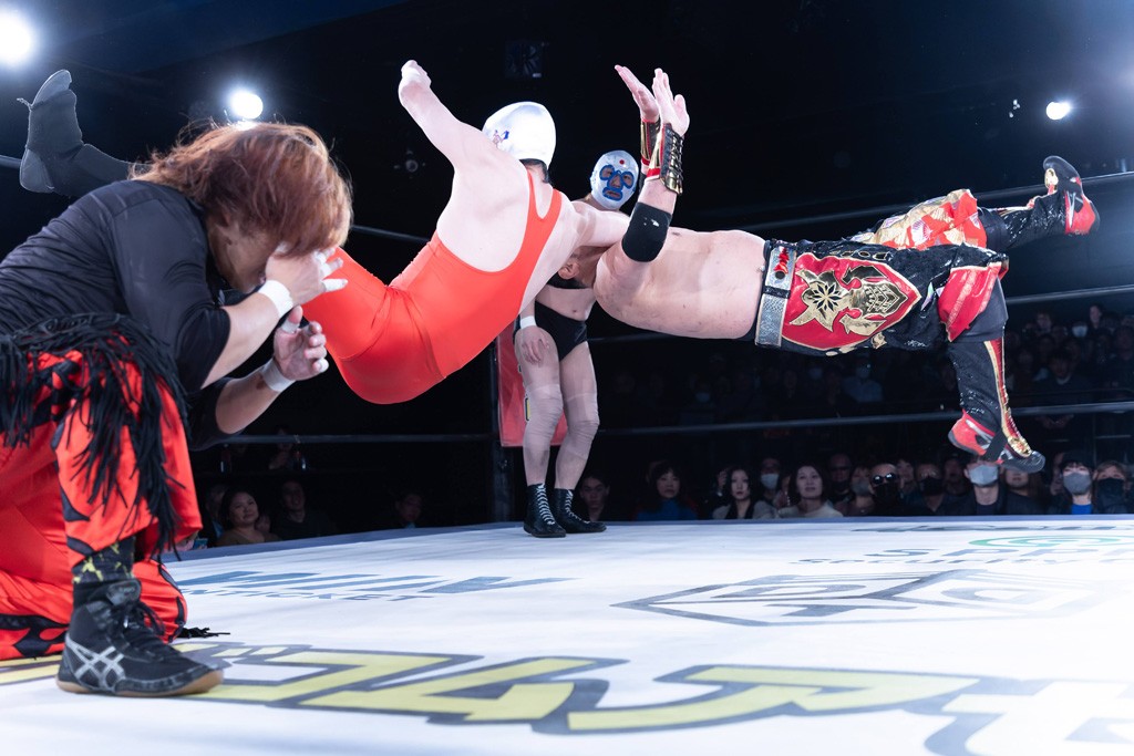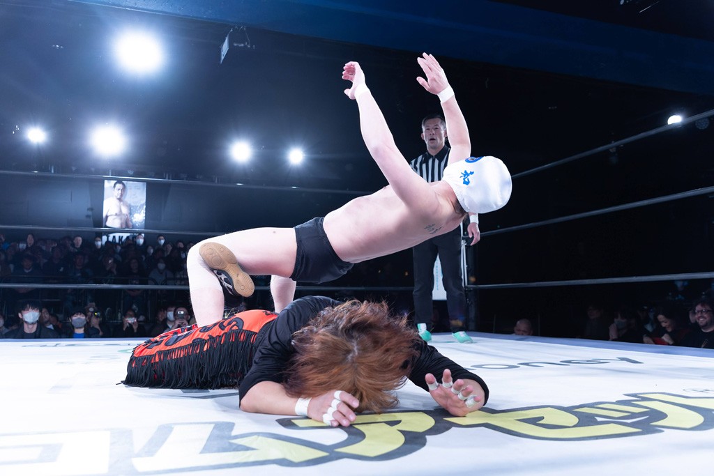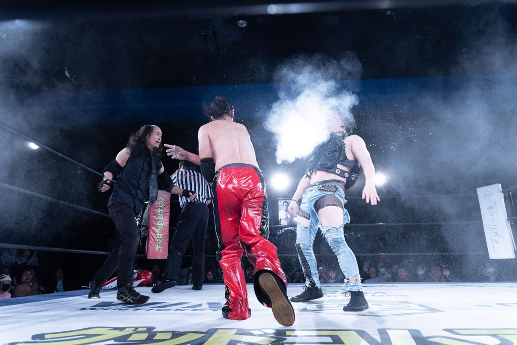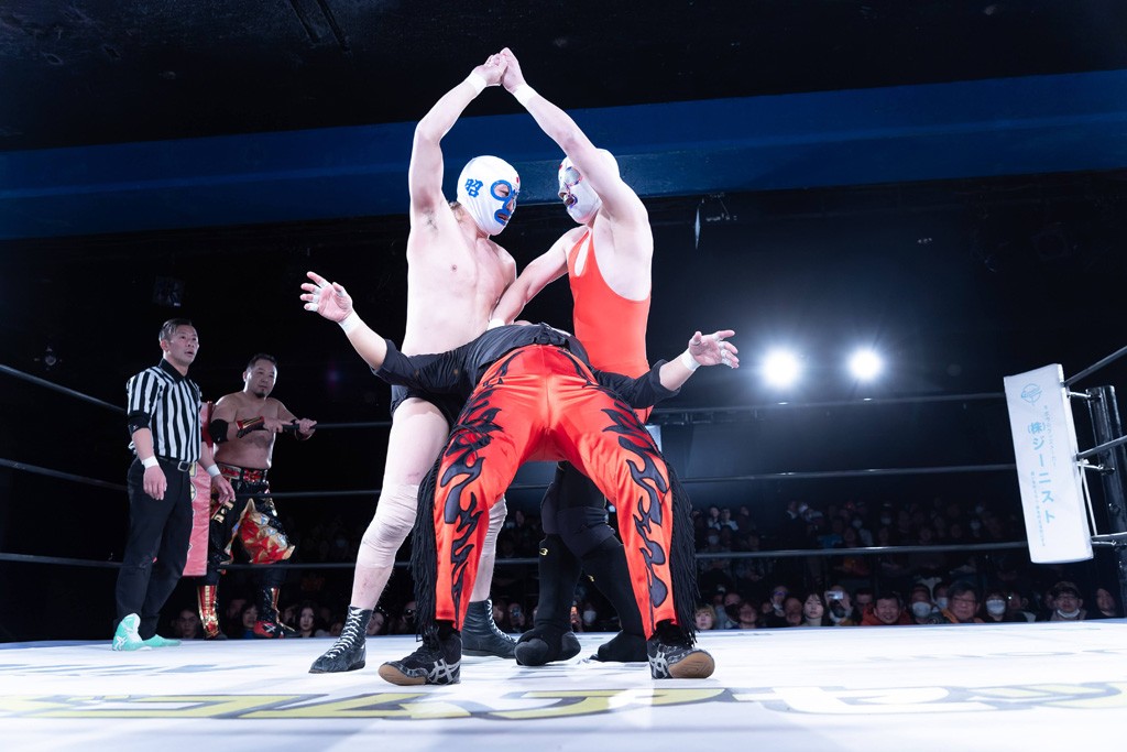 また、第4試合ではDDT旗揚げメンバーの佐々木貴とMIKAMIがレジェンドコンビを組み、2代目「昭和」&「令和」と激突。貴とMIKAMIは敵対することが多かったため、レアなタッグ。「昭和」は黎明期のDDTで活躍したマスクマンで2代目はその遺伝子を引き継いだとされ、「令和」は初登場。2代目「昭和」組は次々に合体技を繰り出し、抜群のコンビネーションを披露。MIKAMIはキリモミ式プランチャを2人に見舞うなど、50代とは思えぬ身体能力の高さを発揮。MIKAMIのスワントーンボムをかわした2代目「昭和」はジャパニーズ・レッグロール・クラッチ・ホールドで丸め込むもカット。MIKAMIは平成式スク~ルボ~イで2代目「昭和」から3カウントを奪取した。敗れたものの、2代目「昭和」組はなかなかの実力者チームだっただけに、再参戦してほしいところだ。