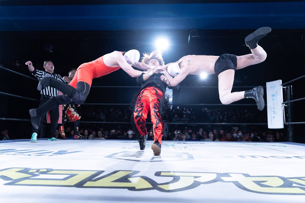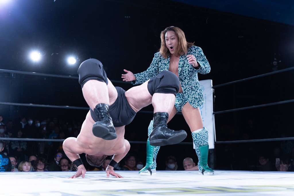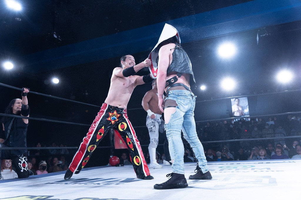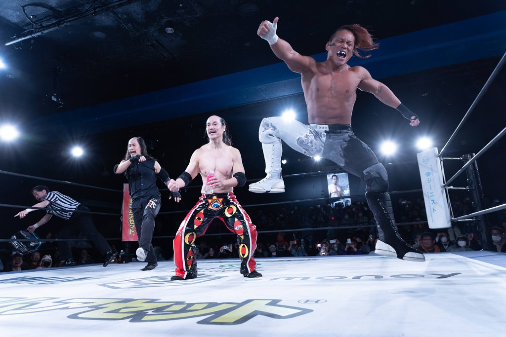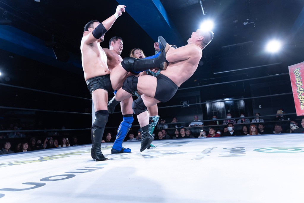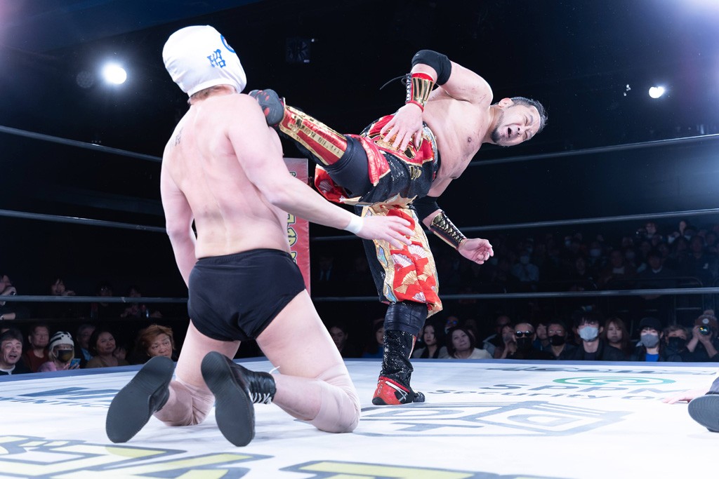 また、第4試合ではDDT旗揚げメンバーの佐々木貴とMIKAMIがレジェンドコンビを組み、2代目「昭和」&「令和」と激突。貴とMIKAMIは敵対することが多かったため、レアなタッグ。「昭和」は黎明期のDDTで活躍したマスクマンで2代目はその遺伝子を引き継いだとされ、「令和」は初登場。2代目「昭和」組は次々に合体技を繰り出し、抜群のコンビネーションを披露。MIKAMIはキリモミ式プランチャを2人に見舞うなど、50代とは思えぬ身体能力の高さを発揮。MIKAMIのスワントーンボムをかわした2代目「昭和」はジャパニーズ・レッグロール・クラッチ・ホールドで丸め込むもカット。MIKAMIは平成式スク~ルボ~イで2代目「昭和」から3カウントを奪取した。敗れたものの、2代目「昭和」組はなかなかの実力者チームだっただけに、再参戦してほしいところだ。
