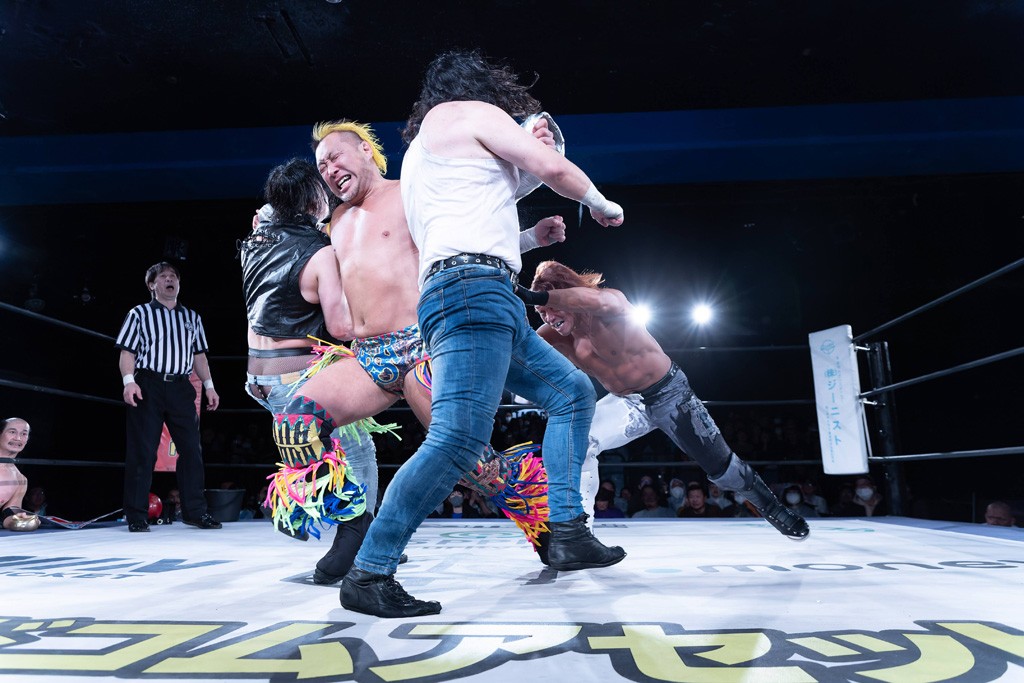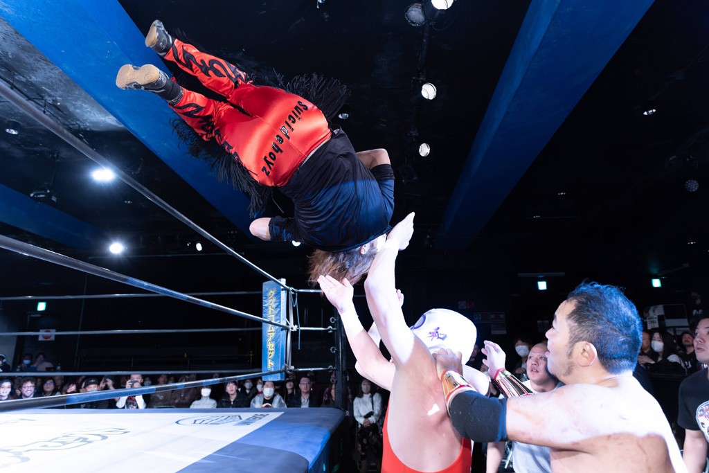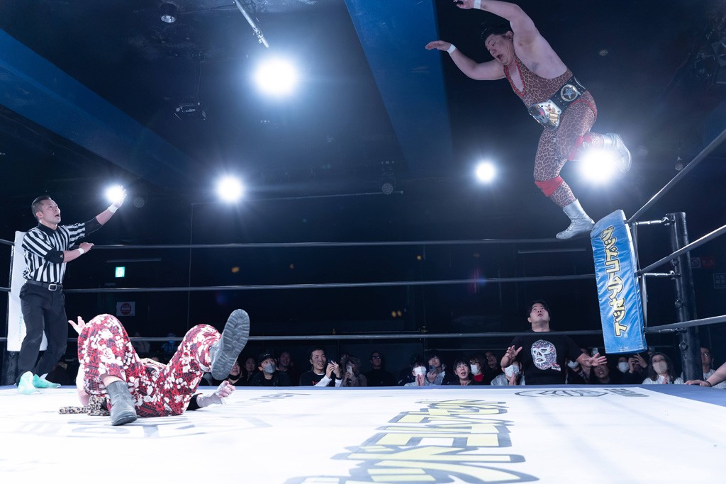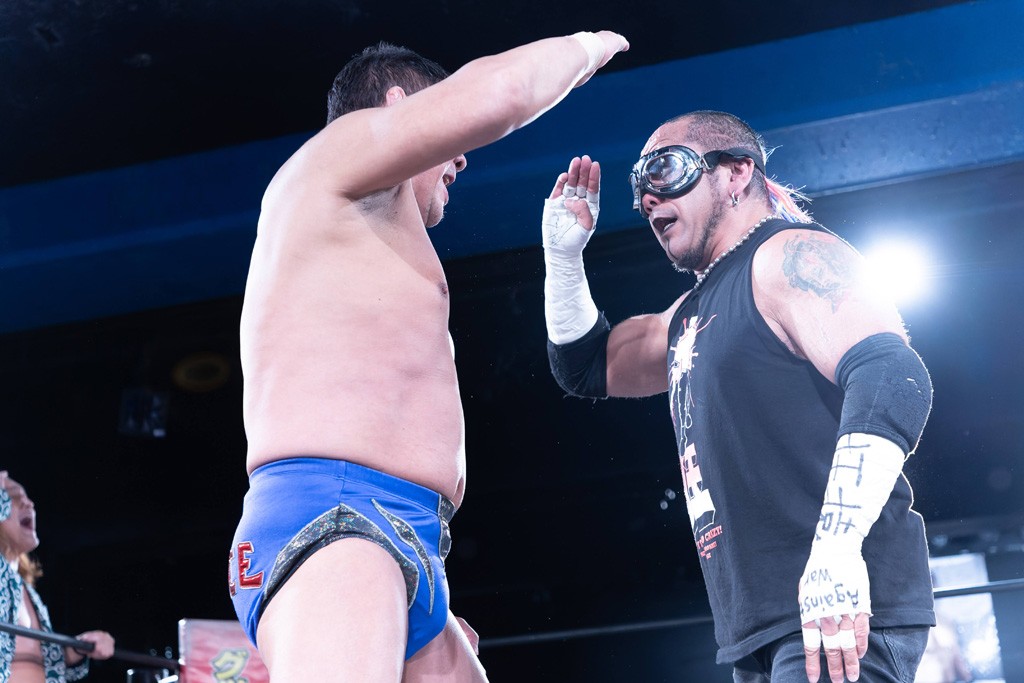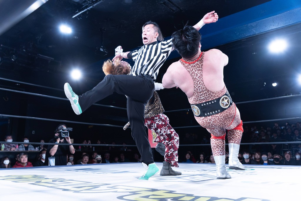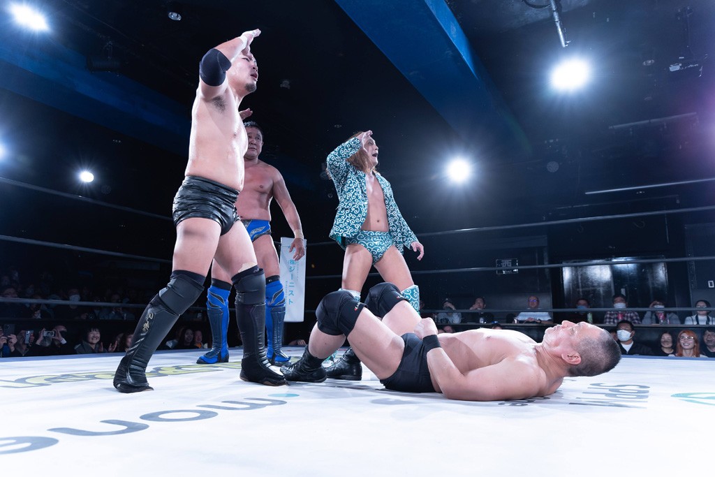 また、第4試合ではDDT旗揚げメンバーの佐々木貴とMIKAMIがレジェンドコンビを組み、2代目「昭和」&「令和」と激突。貴とMIKAMIは敵対することが多かったため、レアなタッグ。「昭和」は黎明期のDDTで活躍したマスクマンで2代目はその遺伝子を引き継いだとされ、「令和」は初登場。2代目「昭和」組は次々に合体技を繰り出し、抜群のコンビネーションを披露。MIKAMIはキリモミ式プランチャを2人に見舞うなど、50代とは思えぬ身体能力の高さを発揮。MIKAMIのスワントーンボムをかわした2代目「昭和」はジャパニーズ・レッグロール・クラッチ・ホールドで丸め込むもカット。MIKAMIは平成式スク~ルボ~イで2代目「昭和」から3カウントを奪取した。敗れたものの、2代目「昭和」組はなかなかの実力者チームだっただけに、再参戦してほしいところだ。