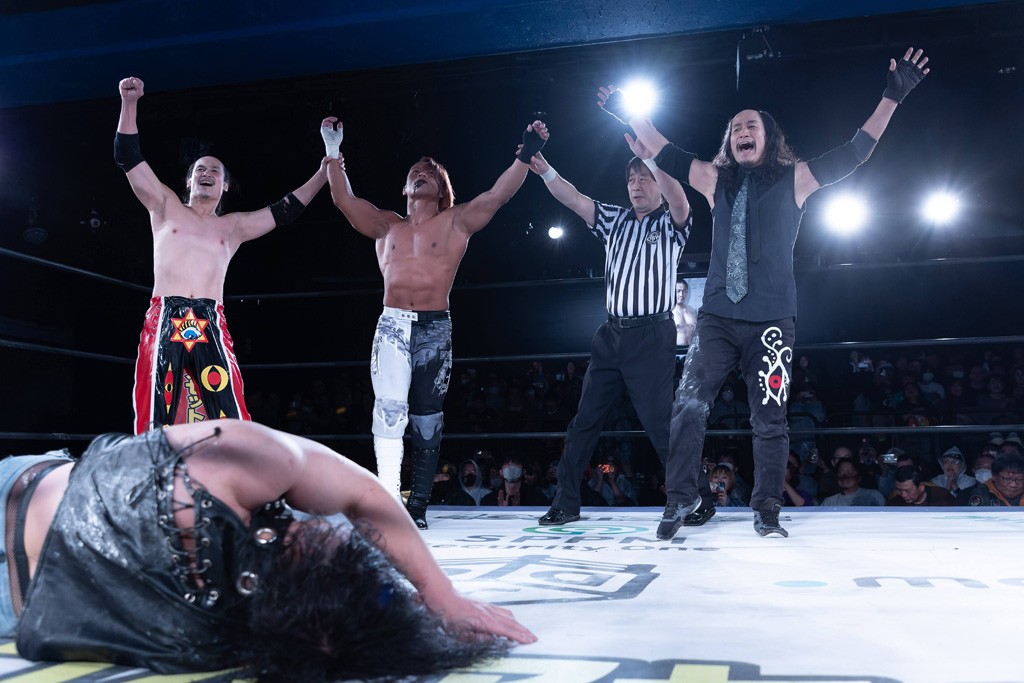すると永田は「ちょっと待った! 俺をこんな目に遭わせてこれで終わりか? 人を勝手に超日本のエースに立てておいて、これで終わりか?」と迫ると、髙木は「会場は押さえてないんですよ。もうやりようがないんです」と回答。永田は「会場は押さえたぞ。3月24日、新宿FACE、文句ないだろ!」と仰天発言。髙木は「超日本プロレスは来年もやるぞ!」と叫び、「大団円で終わりたいので、ナガダンスが見たいです」と懇願。その熱意に折れた永田は髙木らとともにナガダンスを踊った。最後は永田が「2026年も超日本プロレス、よろしくお願いします。1、2、3、ゼアッ!」で締めくくった。