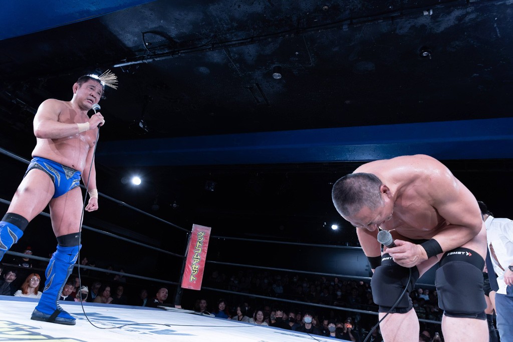 髙木は「M&Aプロレスやって、8月に超日本プロレス旗揚げして、11月に復帰して、これで俺の30周年は終わりです。永田さんとここまで戦えたことに感謝します。ありがとうございました」と感謝の弁。さらに「俺らはプロレスのど真ん中からはずれてるかもしれないけど、プライド持って、このリングに立ってます。永田さんがプライドを持って上がり続けたことに、みんな感謝しましょう」と言って、戦った5選手が頭を下げた。