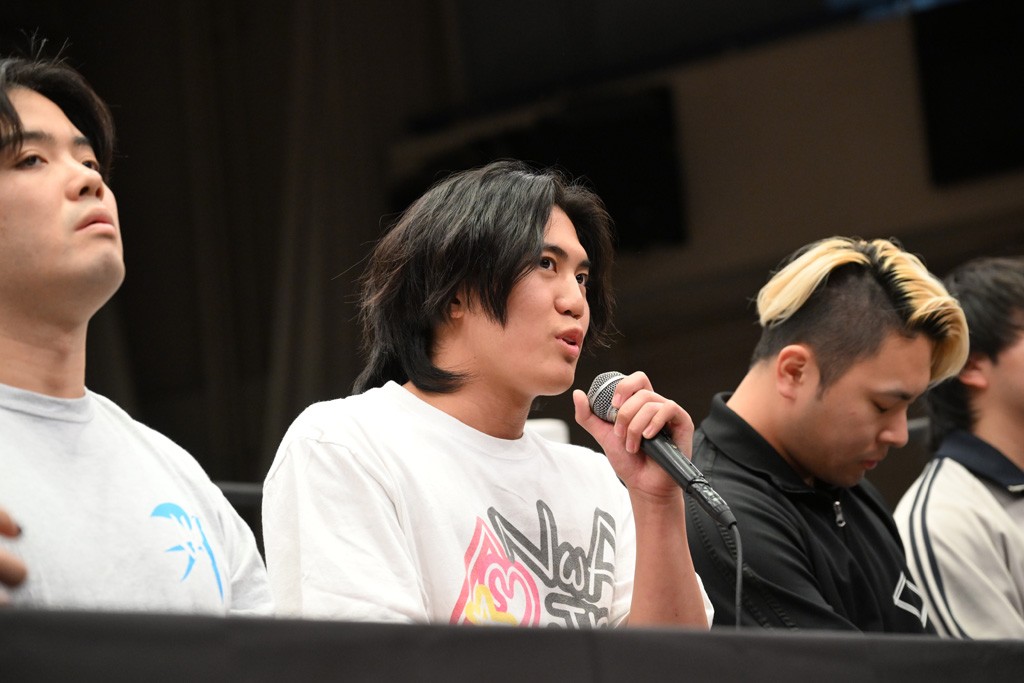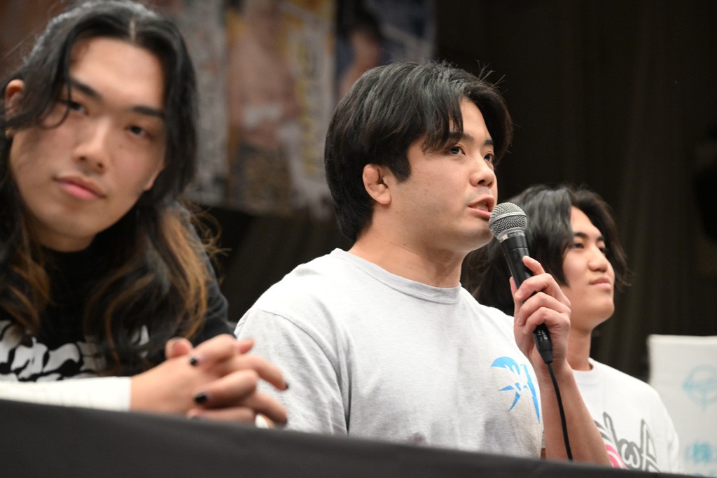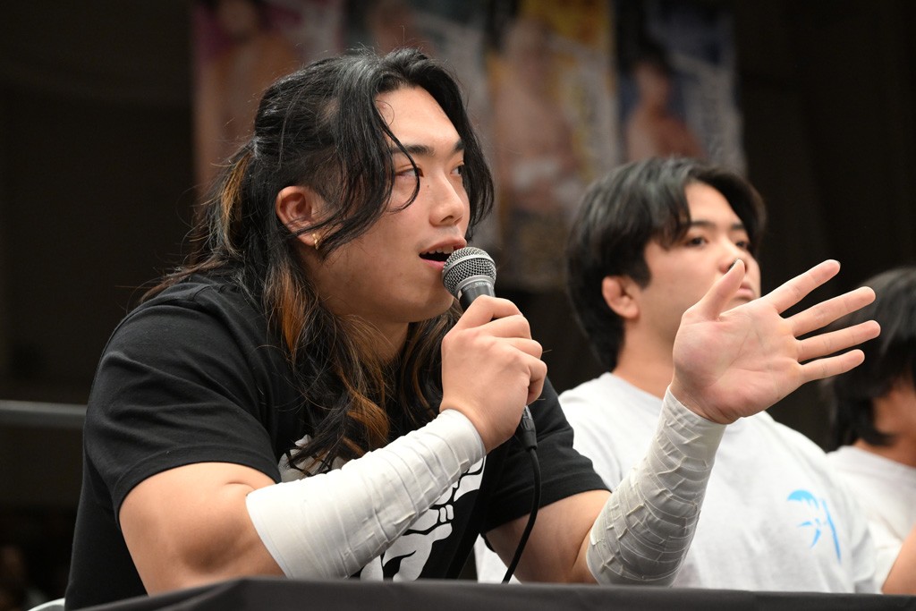 上野との一騎打ちについて、武知は「僕は上野さんが思ってる以上に強いよっていうのを証明させたい。一番近くで見てきてくださって。僕の弱いとこも強いとこも全部僕以上に知ってるんですけど。まだ分からない力が残ってるよっていうのを引き出してもらえたときが、きっと自分でもビックリするような強さだし。自分も知らない強さにいきつける気がするんで」と話した。初のシングル戦になるが「僕は上野選手とシングル一番最初にやりたいとずっと言ってたんで。夢が叶ったんですけど、決まってみると、より覚悟決まるなって感覚です。もう新人枠じゃなくなってきてるんで。ここからはもう先輩方と同じフィールドに立たないといけない。キャリアの壁ももちろんありますけど、それを超えるような僕なりのファイトができるように頑張りたいと思います」と意気込んだ。