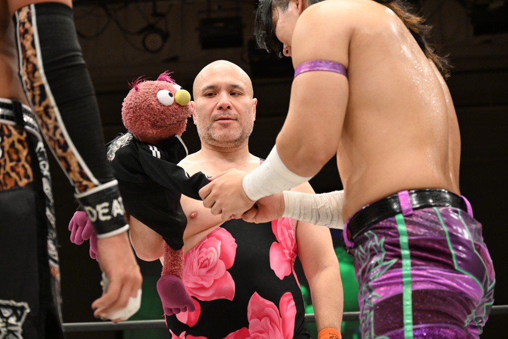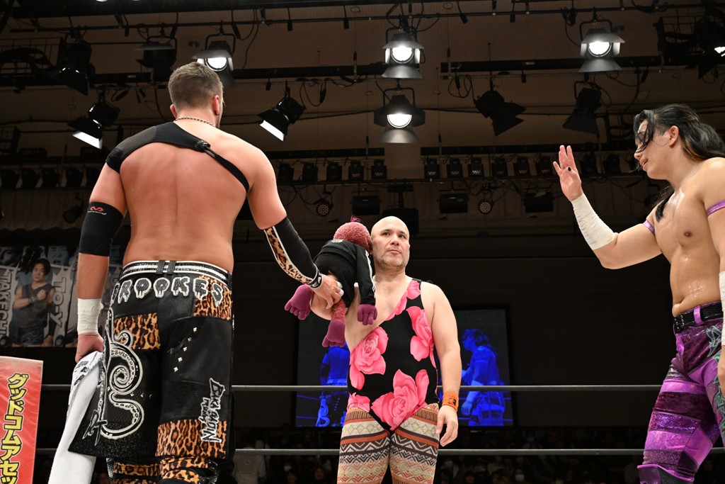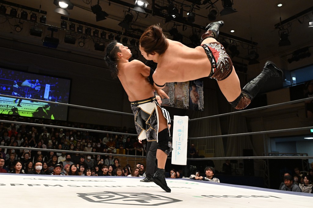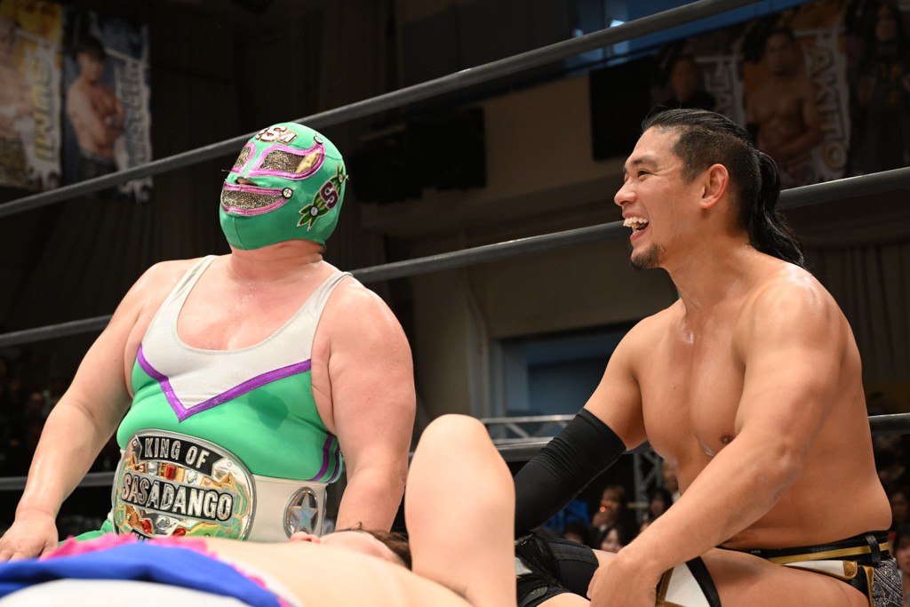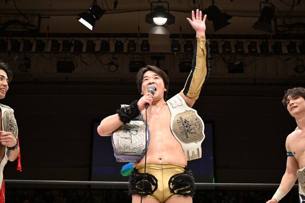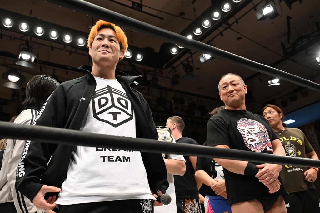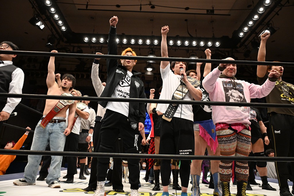 大一番を前にDDTの流儀で勝利を飾ったTAKESHITAは「今はDDTを離れることが多くて、AEW、新日本で戦ってますけど、どんな経験しても、どこのリングで戦っても、一個だけ決めてる信念があります。ドラマティックドリームを見せ続けるということです。明日の東京ドーム、みんなの思いがこもった右ヒザ決めて、このベルトを防衛して、GLOBALのベルトも獲って、またDDTに帰って来るので」と決意を語った。