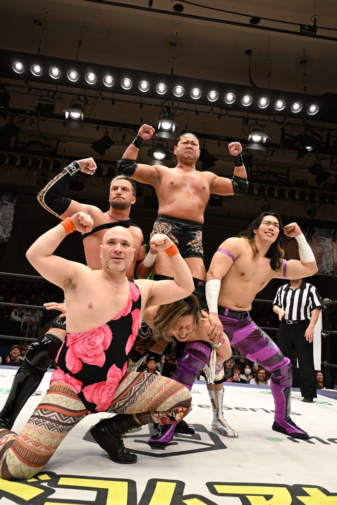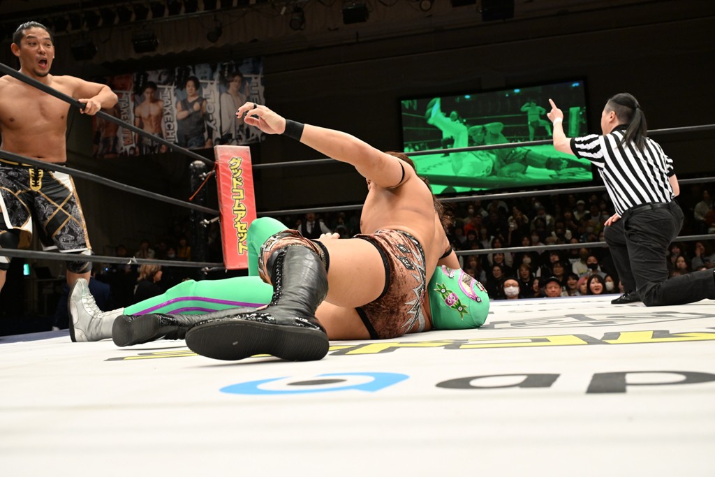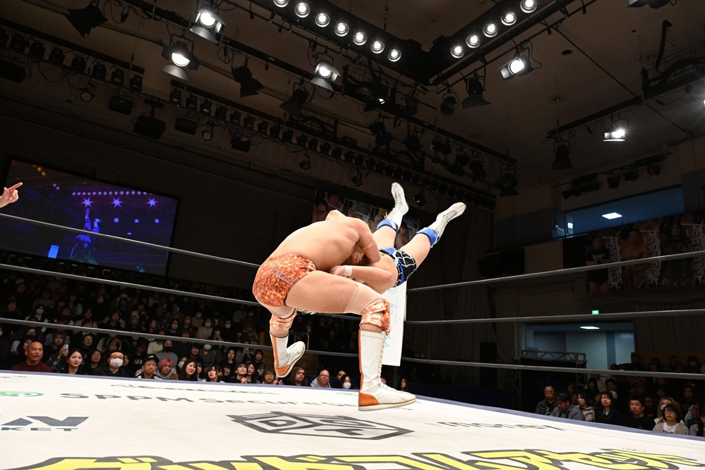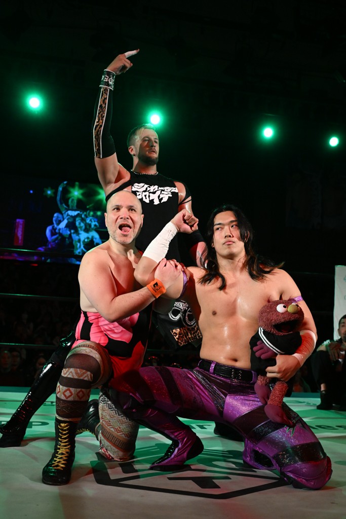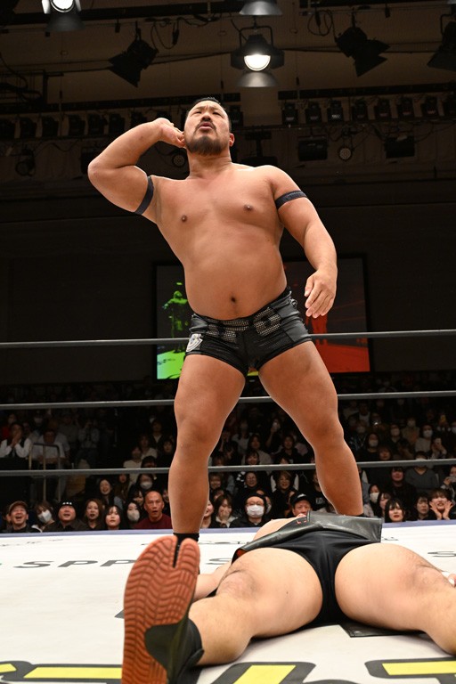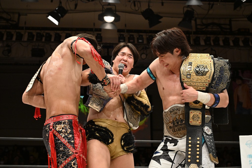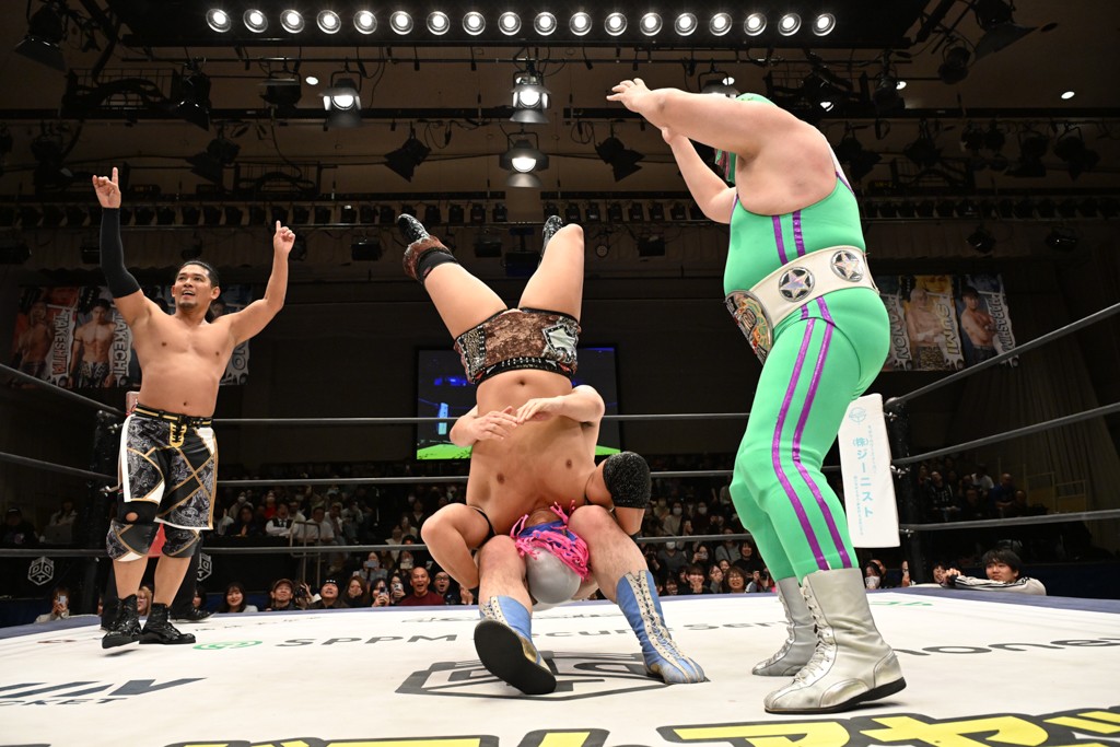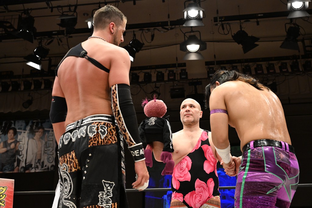 大一番を前にDDTの流儀で勝利を飾ったTAKESHITAは「今はDDTを離れることが多くて、AEW、新日本で戦ってますけど、どんな経験しても、どこのリングで戦っても、一個だけ決めてる信念があります。ドラマティックドリームを見せ続けるということです。明日の東京ドーム、みんなの思いがこもった右ヒザ決めて、このベルトを防衛して、GLOBALのベルトも獲って、またDDTに帰って来るので」と決意を語った。