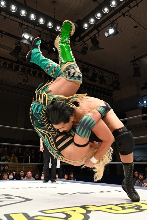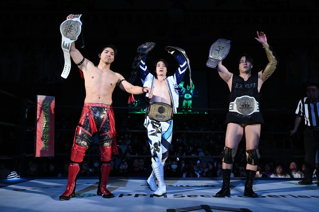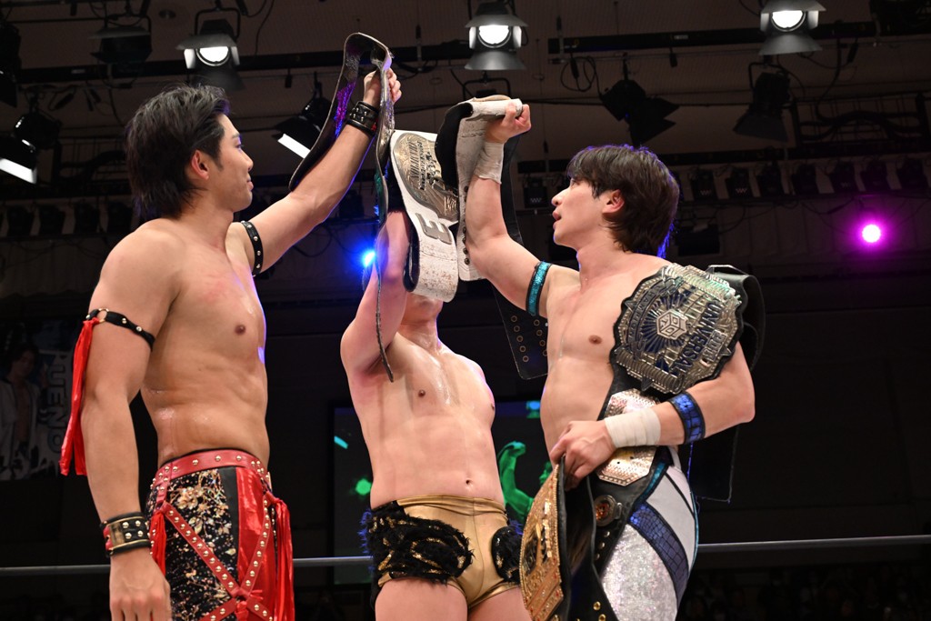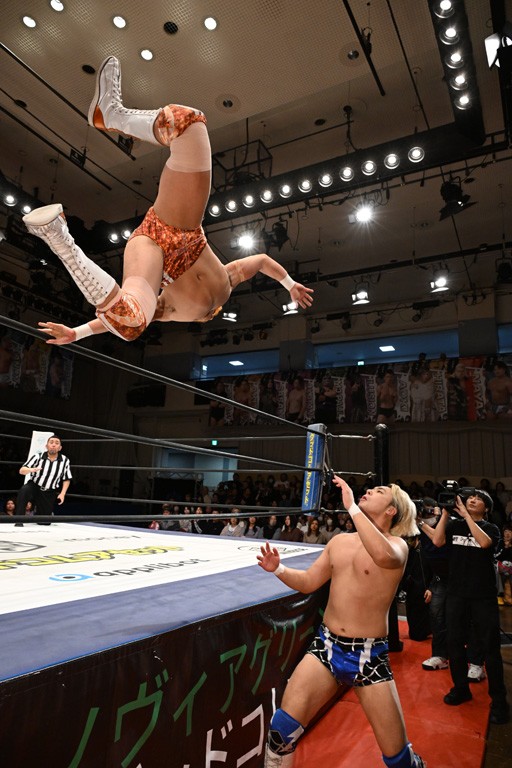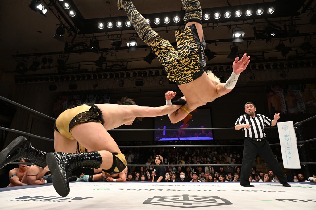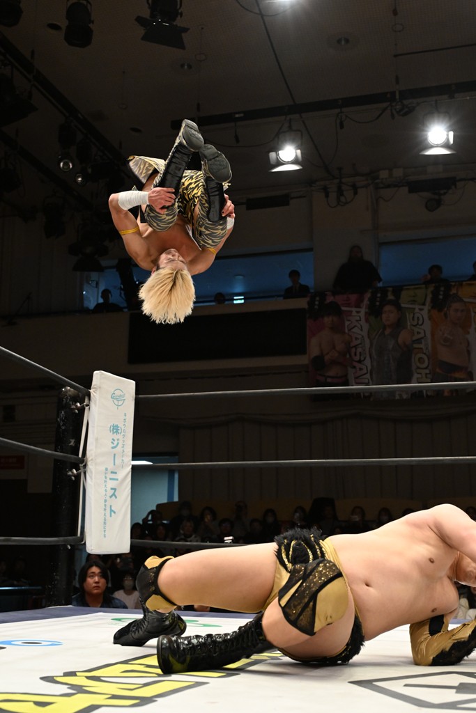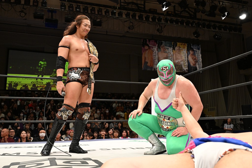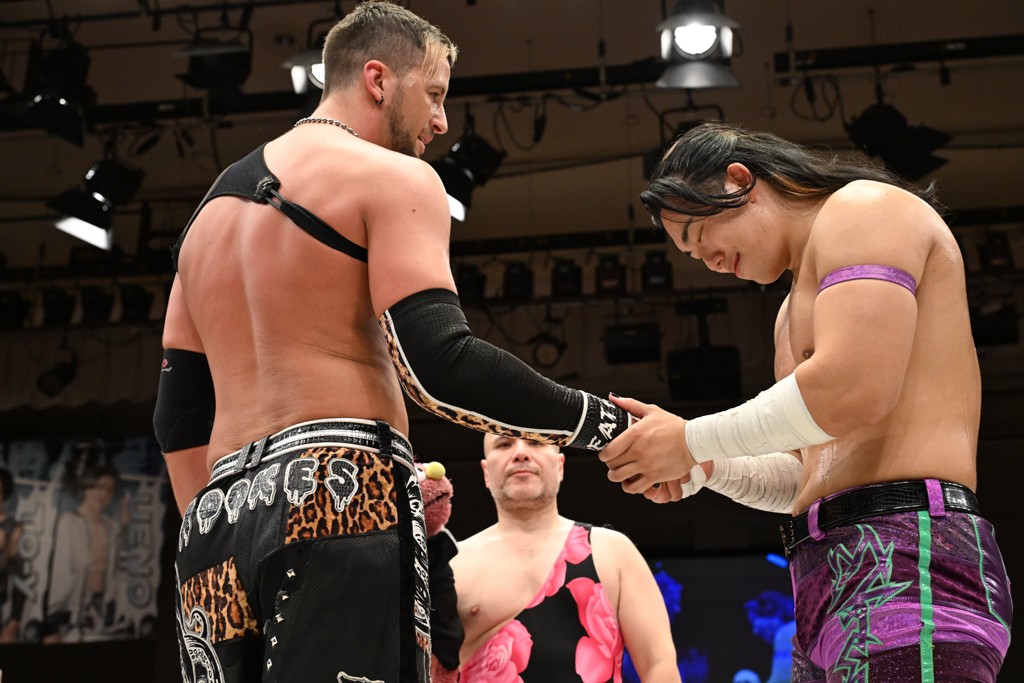 大一番を前にDDTの流儀で勝利を飾ったTAKESHITAは「今はDDTを離れることが多くて、AEW、新日本で戦ってますけど、どんな経験しても、どこのリングで戦っても、一個だけ決めてる信念があります。ドラマティックドリームを見せ続けるということです。明日の東京ドーム、みんなの思いがこもった右ヒザ決めて、このベルトを防衛して、GLOBALのベルトも獲って、またDDTに帰って来るので」と決意を語った。