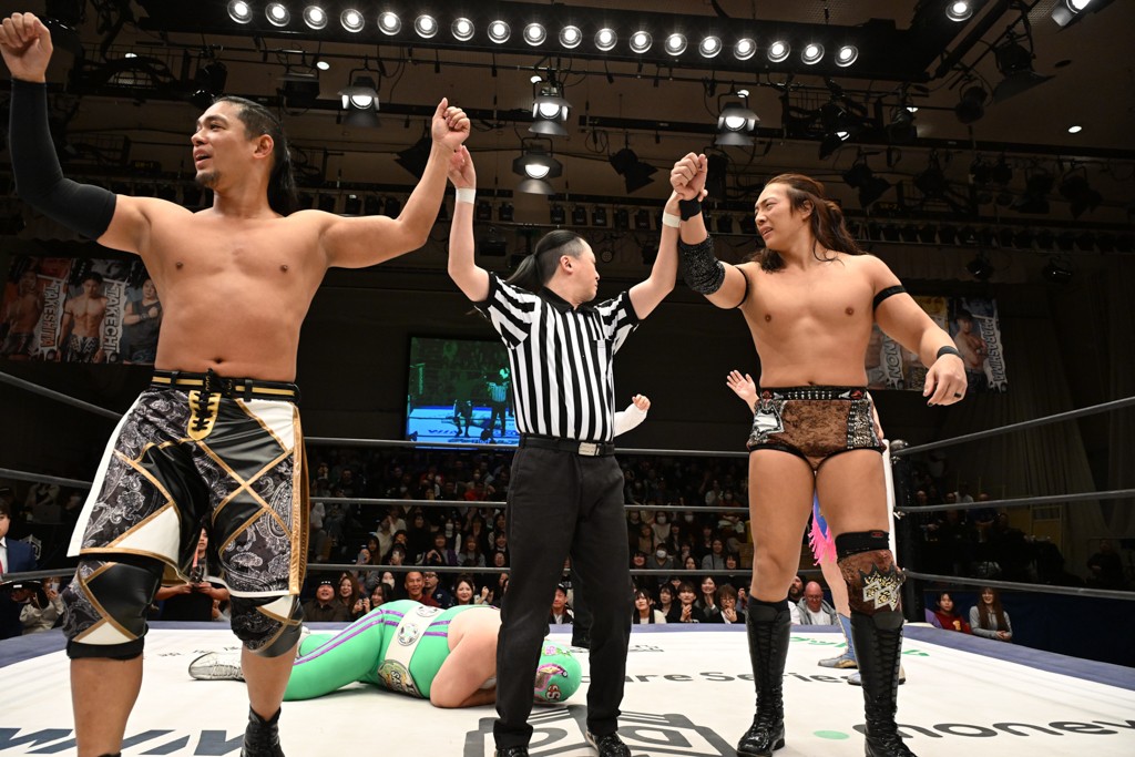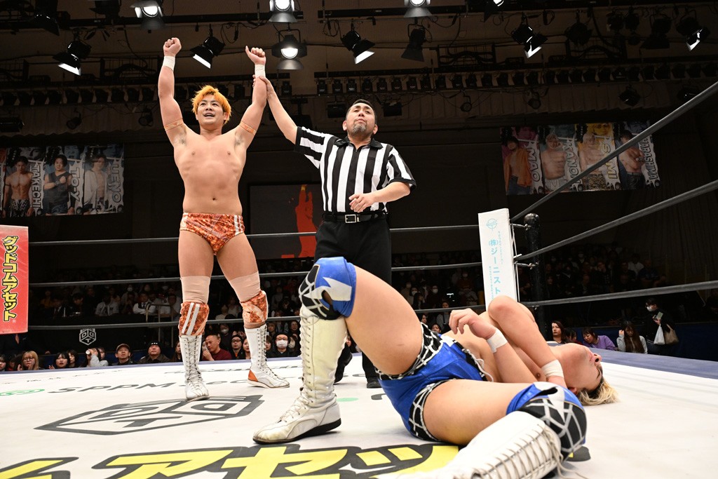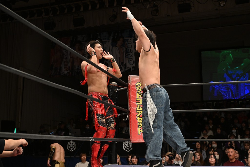 NOAH宮脇純太、DDTレギュラー参戦初戦で快勝! TAKESHITAはDDT流で勝利を挙げ、東京ドームでのWタイトル戦での必勝宣言